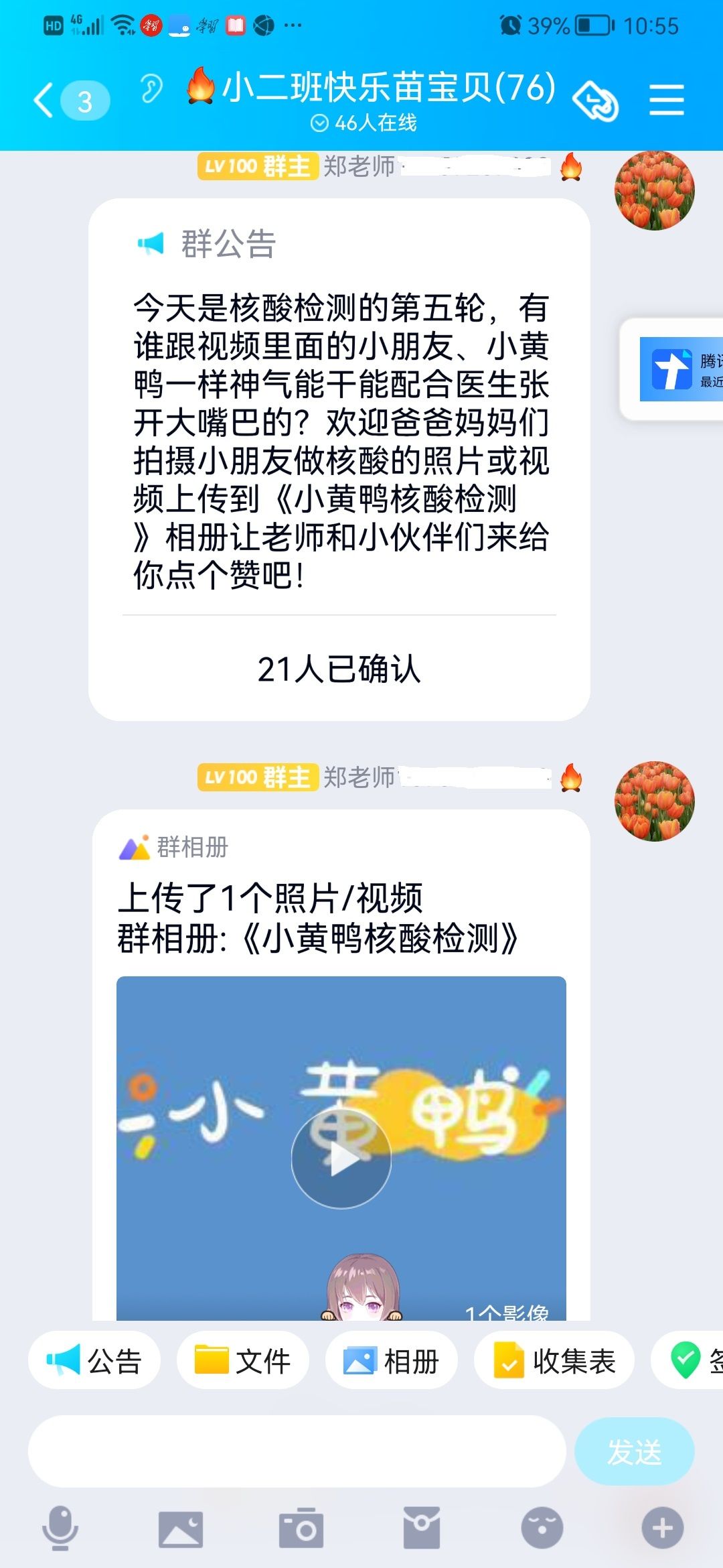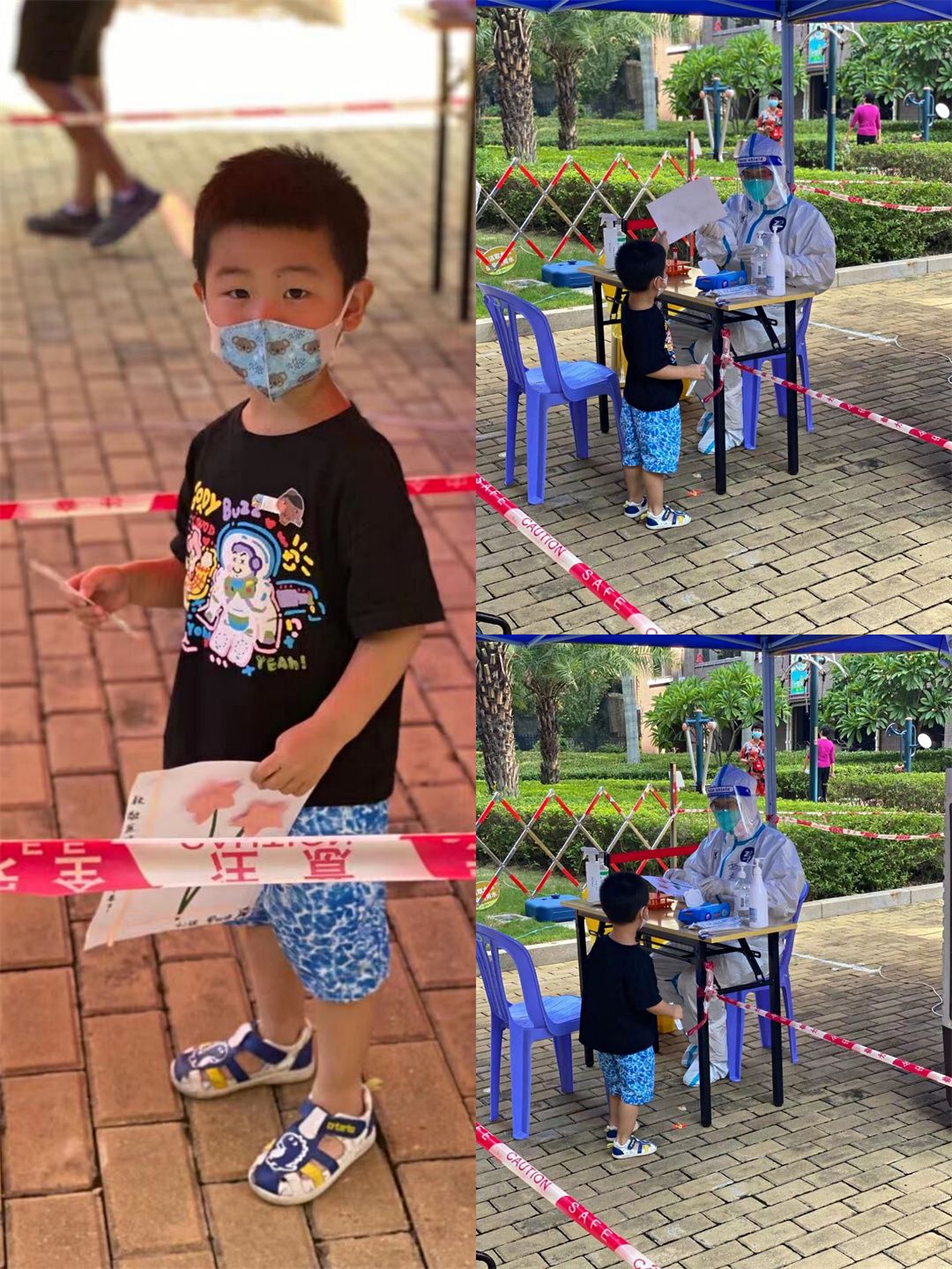 通过班级Q群的互动、网络平台、家人的谈话及观看电视新闻等不同的方式,了解到在一线抗疫工作者的辛苦。为了表达感谢的孩子们用童稚的画笔,稚嫩的声音,发出了最强有劲的力量,为厦门加油打气。向最美的一线抗疫者道一声:您辛苦了!看看我们的圆圆小宝贝在去核酸检测是时还为我们的抗疫英雄献上了亲手制作的鲜花!