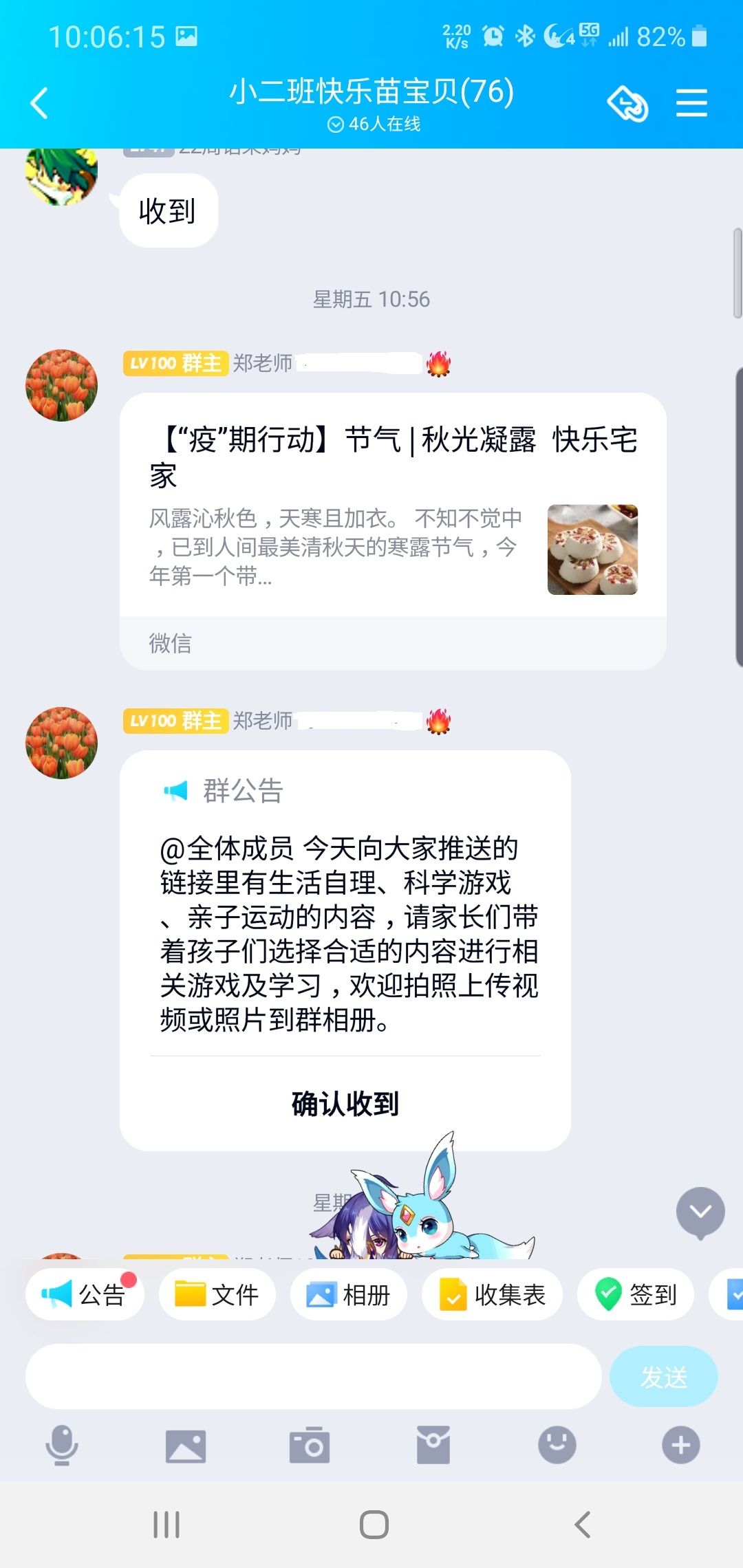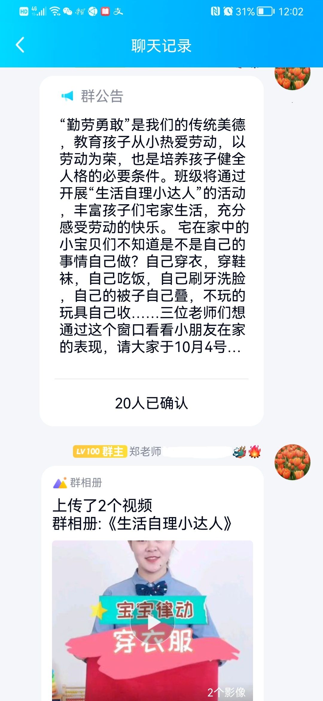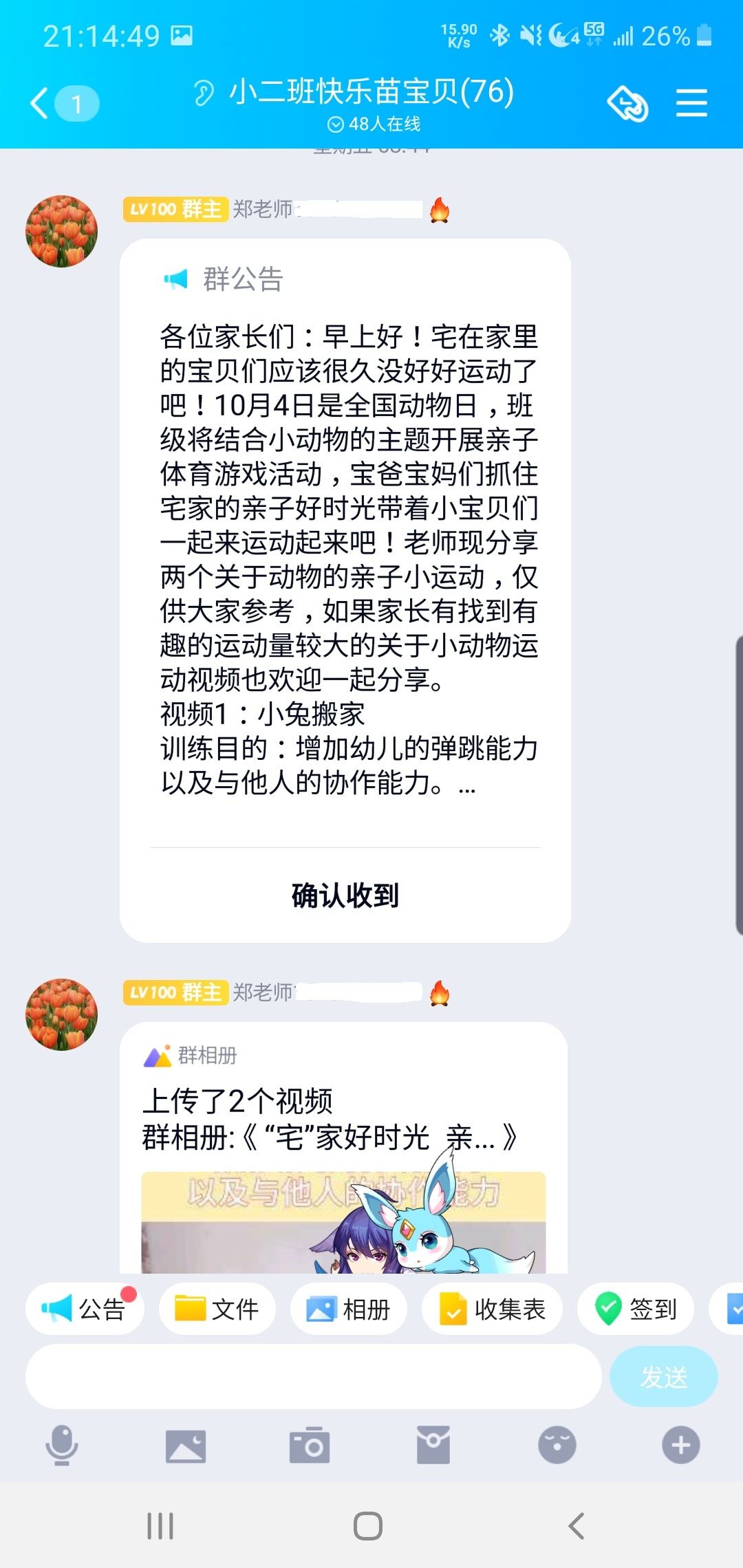 突如其来的新冠疫情改变了这个秋季开学的节奏,让才刚开学不久的宝贝们又得休学在家了。为了让宝贝们在家宅有所学、宅有所乐,老师们精心为宝贝们设计了丰富多彩的线上交流活动,通过班级的Q群指导孩子们学习各种各样的本领。在老师的用心指导下,在爸爸妈妈的精心陪伴下,丰富宅家生活缓解了疫情期间孩子们的紧张心理,为宅家生活增添了许多精彩。让我们跟随镜头一起去瞧瞧吧!