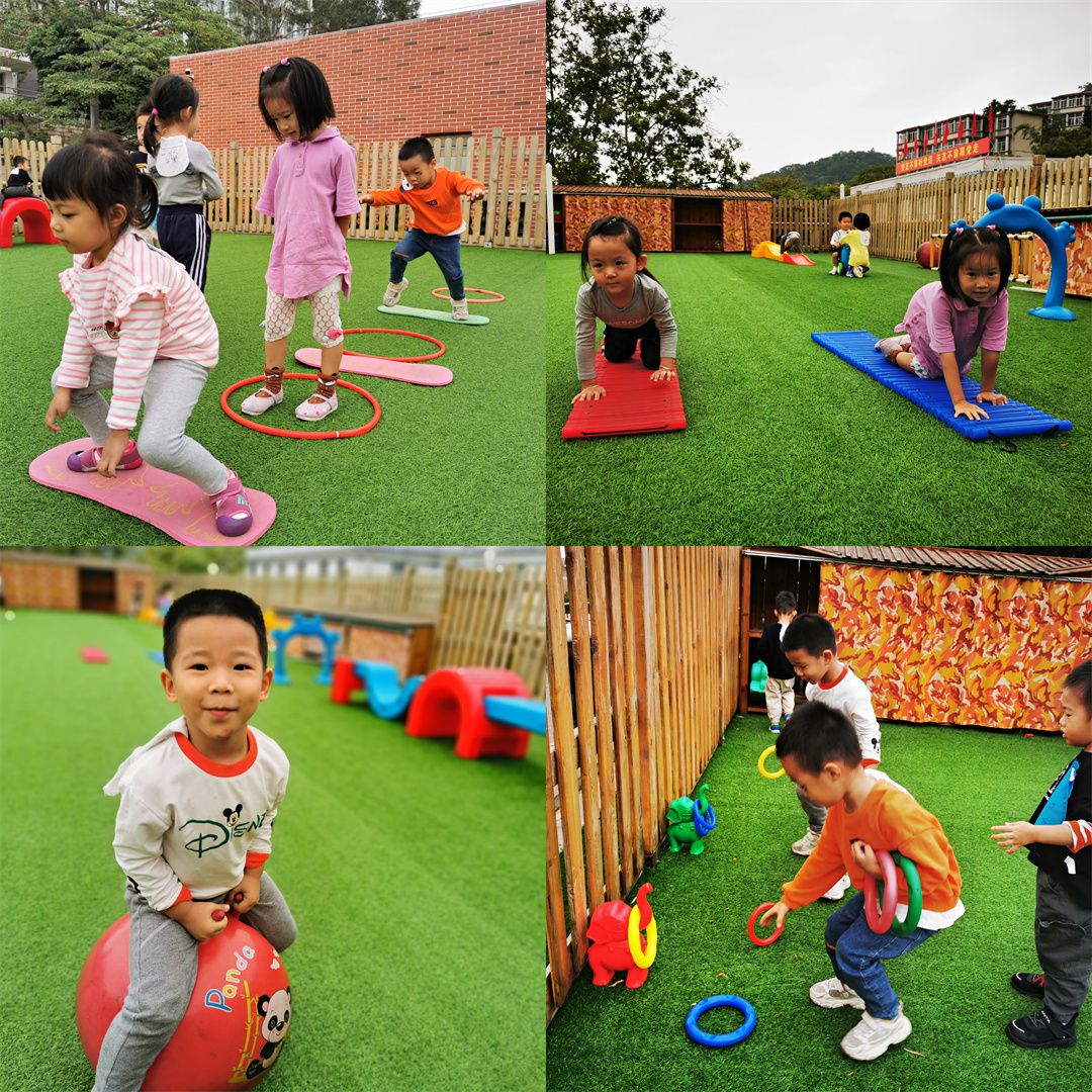 户外活动,我们一起进行体育游戏,知道了勤锻炼身体会变得棒棒的。