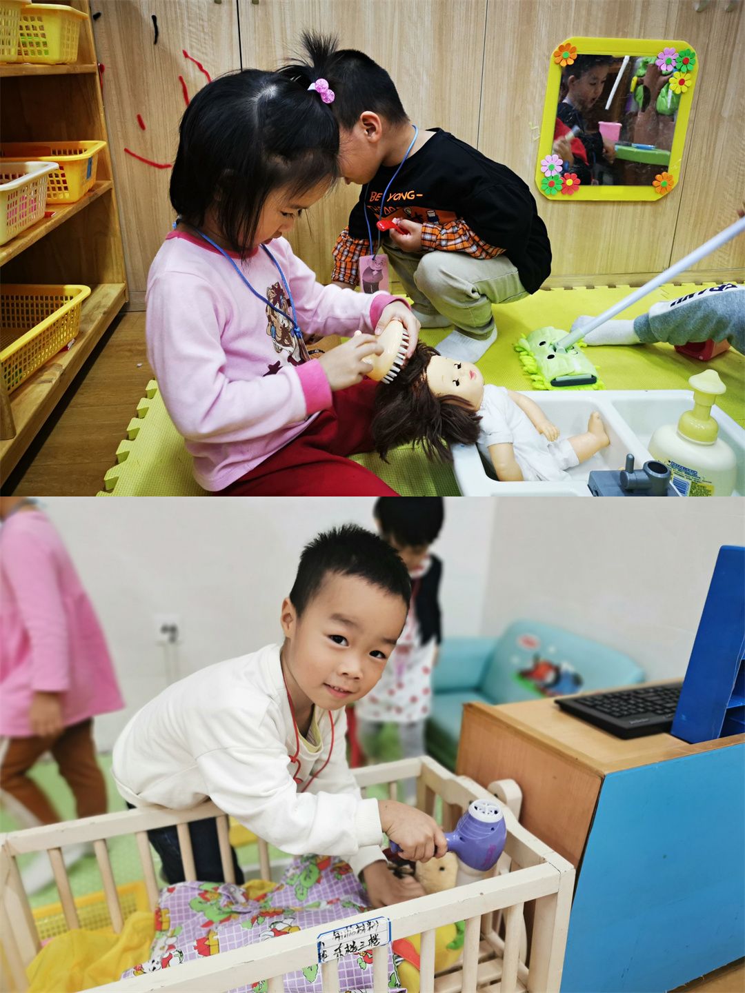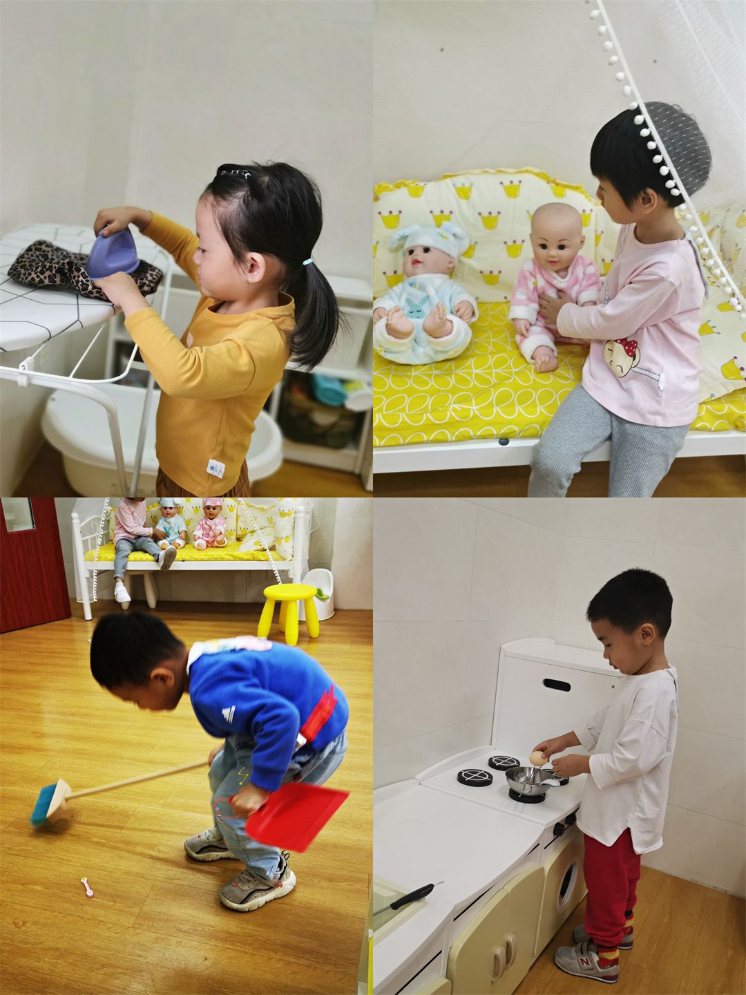 我喜欢玩娃娃家,像爸爸妈妈一样照顾小宝宝。