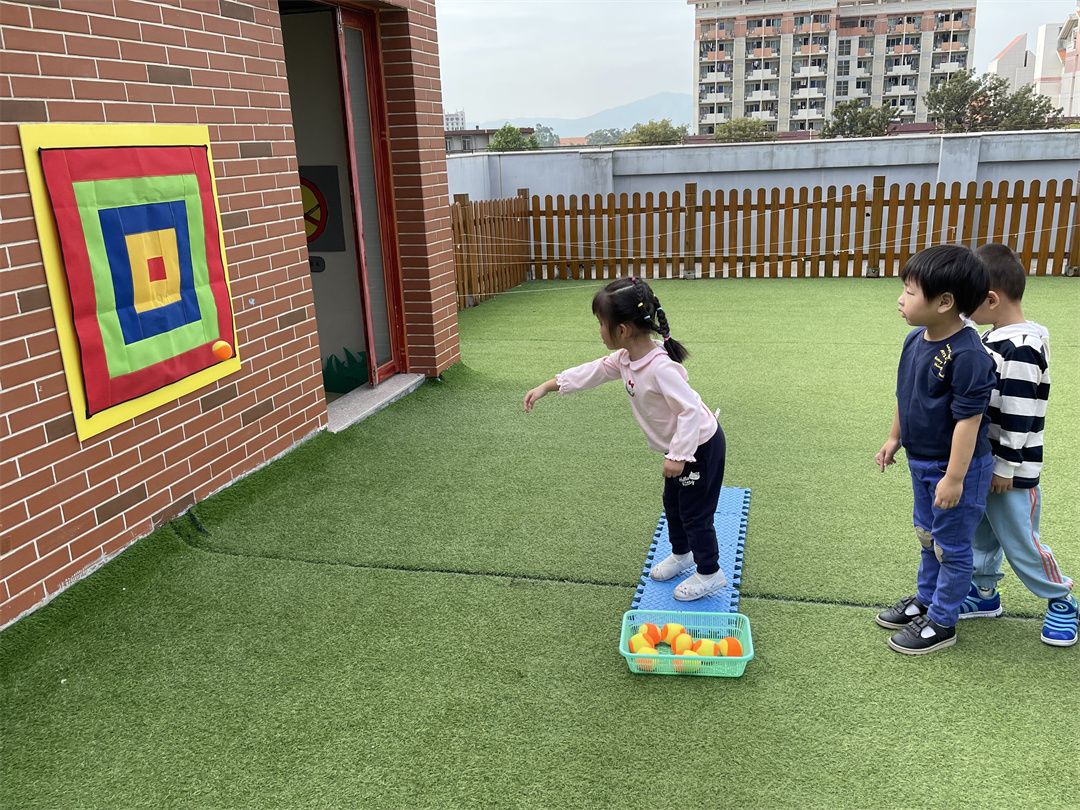 这是老师用废旧材料制作的五彩套圈,深受小朋友们的喜欢!还有有趣的方型魔方投靶、大象套圈、投篮等,可有趣了! 投掷游戏,哈哈,小朋友们瞄得可准了!