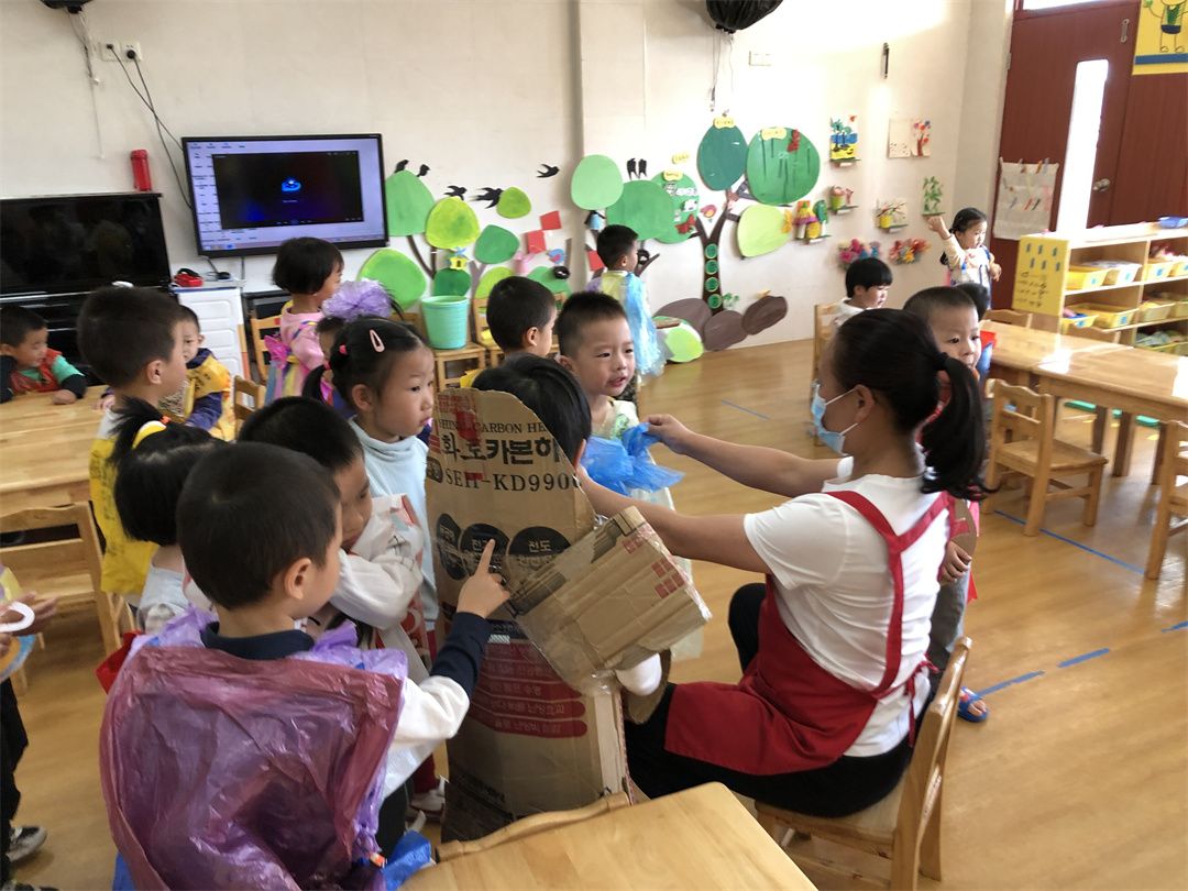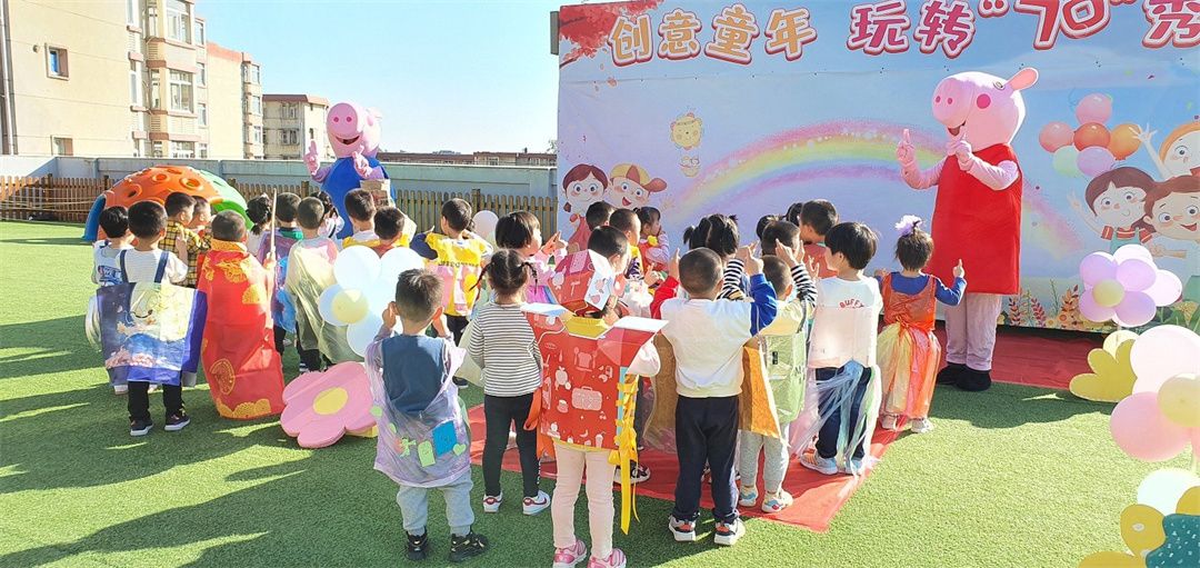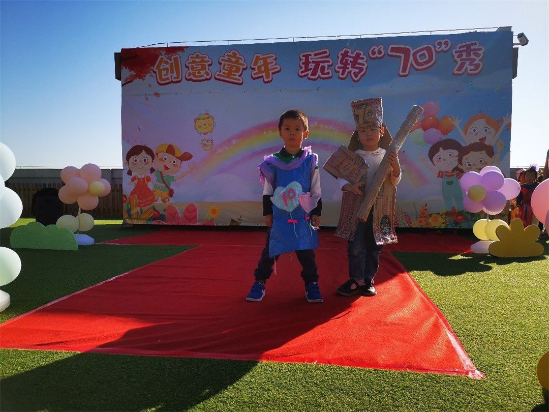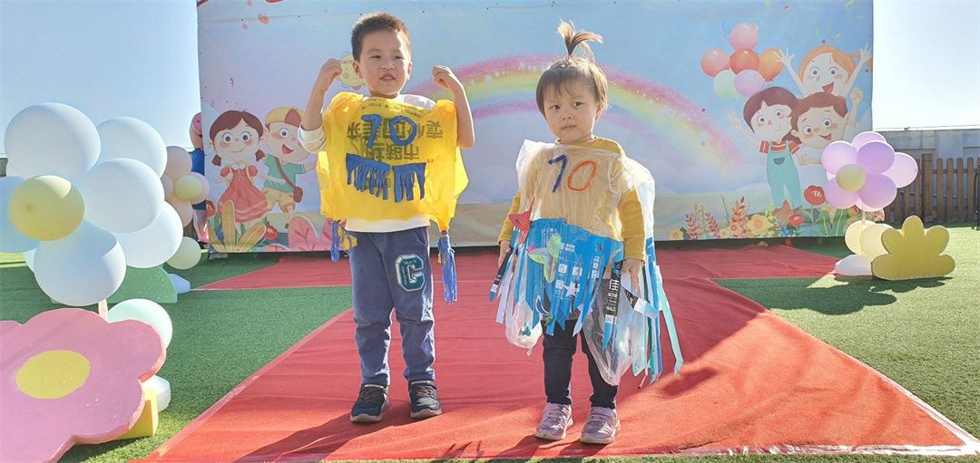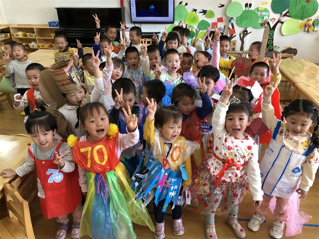 幼儿园是五彩的乐园,小朋友们在幼儿园妈妈的怀抱中快乐游戏,健康成长。为迎接幼儿园妈妈70岁的生日,小朋友们都很激动都想通过各种方式表达自己心中快乐。在老师和小朋友们及爸爸妈妈一同协商及努力下,小三班开展一场“创意童年,玩转70秀”为主题的环保时装秀活动!