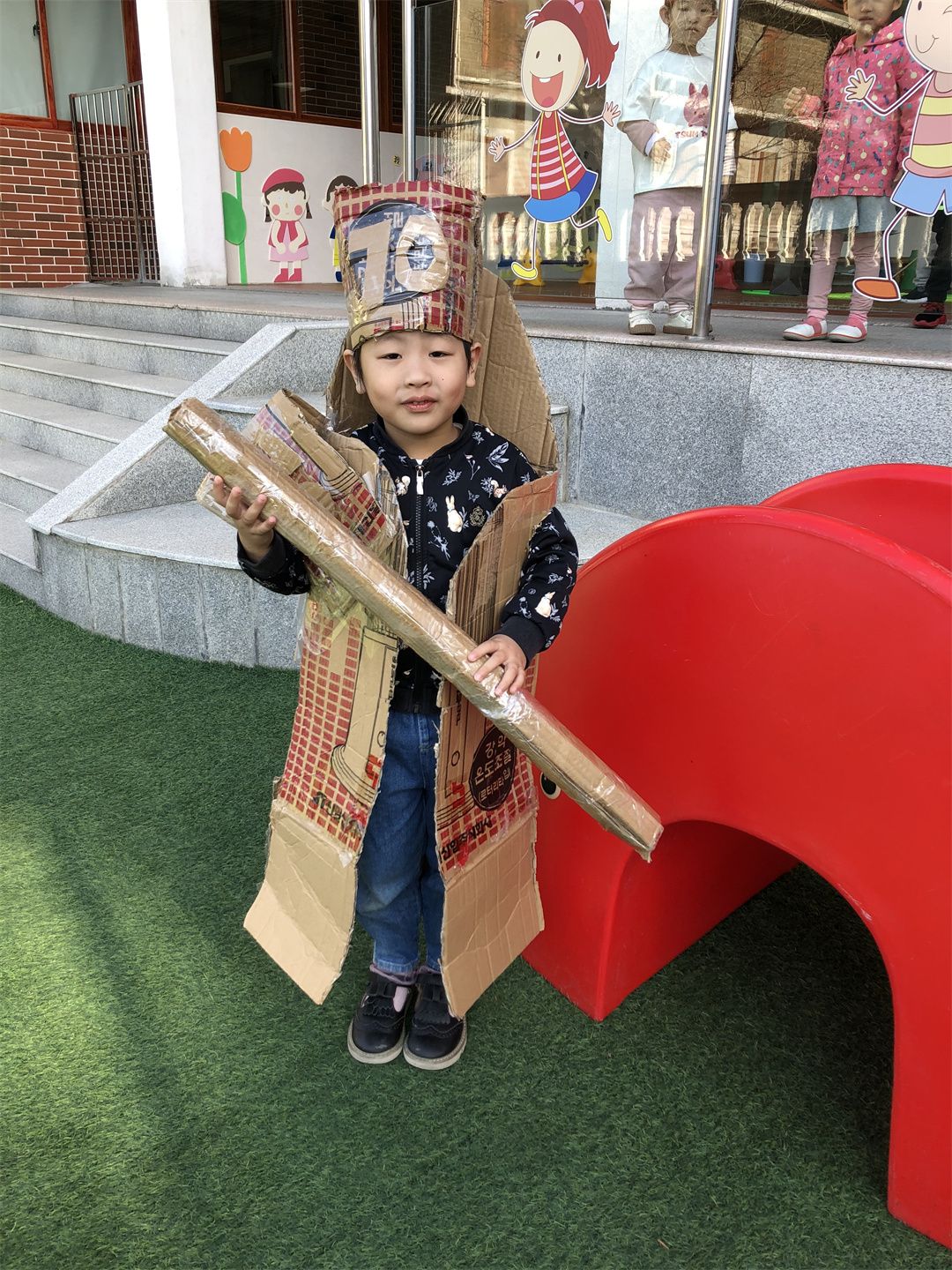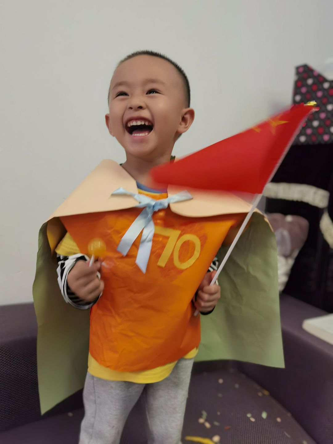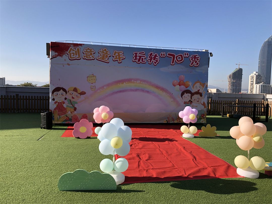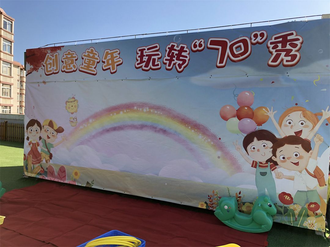 幼儿园是五彩的乐园,小朋友们在幼儿园妈妈的怀抱中快乐游戏,健康成长。为迎接幼儿园妈妈70岁的生日,小朋友们都很激动都想通过各种方式表达自己心中快乐。在老师和小朋友们及爸爸妈妈一同协商及努力下,小三班开展一场“创意童年,玩转70秀”为主题的环保时装秀活动!