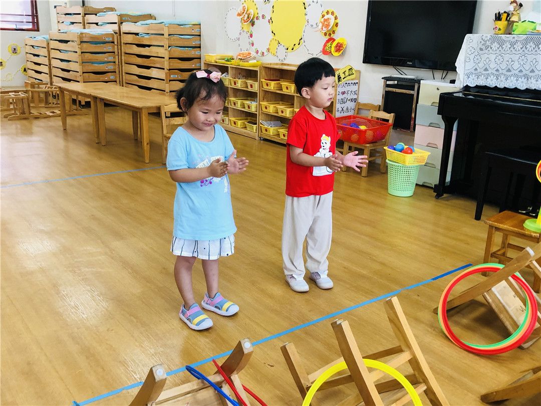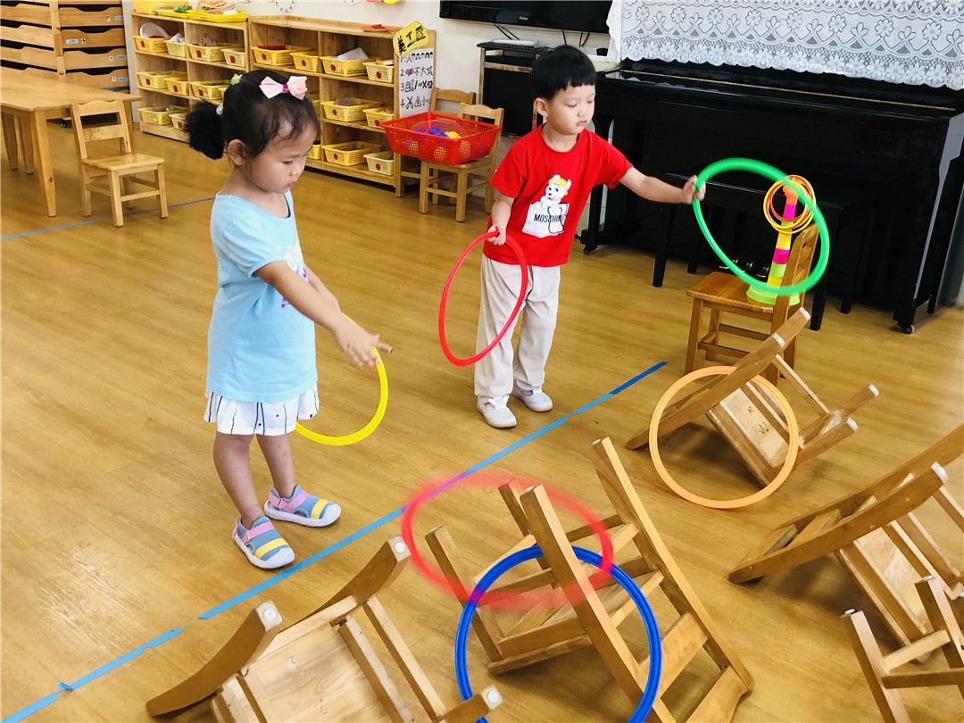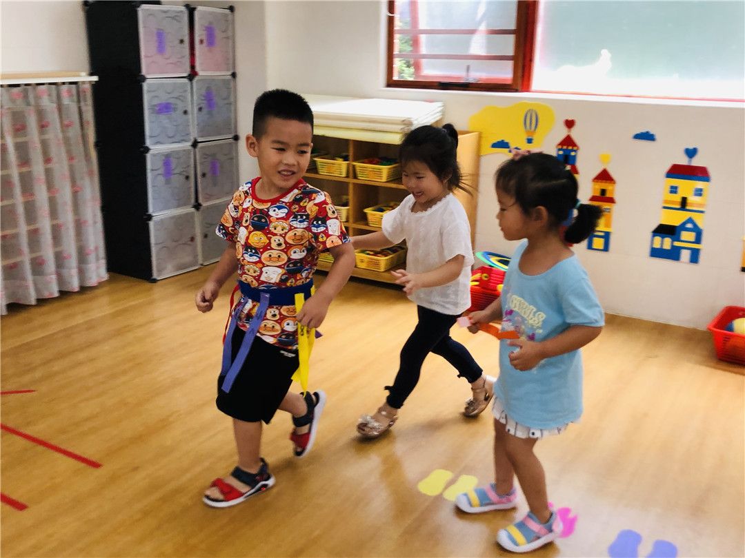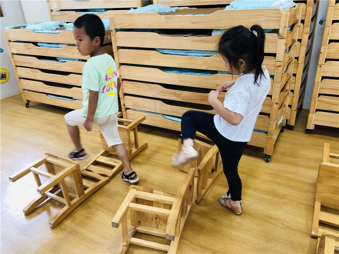 活动室里,椅子摇身一变,成了小小障碍物,孩子们迈着轻快的步伐,跨过了一个又一个小椅子,就像是五线谱上跳动的音符。