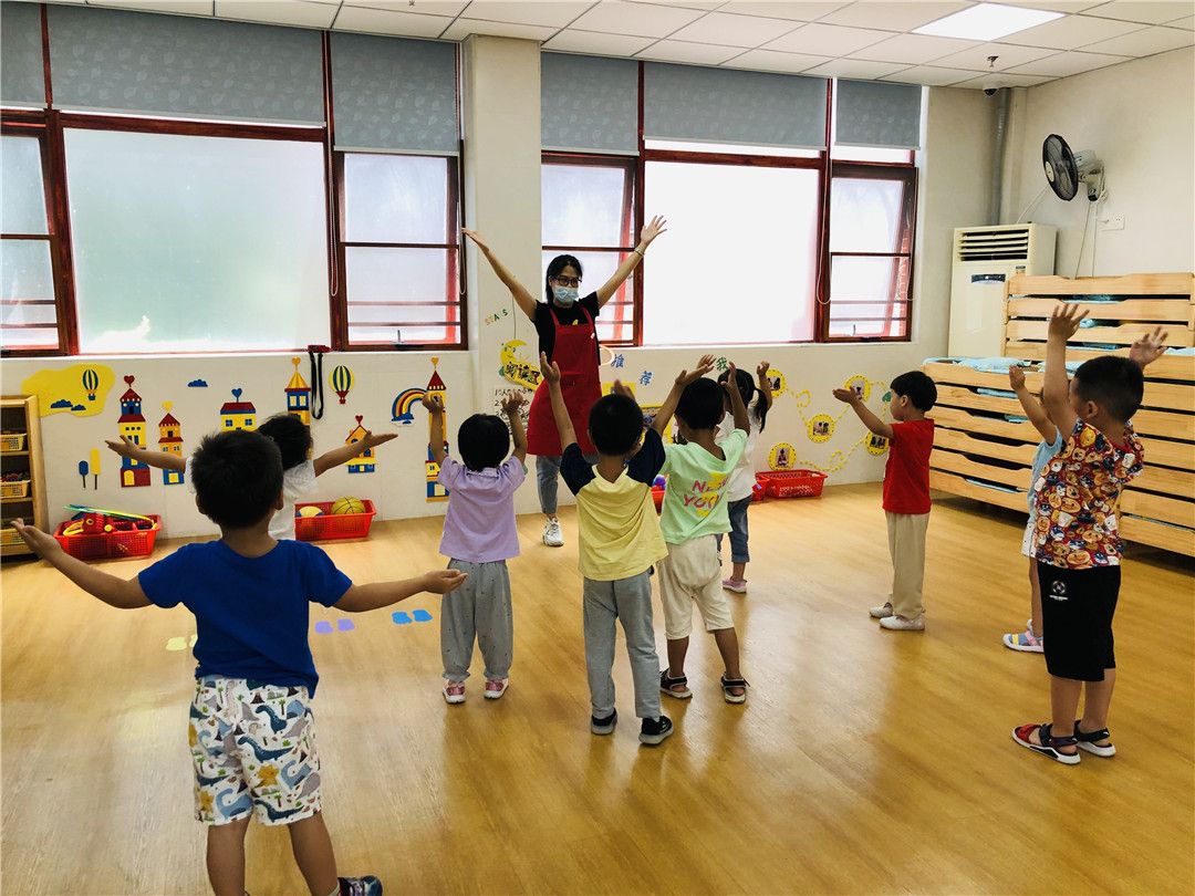没关系,我们可以在活动室里运动呀!也算是雨天里的小确幸啦!