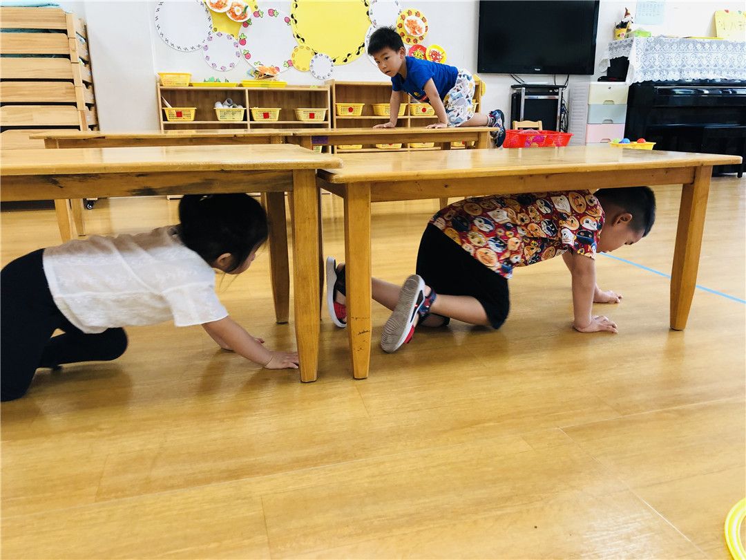 桌子上面爬,桌子下面钻,是不是像极了双层立交桥?这可是小朋友们最喜欢的游戏呢!