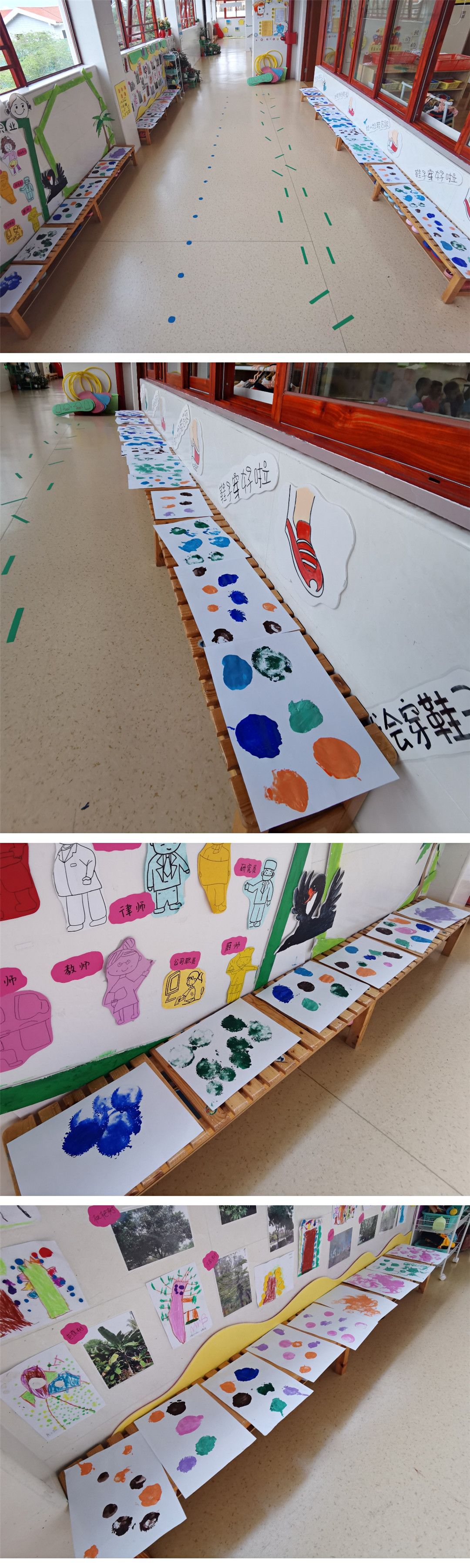 将印好的作品中的颜料晾晾干,走廊里瞬间被星星点点的色彩点缀。
