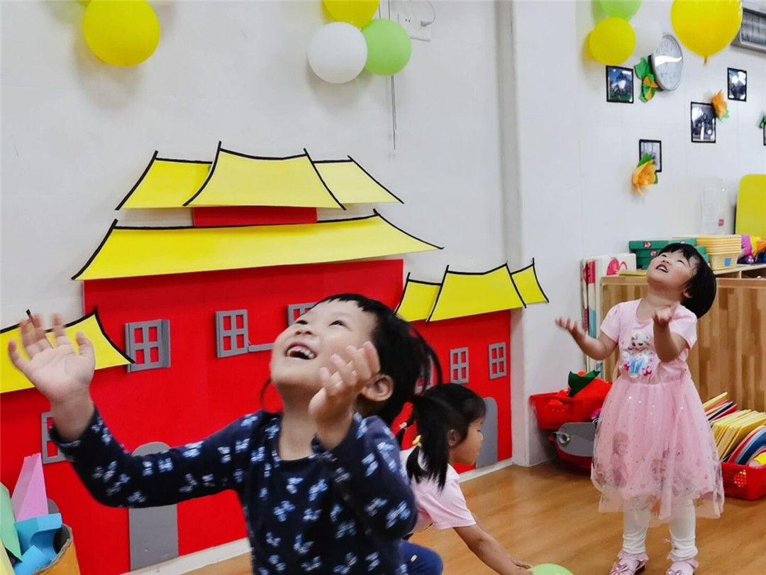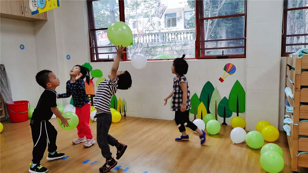 许许多多的气球变成了一片气球海洋,孩子们在气球海洋里遨游。予昕和悠优把气球抛得高高的,并且可以一直连续向上颠球;