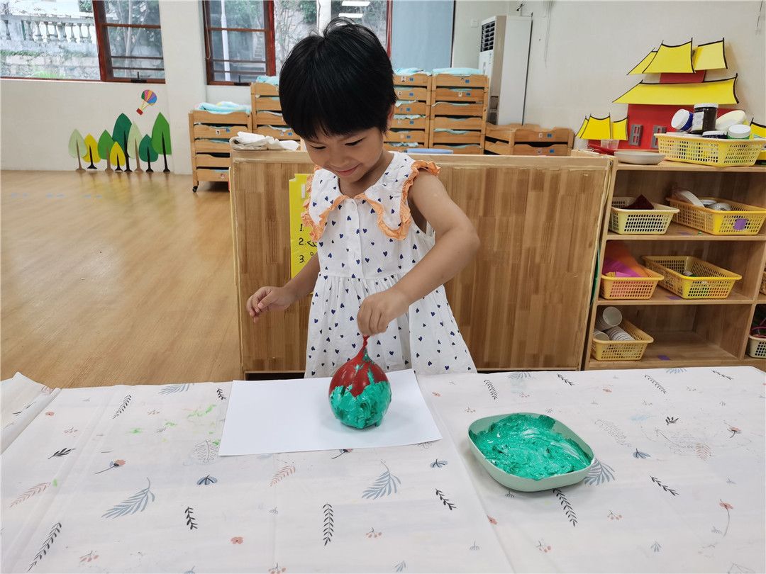 轻轻地印到白纸中,白纸中出现了一个一个的彩色印记。