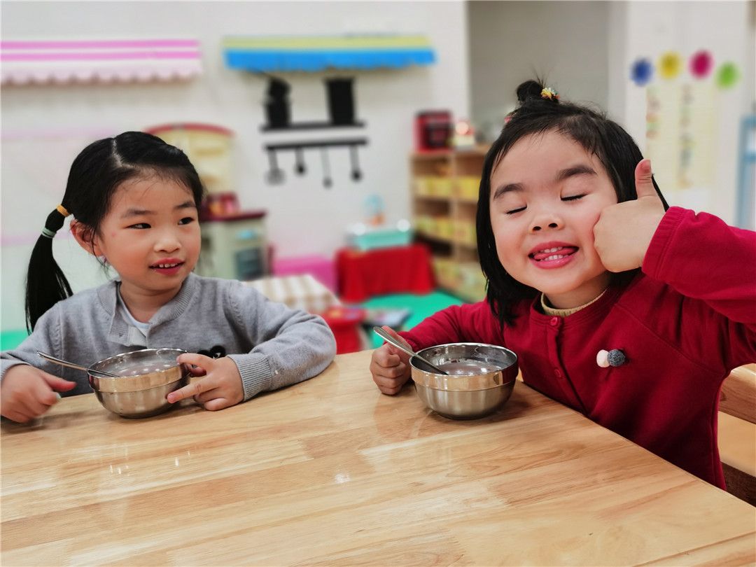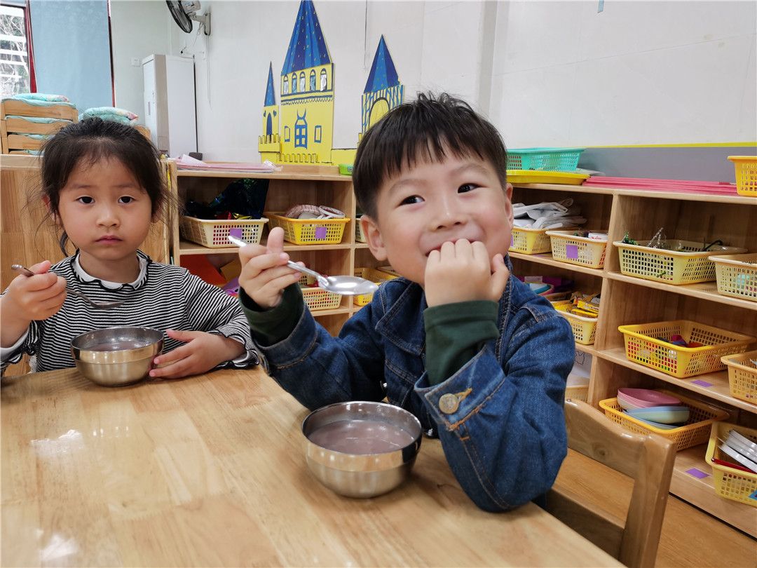 今天班级下午点心是芋头西米露,孩子们吃得津津有味的,忽然有弘说了一句:“这个味道有点像上次妈妈带我喝的奶茶,这里面的西米和珍珠一样也是QQ的!”边上的小朋友们也跟着点点头。老师便好奇的问孩子们:“你们喝过奶茶吗?”季睿说:“我没喝过奶茶,妈妈不让我喝”玥玥说:“我看爸爸妈妈喝过,但是她们只允许我喝了一口,又甜又好喝”浩宇说:“我经过奶茶店看过一些大哥哥大姐姐们买好多奶茶,但我也没喝过。”