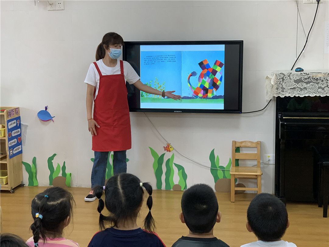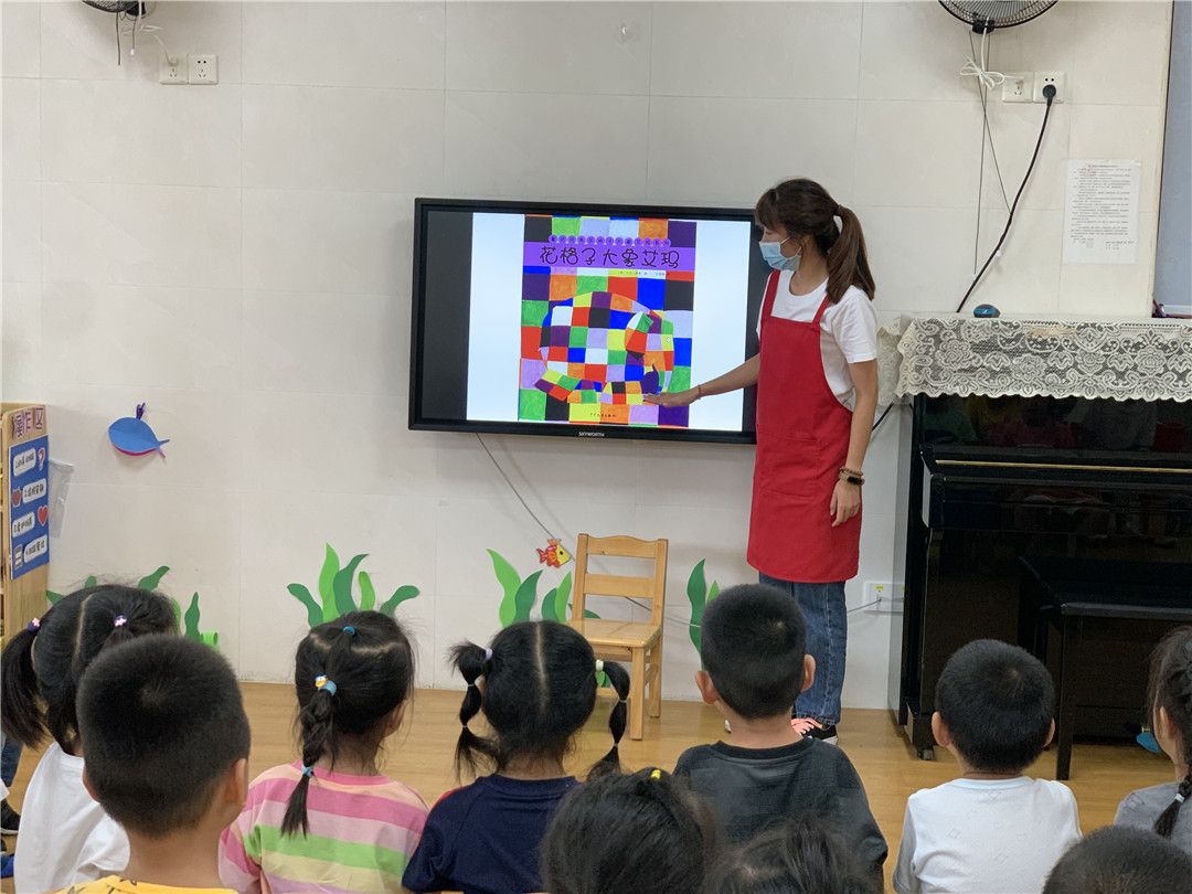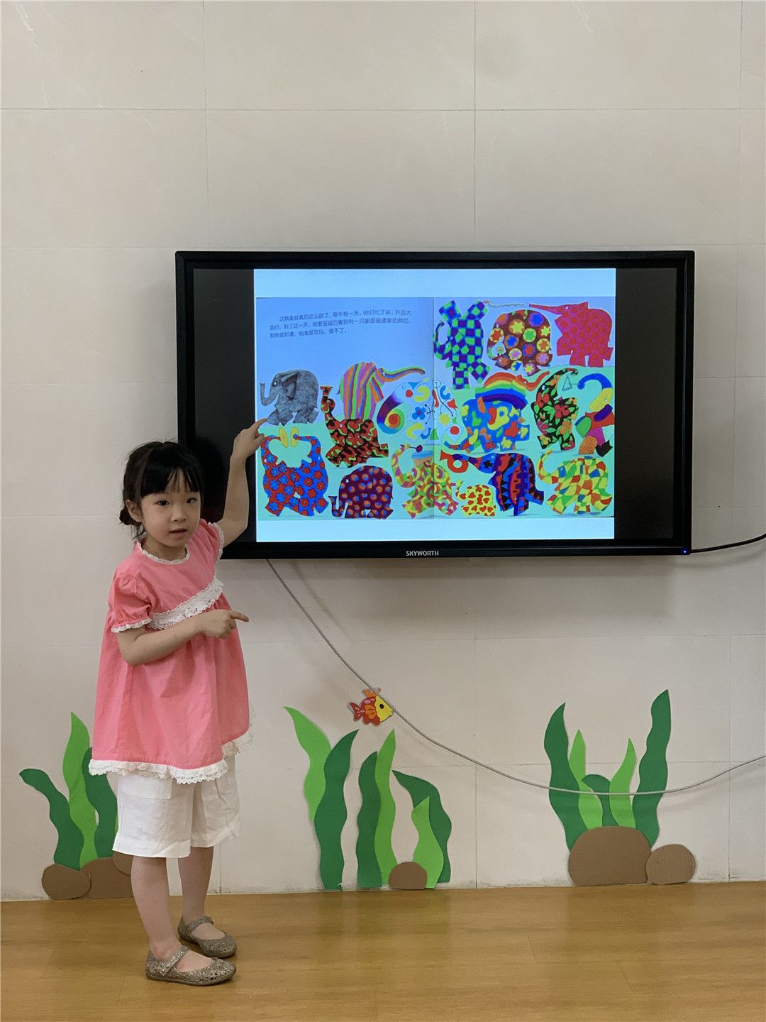 今天小十班的活动室里来了一位特别的客人——原来是一只名叫艾玛的大象,艾玛和其它大象不太一样,他身体的颜色不是灰色的,而是五颜六色的花格子。一开始,它因为自己的与众不同而烦恼,但是当它发现大家没有因为它的与众不同而嫌弃它,反而一如既往的喜欢它,它决定做回独一无二的自己。