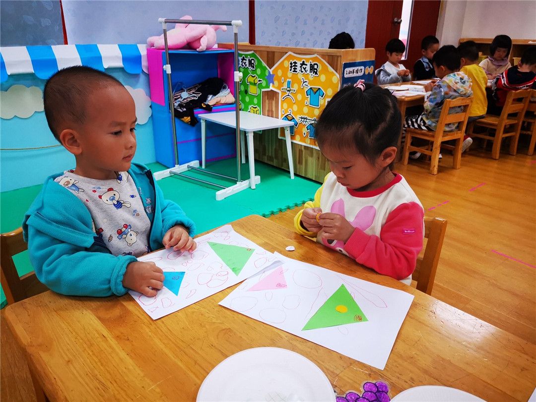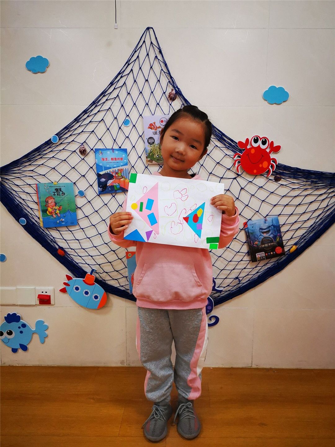 海底动物们真神奇!我们也好想拥有一条这么神奇的海底动物呢!这可难不倒我们哦!瞧!我们一起用彩色纸,拼一拼,画一画,彩色三角鱼变出来啦!