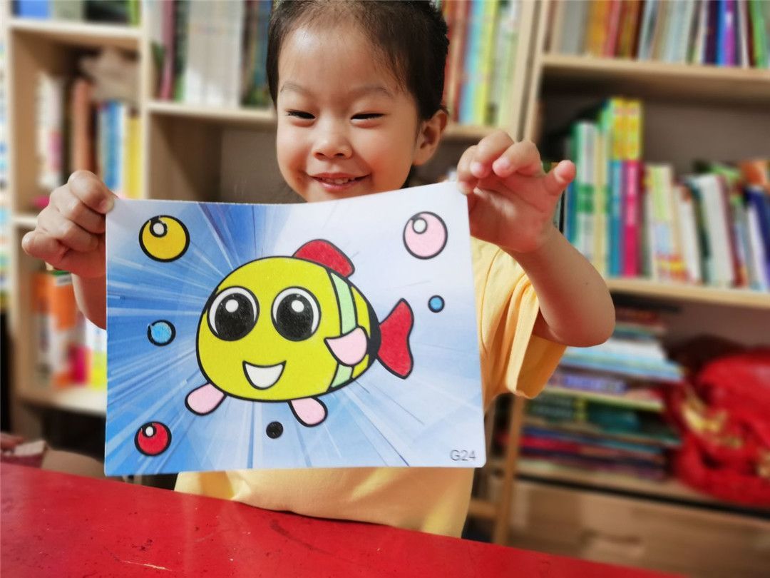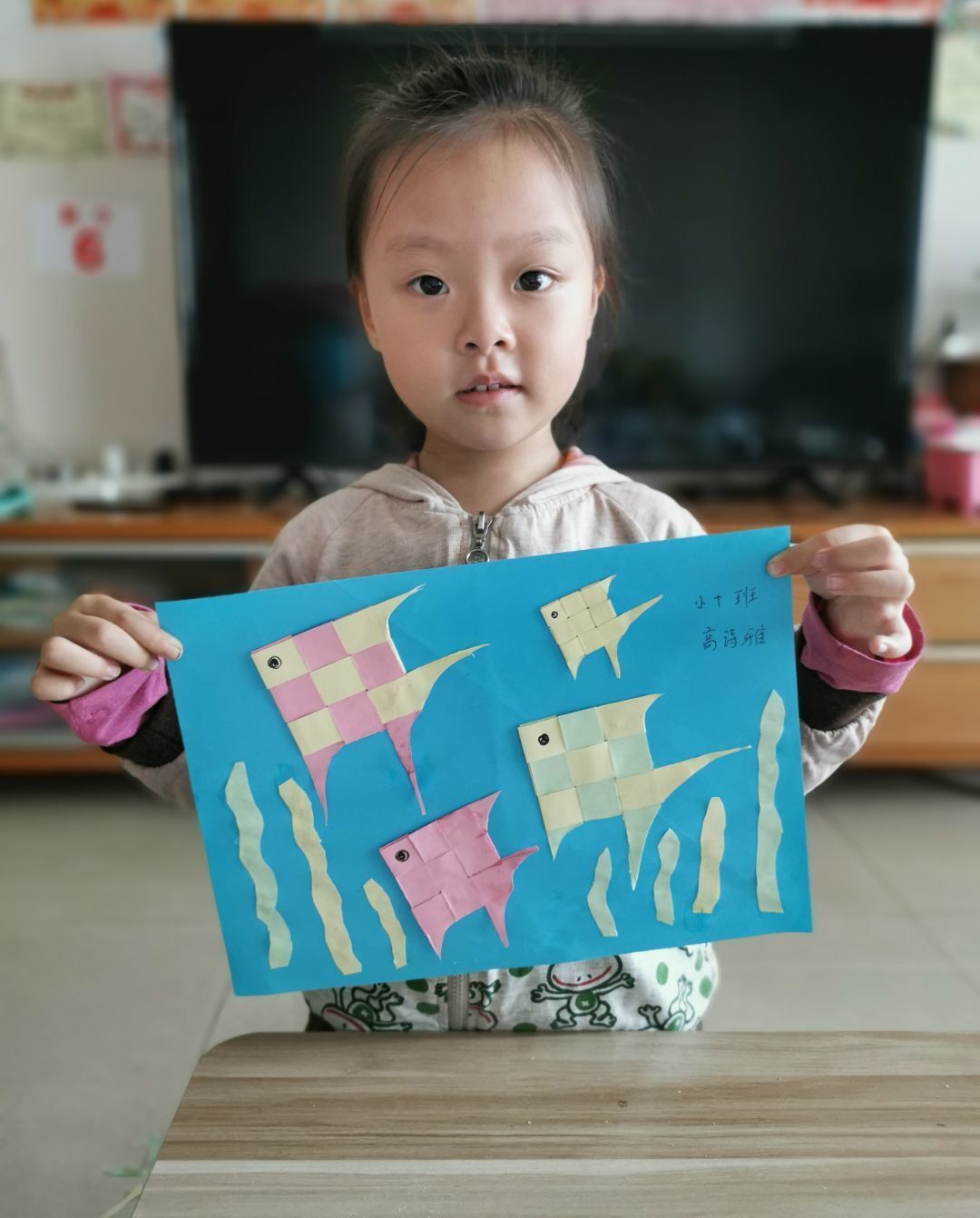 小手动一动,胶布贴一贴,剪刀剪一剪,一条可爱的小鱼出现啦!
