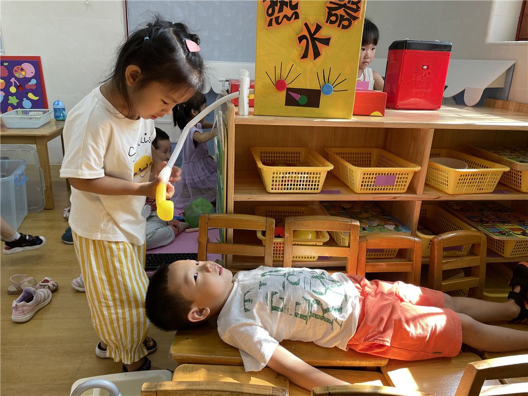 “角色游戏就是娃娃家、小菜场游戏、做医生和警察...可好玩啦!”