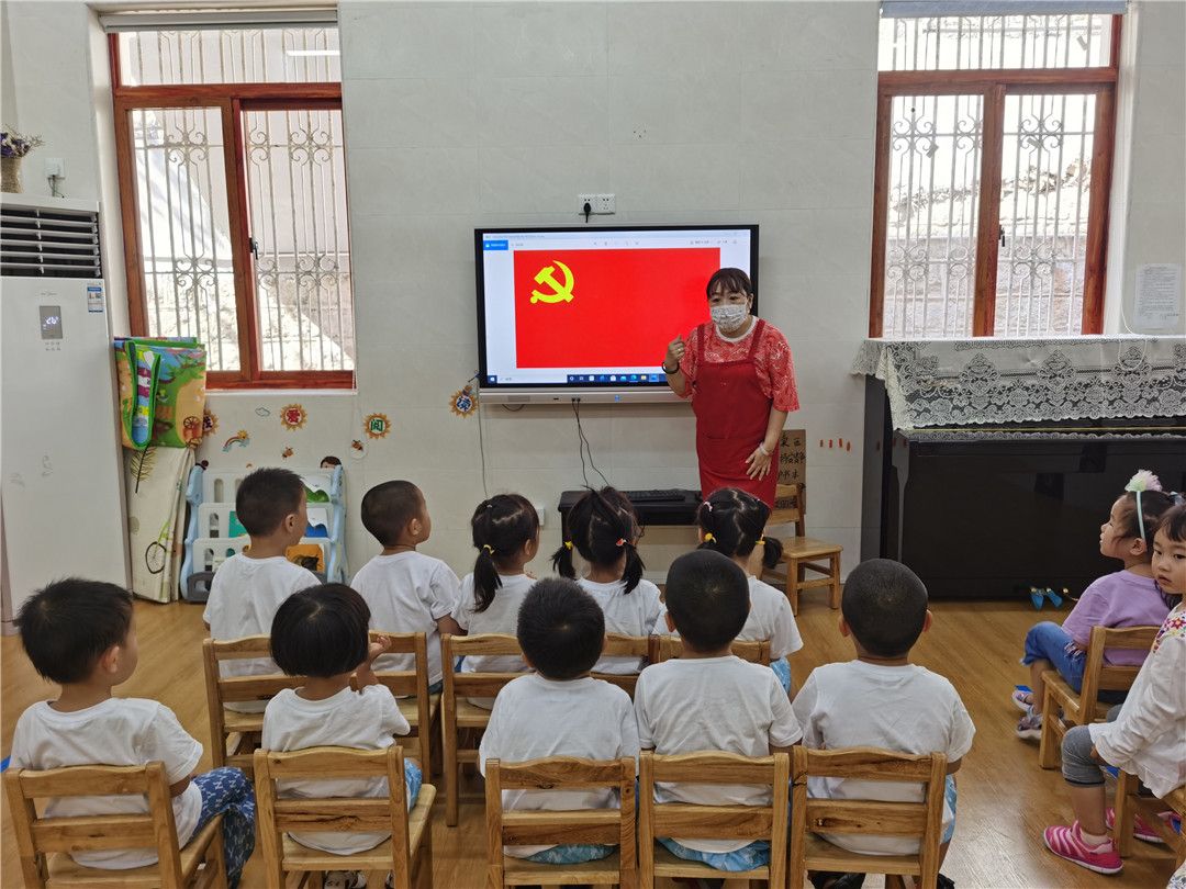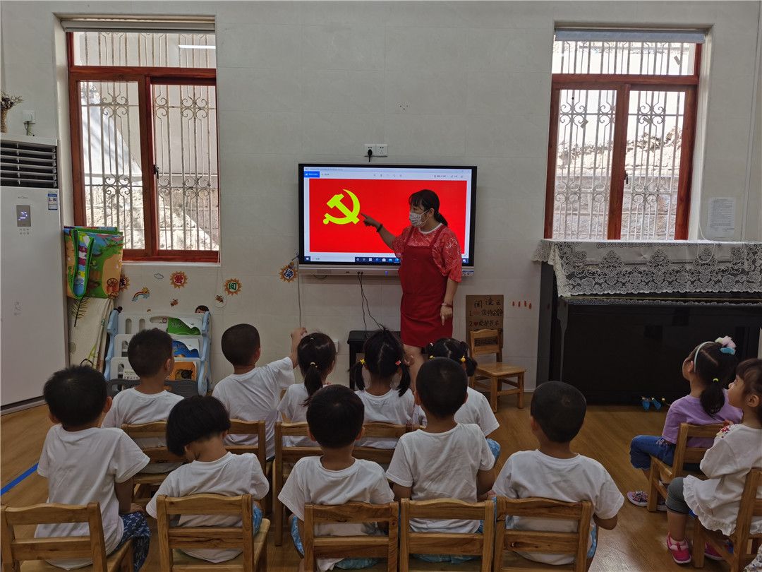 活动中,老师向孩子们讲述关于建党日的由来等知识,让大家了