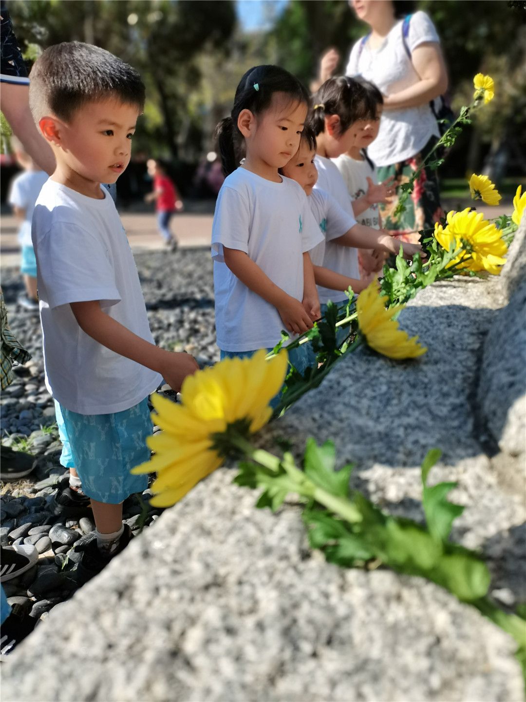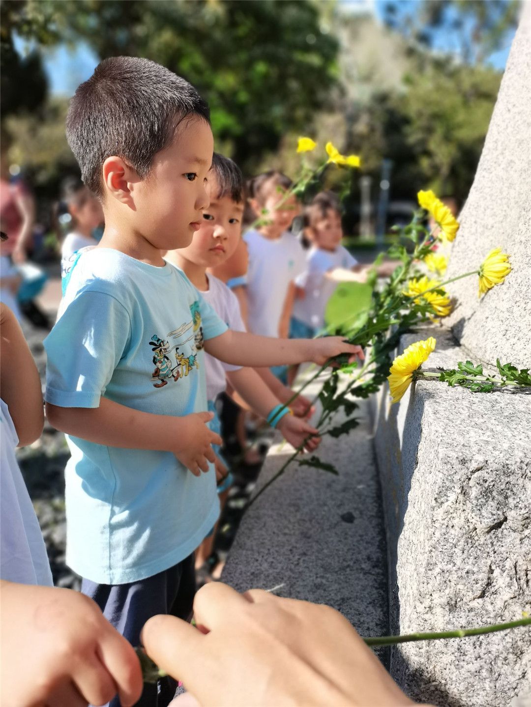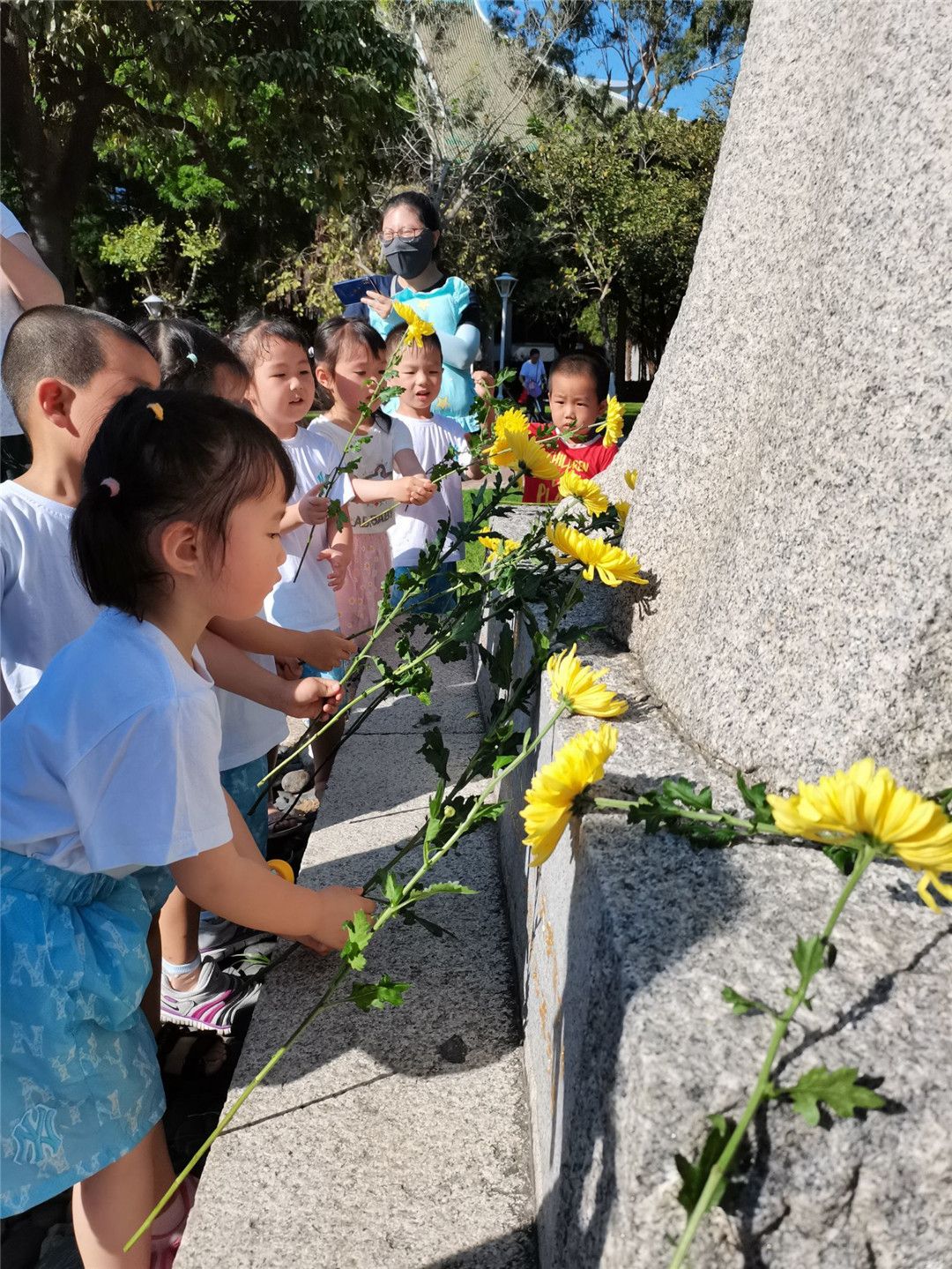 看过厦大党史短片《囊萤之光》,孩子们知道一个年轻的英雄——罗扬才,是厦门第一个共产党员,第一个革命烈士。是他,在厦大囊萤楼点燃了八闽打的红色核名的星星之火。孩子们手捧小菊花,带着无限崇敬之情,来到罗扬才烈士塑像前面,依次鞠躬敬献鲜花。