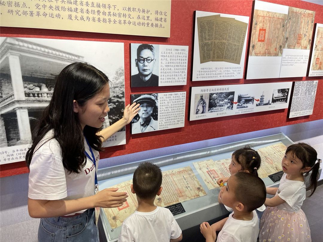 跟着党旗走,小二班的福娃们走进厦门大学革命史展览馆馆,听讲解员介绍建党的故事。了解历史才能看得远,永葆初心才能走得远