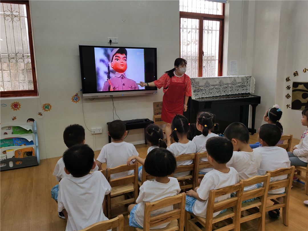 安静聆听教师声情并茂地讲述海娃勇敢机智地为八路军送鸡毛信、英雄王二小等精彩故事,看精彩的电影《小兵张嘎》……通过红色故事分享,孩子了解到了更多英雄人物和经典故事。带着几分好奇和无比的崇拜,孩子们表示:“我们的幸福生活都是革命先辈用鲜血和生命换来的,我们要向小英雄学习。”