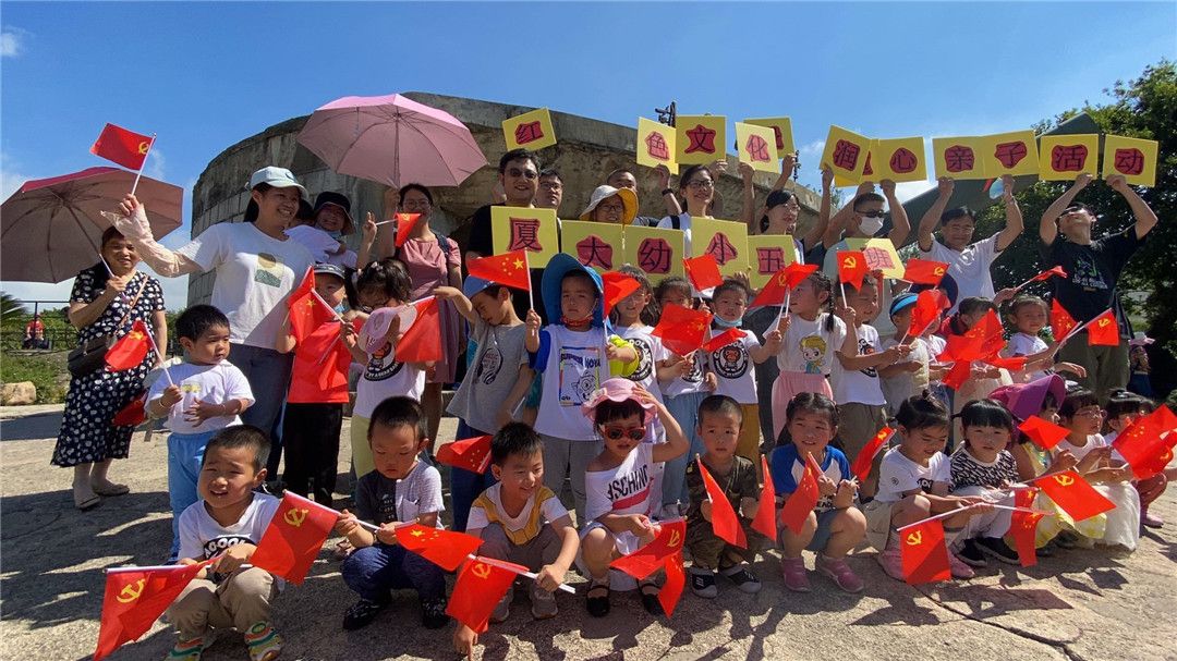 今年是中国共产党建党100周年,在这曾经抵抗外侮战场的特殊地方,孩子们还和老师一起认识了国旗、党旗,了解了国旗、党旗背后的故事,知道了党和祖国妈妈的生日,激起了孩子们爱国爱家的情感。