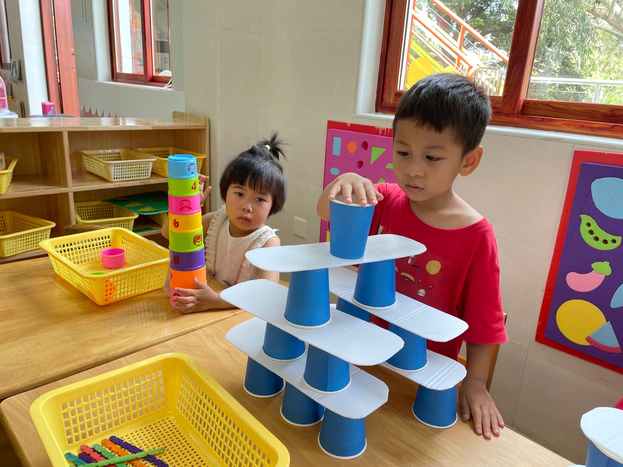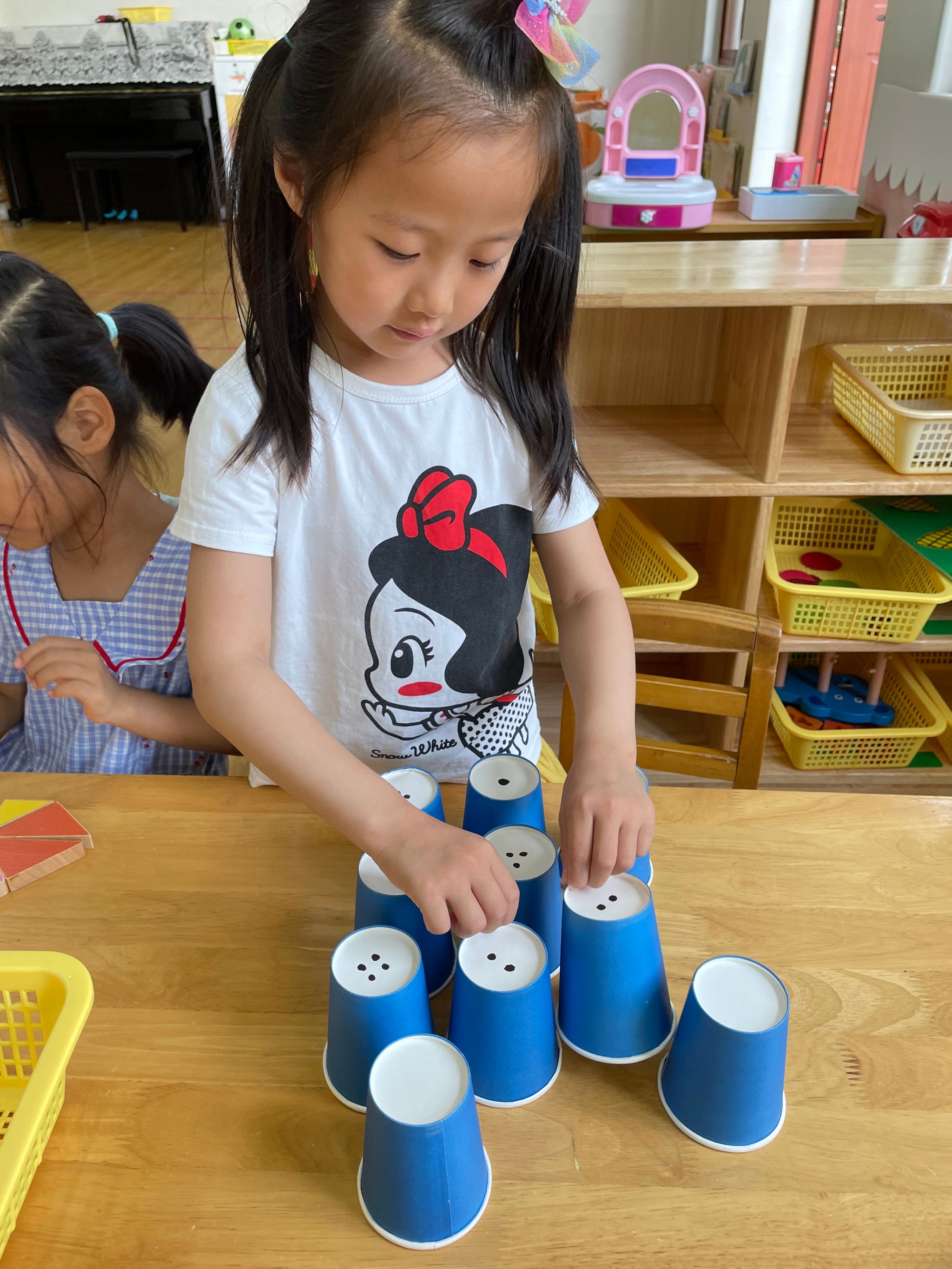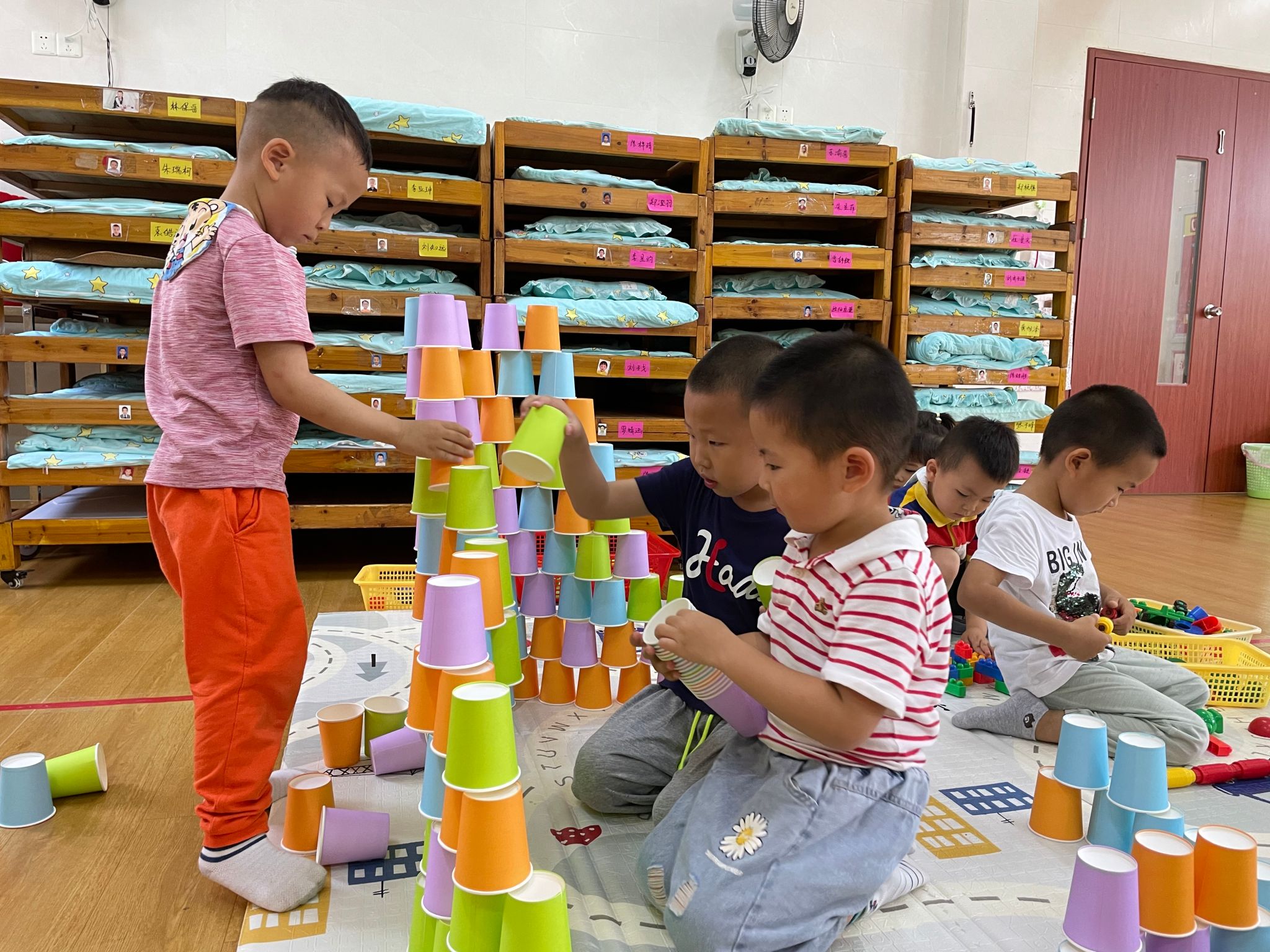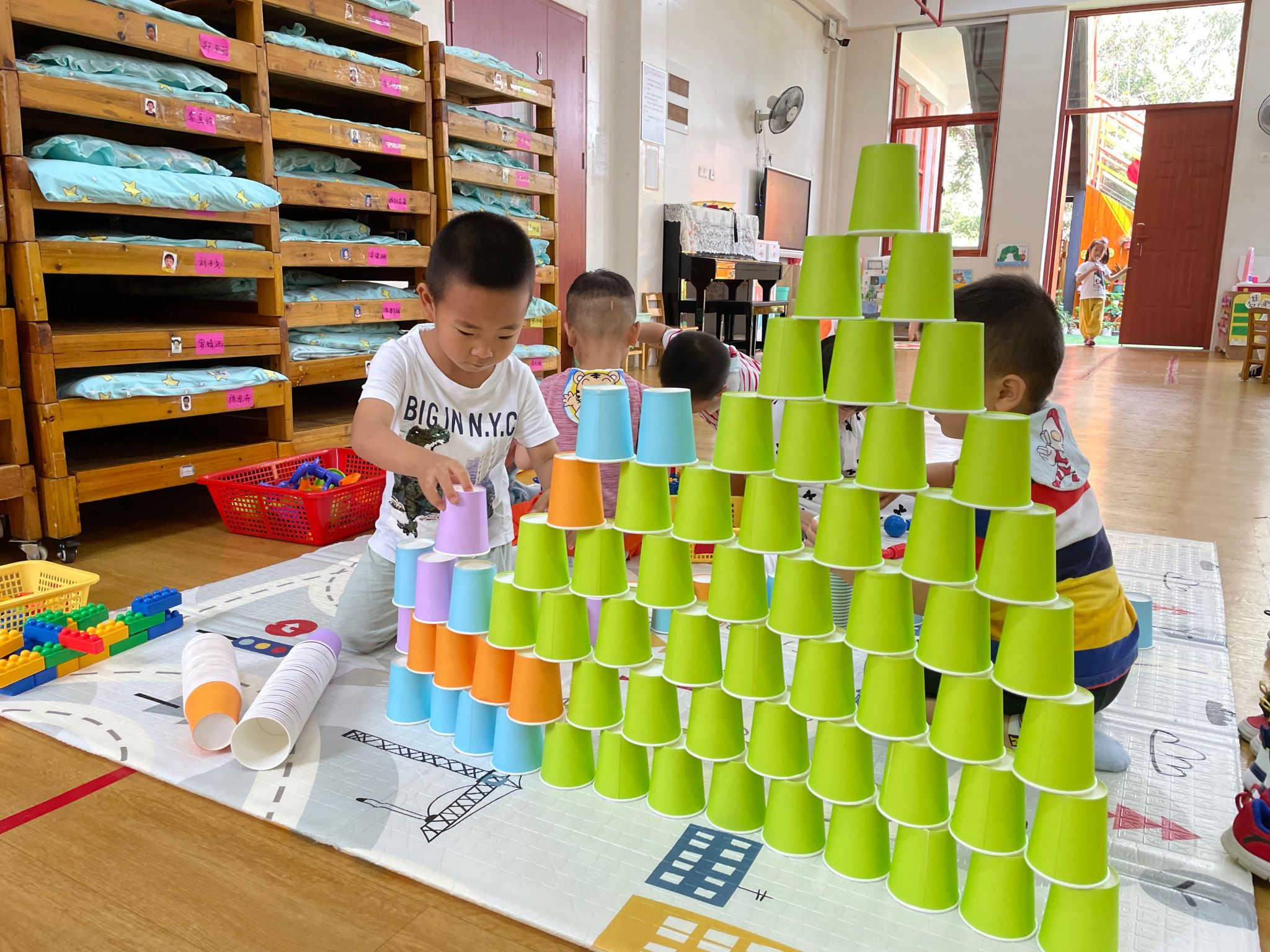 纸杯不仅可以投放在班级的美工区,还可以放在建构区。孩子们用大量的纸杯打造一个独一无二的纸杯城堡,收获满满的成就感!