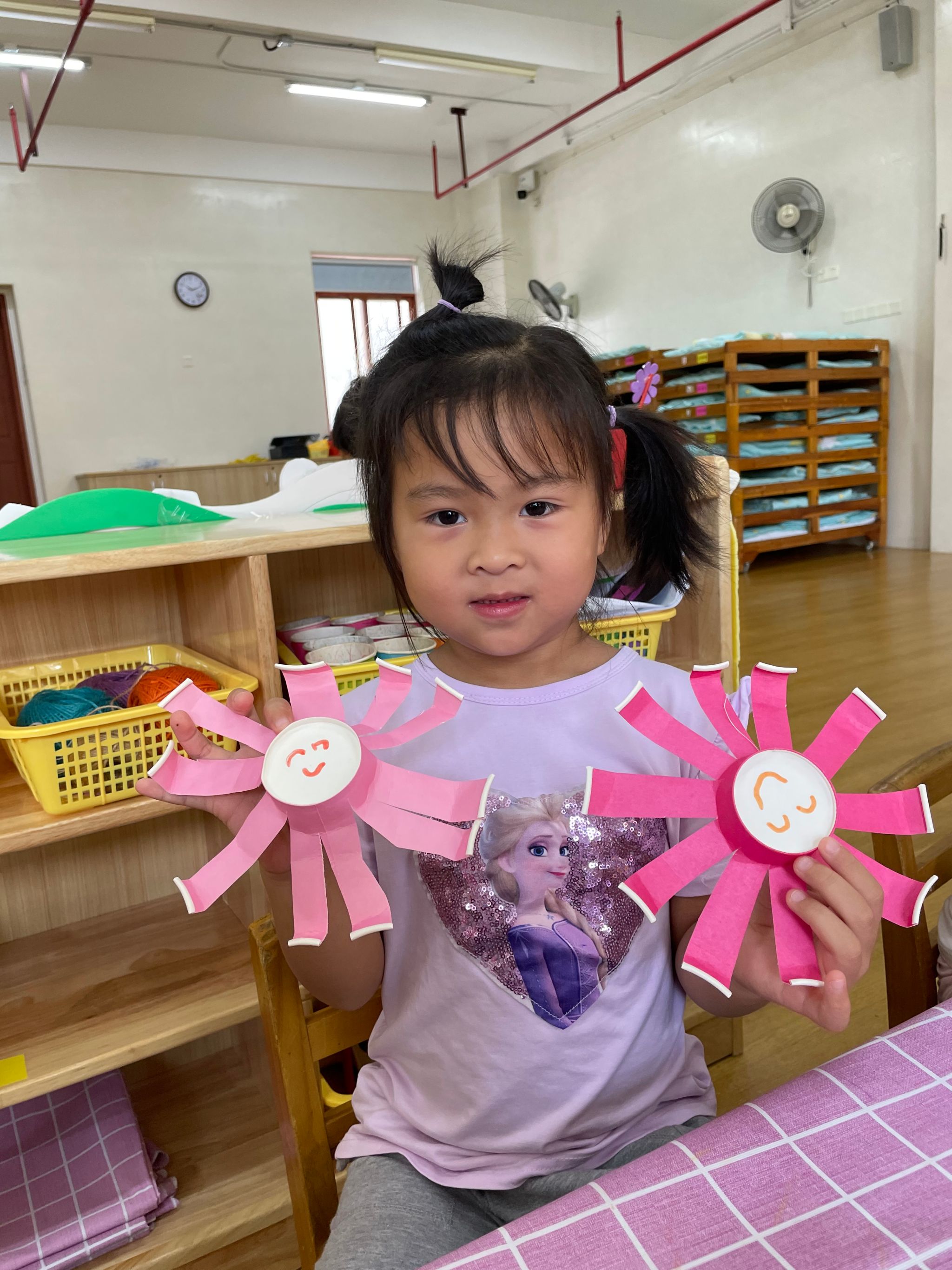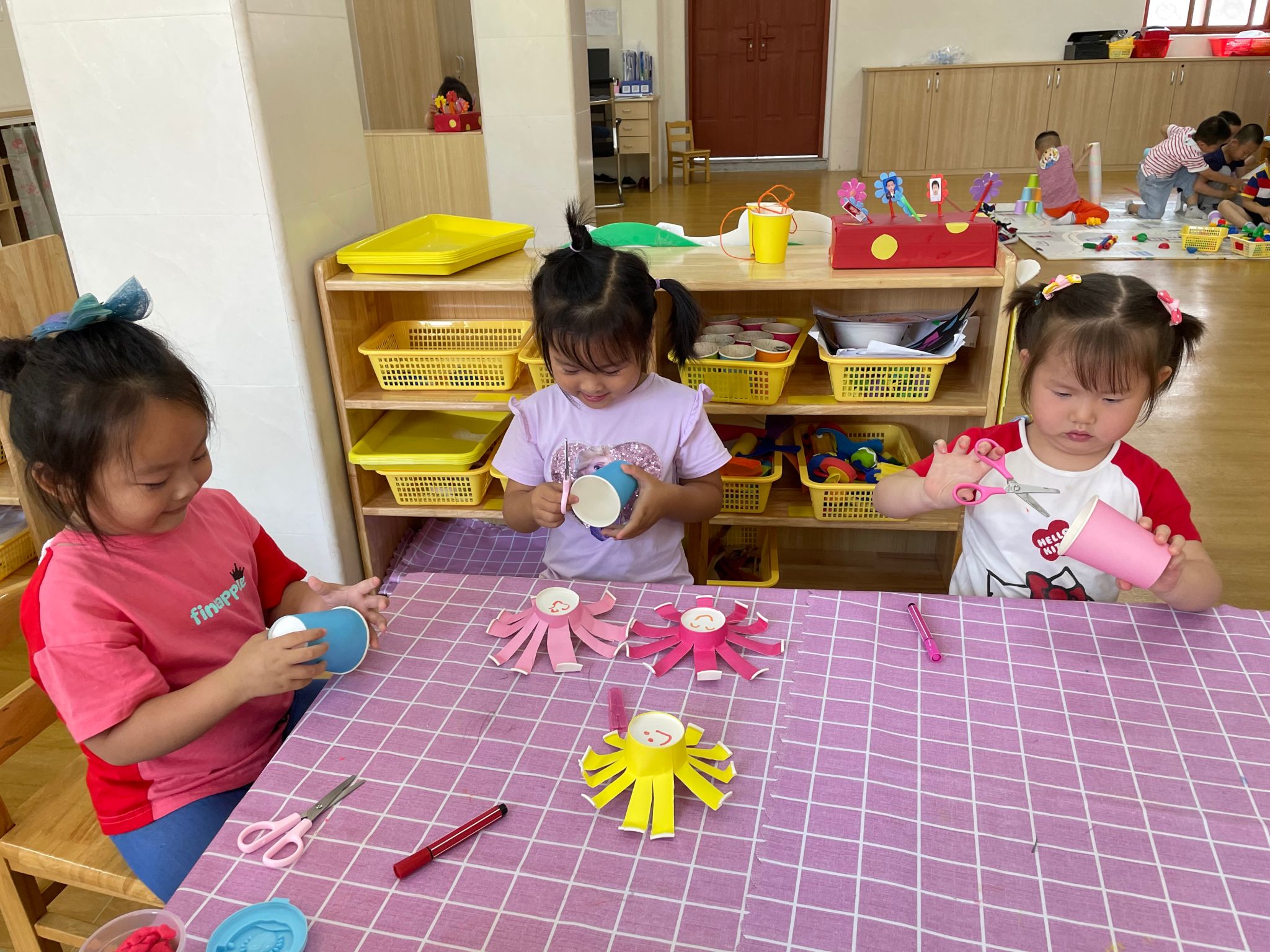 看,五颜六色的纸杯在小朋友的巧手剪裁下变成一朵朵美丽的小花;是不是很好看!