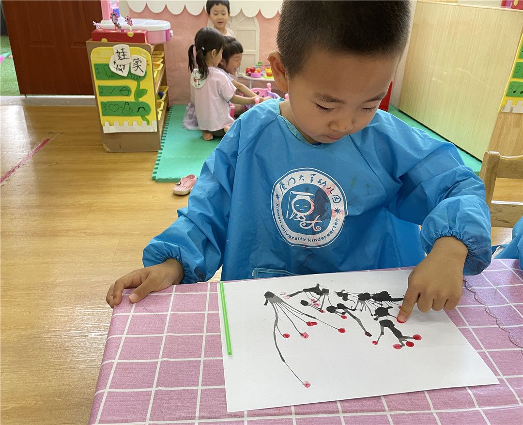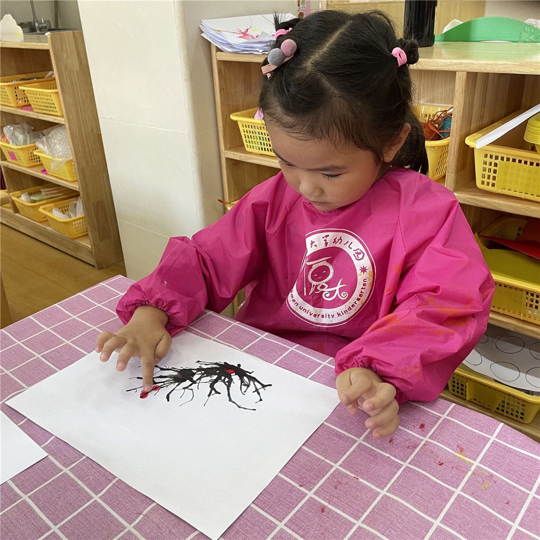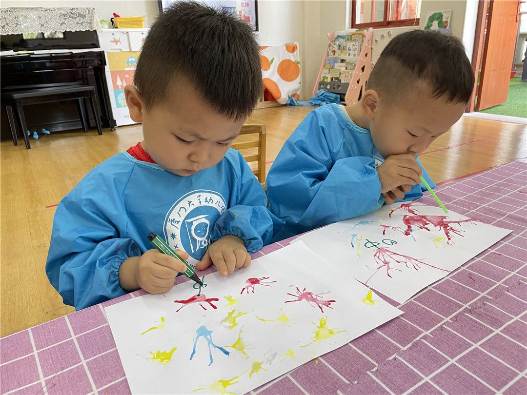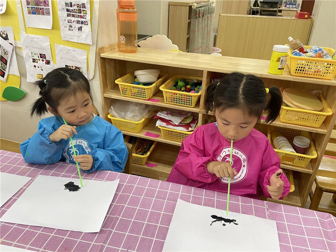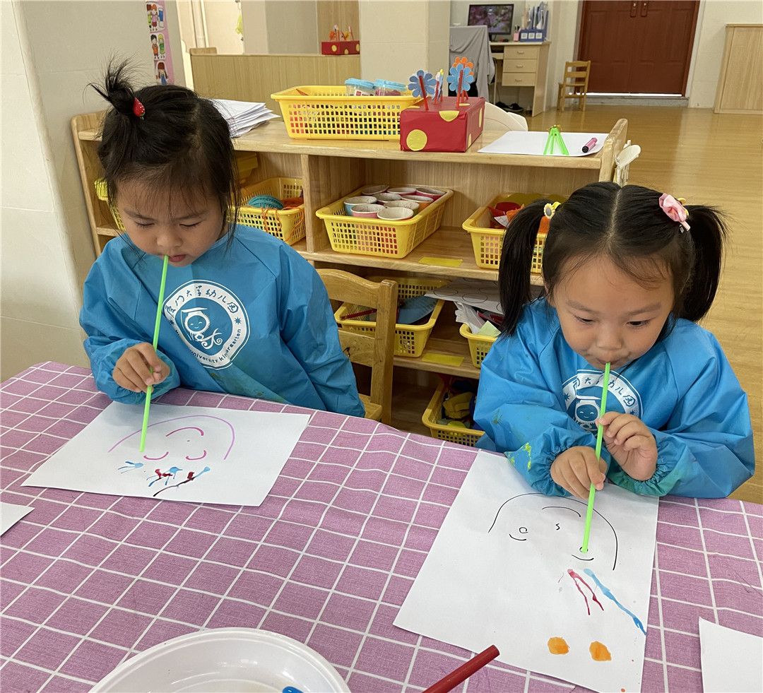 一滴颜料、一根吸管、一张纸,再加上宝贝们的小小嘴巴,小三班宝贝们用最简单、最简洁的方式,描绘和展示了一幅幅属于他们自己独特的画。