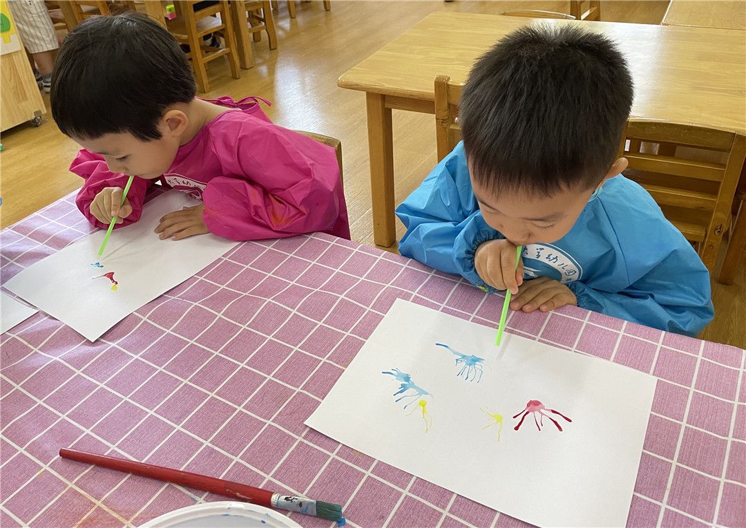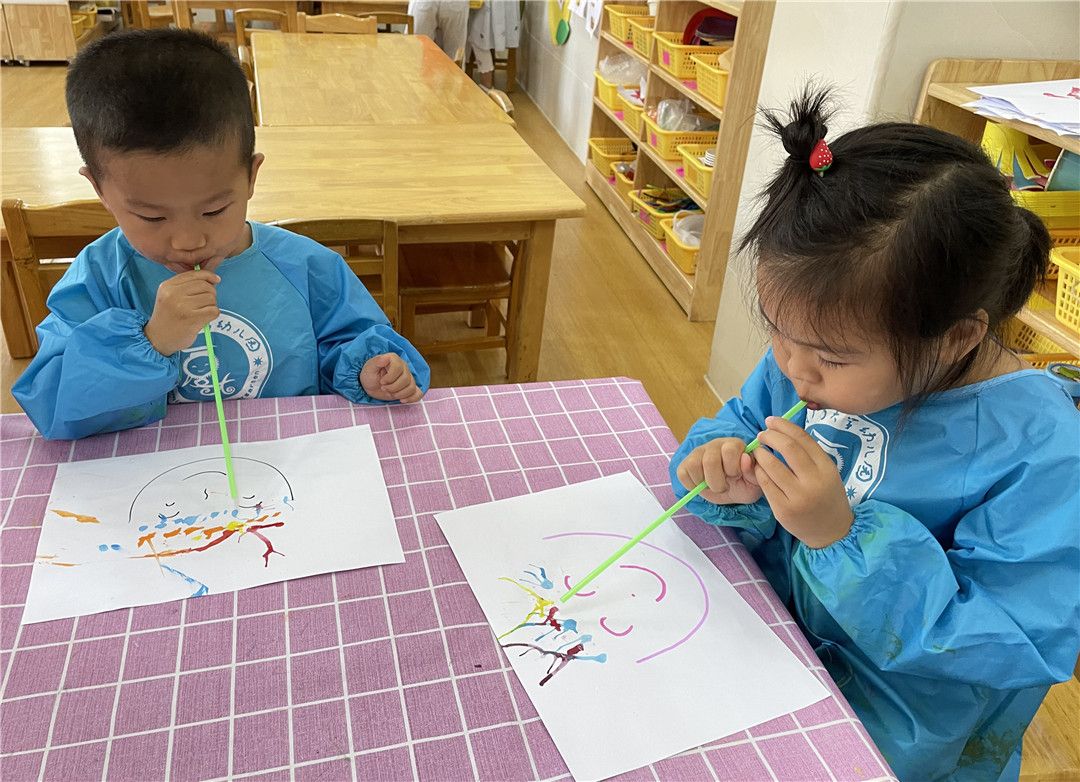 孩子们第一次接触这样的绘画方式,一个个都跃跃欲试,让我们一起去看看我们小三班宝贝们都吹出什么……