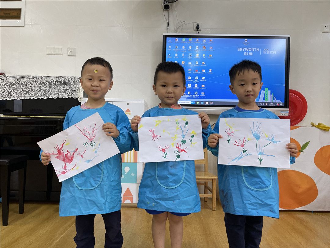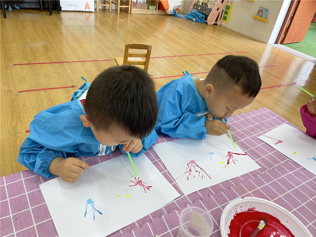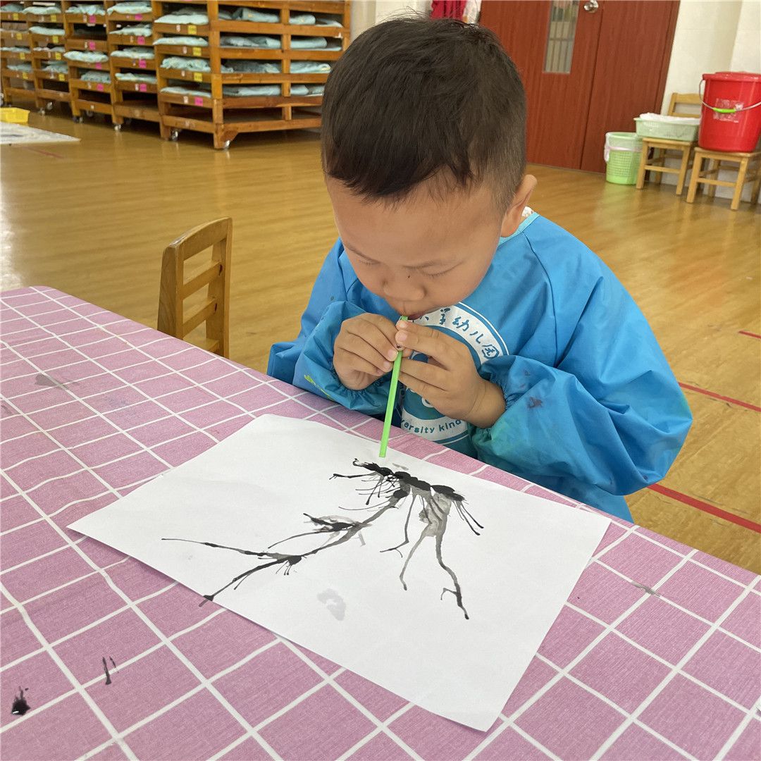 在这几次的吹画活动中孩子们不仅体验了吹画的乐趣,更培养孩子们对吹画的兴趣。丰富了对色彩的感受力,更是锻炼了他们手、眼、脑的协调能力。