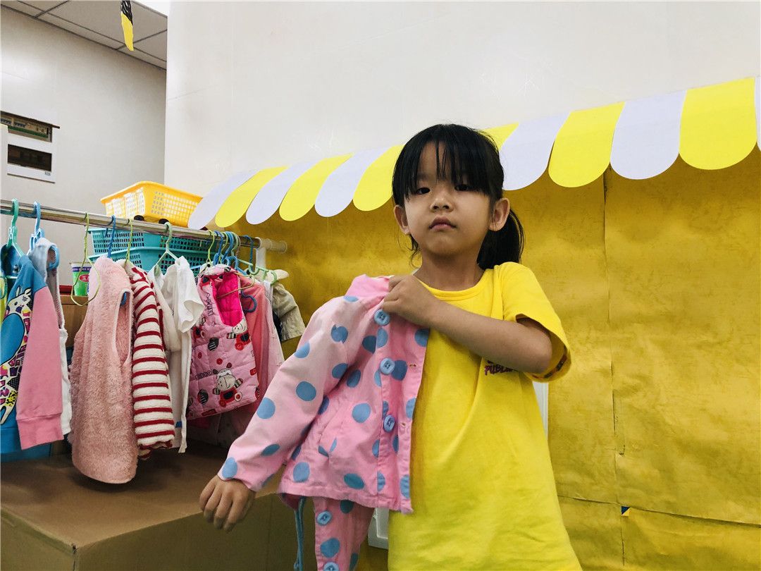 “小领口,对肚子,左钻钻,右钻钻,咻~小手举高,我的衣服穿好了!穿衣小达人就是我啦!”