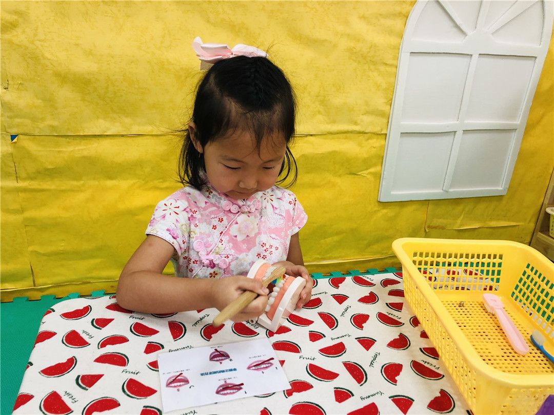 小小牙齿用处大,吃饭说话都用它,吃过食物漱漱口,早晚记住把牙刷,天天用它要爱护,少生病来健康佳。