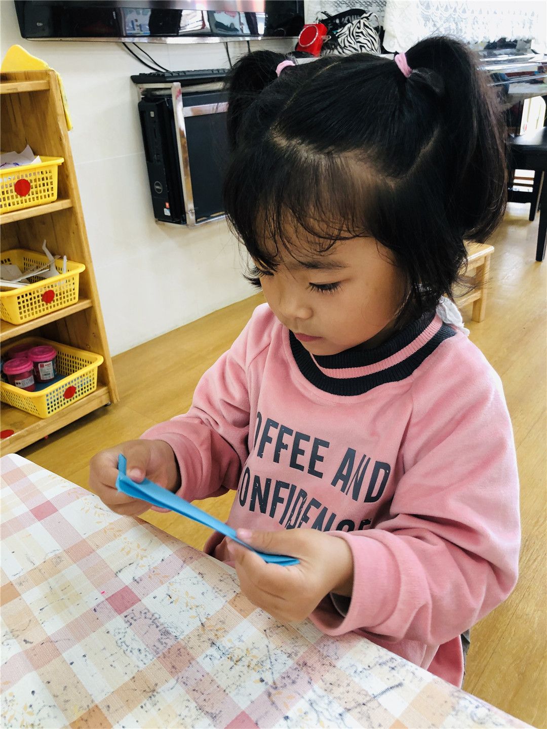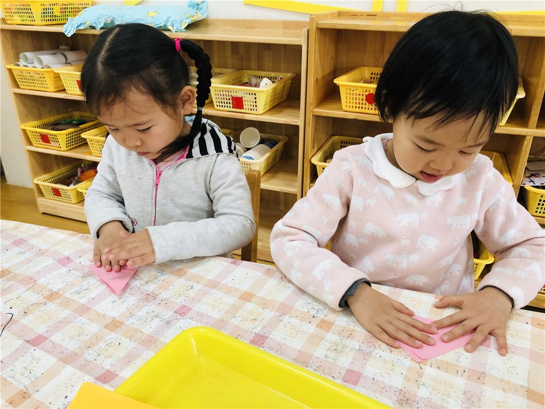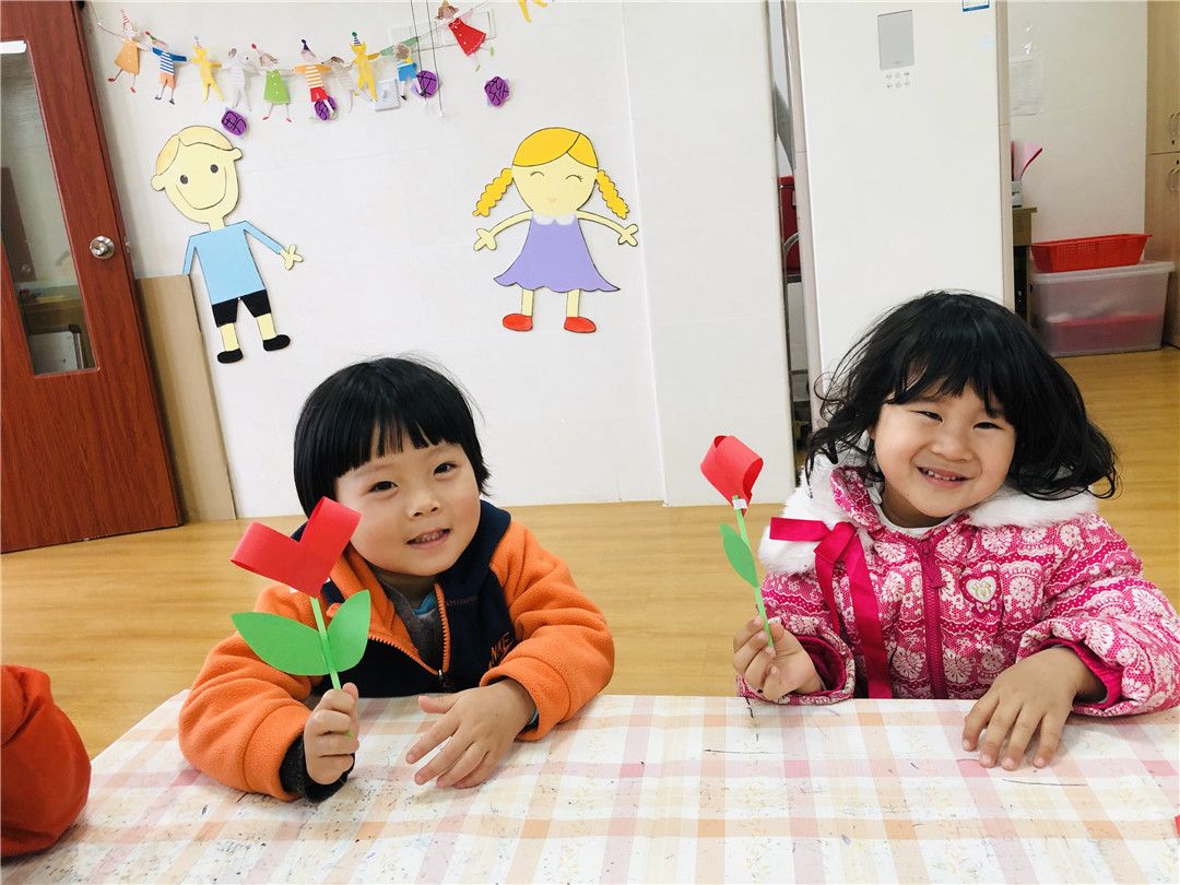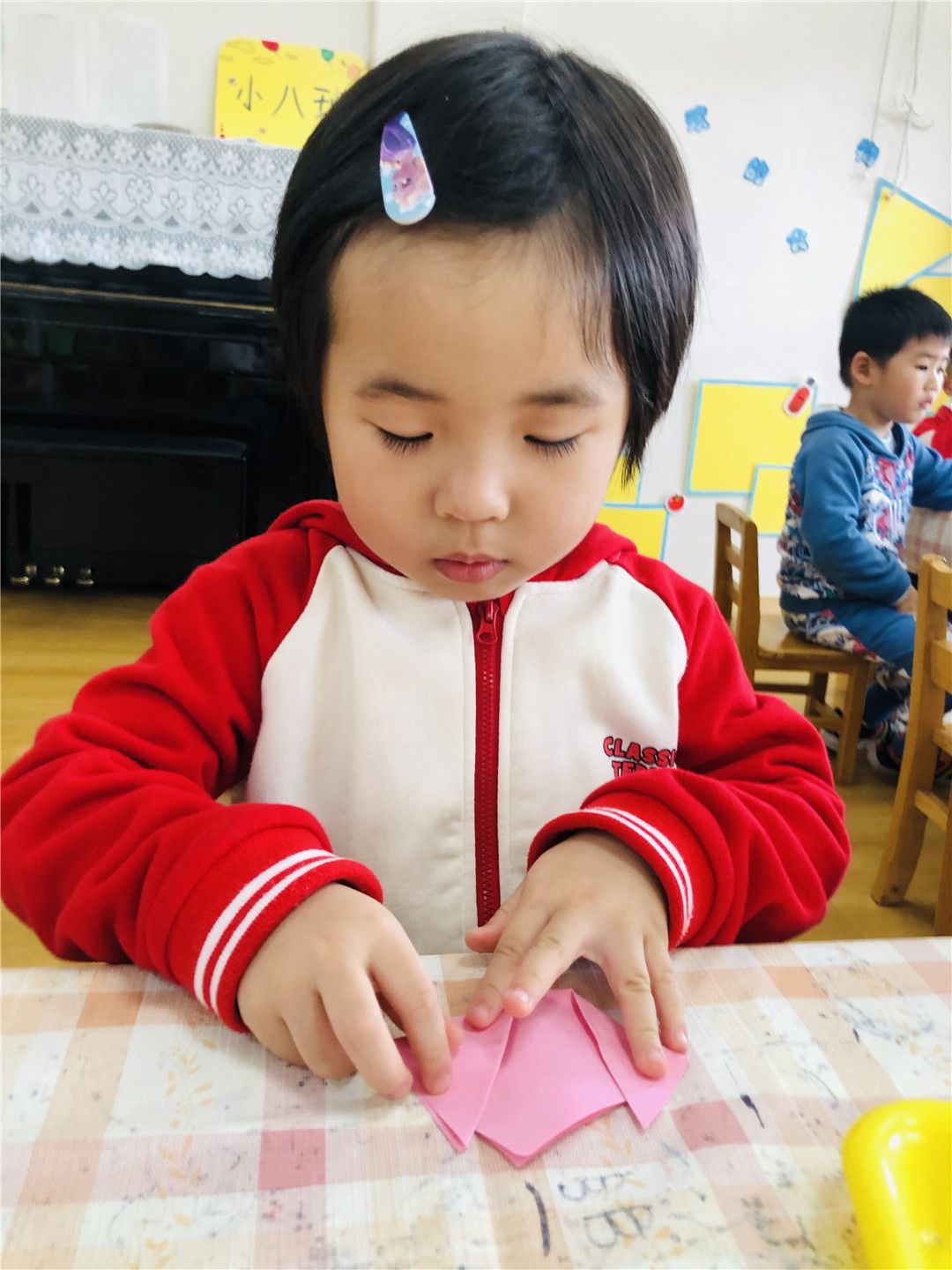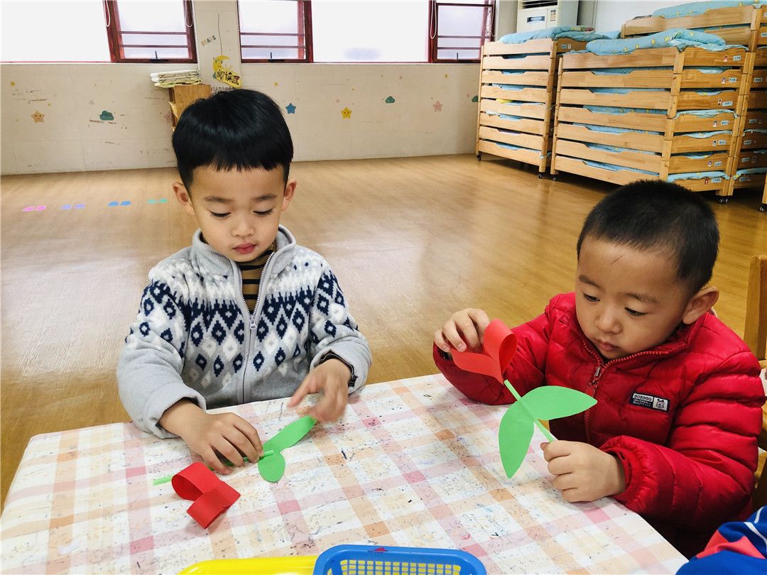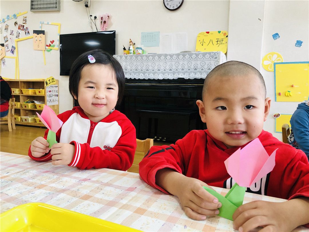 孩子们还用各种颜色的折纸制作了不一样的小花儿。