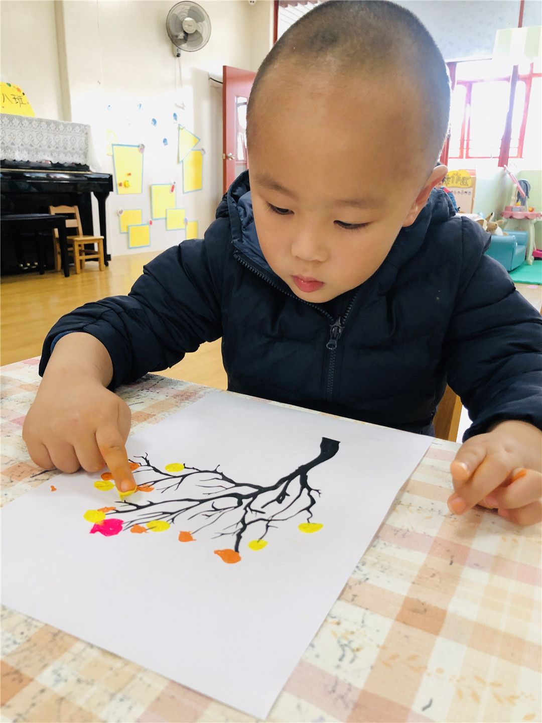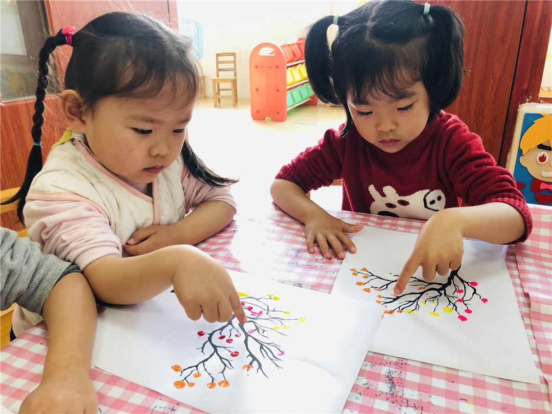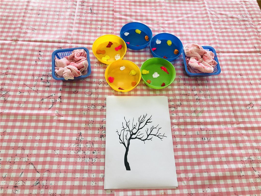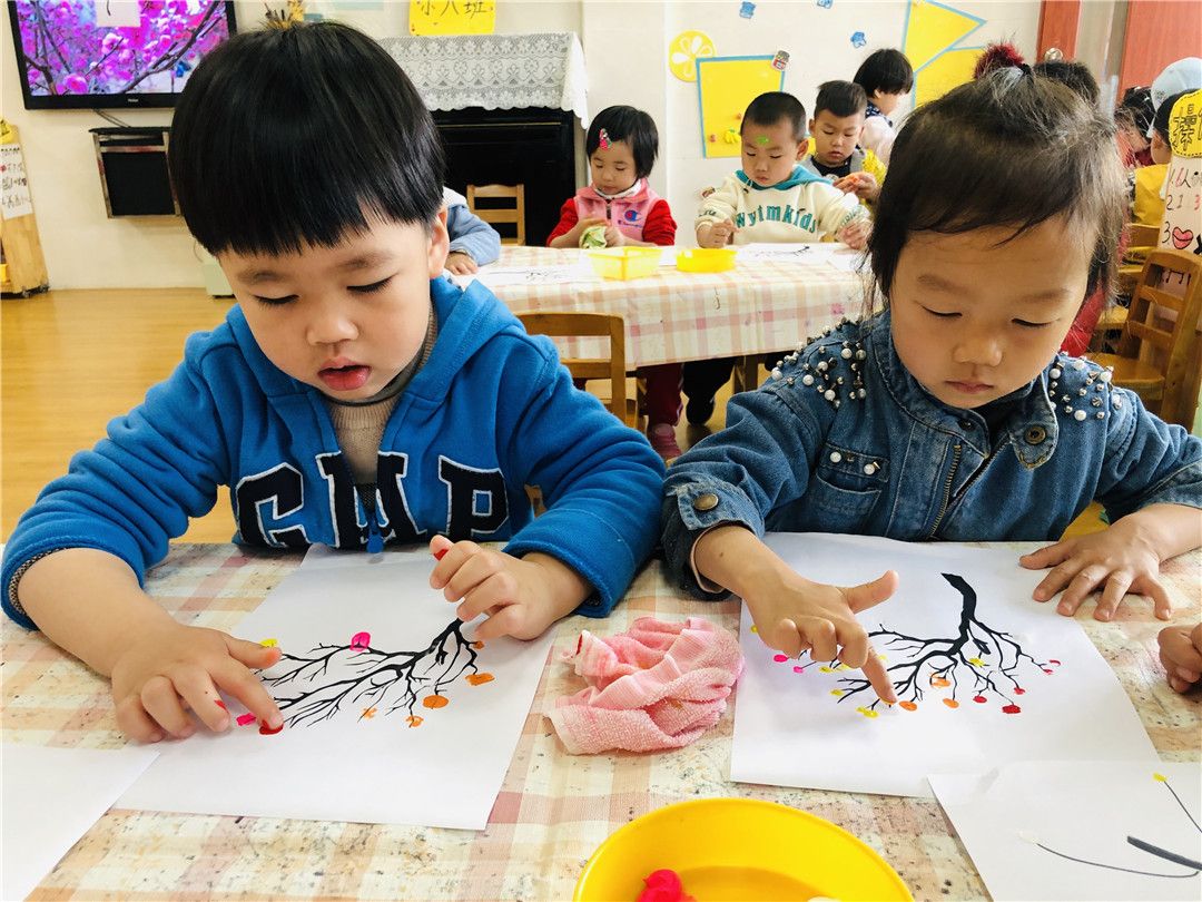粉色、红色、白色……不同的颜色在小朋友们的手指下,变成了一朵朵漂亮的花儿。
