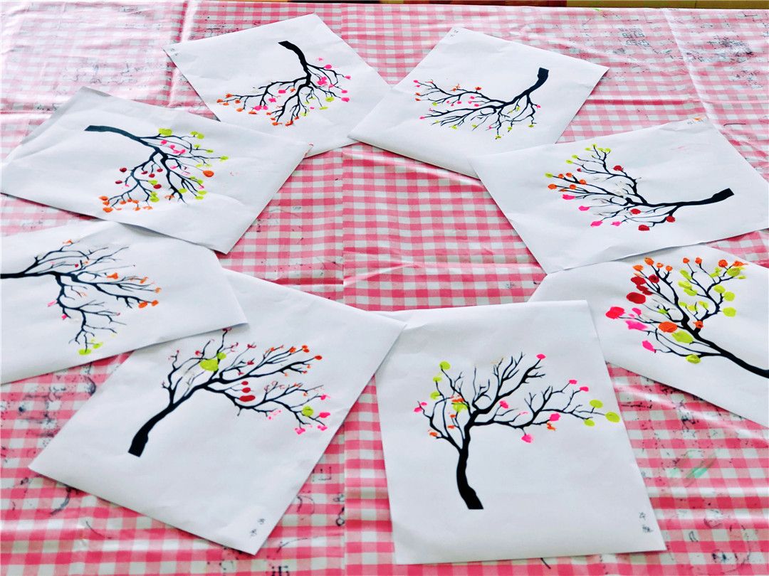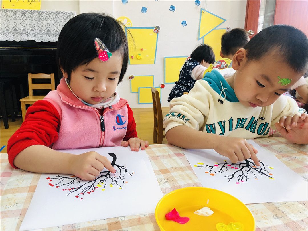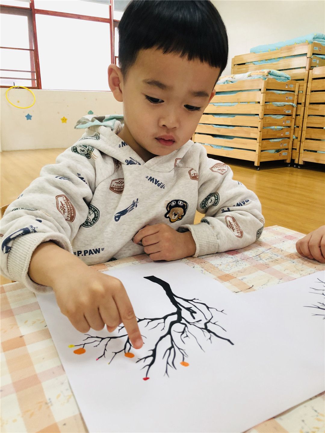 粉色、红色、白色……不同的颜色在小朋友们的手指下,变成了一朵朵漂亮的花儿。