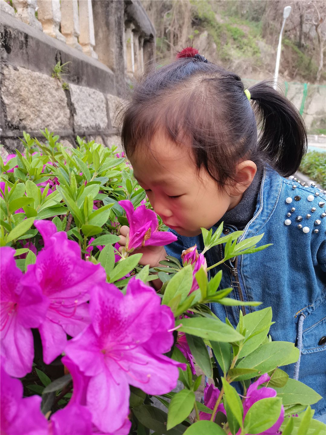 孩子们在爸爸妈妈的带领下,看一看、闻一闻、摸一摸,从花儿的外形、颜色等方面认识春天的花朵……