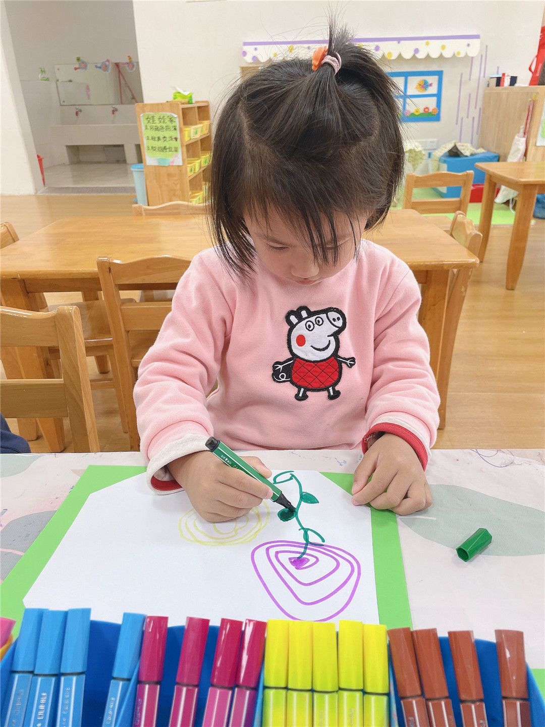 一年之计在于春,每一个春季都是希望的开始。宝贝们用彩笔描绘着春天的美丽,用小巧手制作着春天的使者。班级里也充满了春天的气息。亲爱的宝贝们,愿你们也如同春天里最美的花朵,迎风开放,快乐成长。