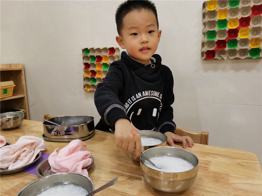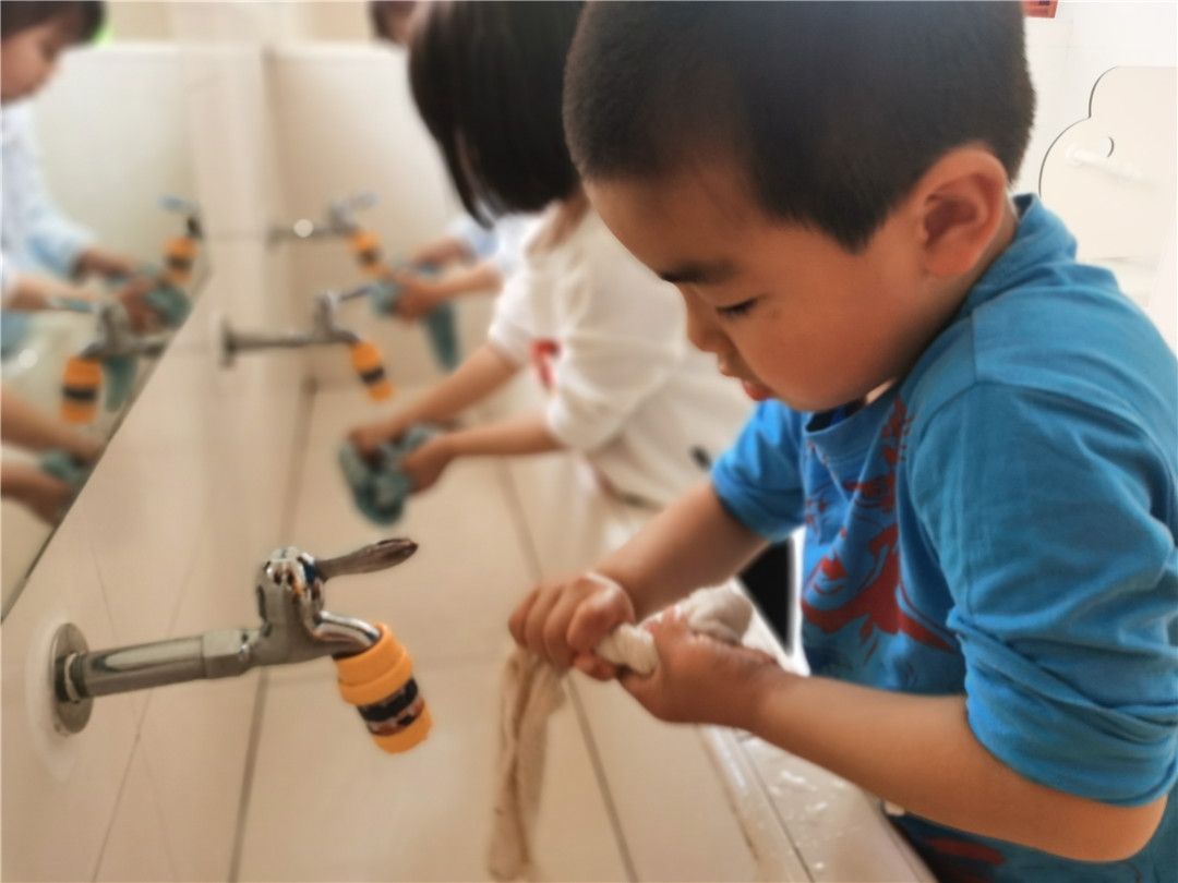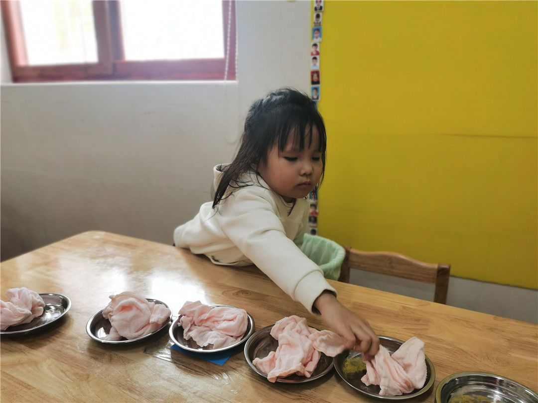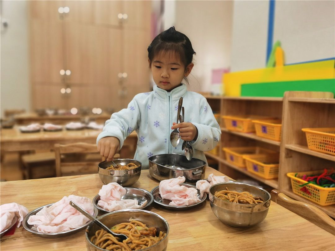 值日生还有个小任务,就是要在用餐前帮忙分汤勺、分毛巾。瞧我做的多认真,能为伙伴们服务真开心!