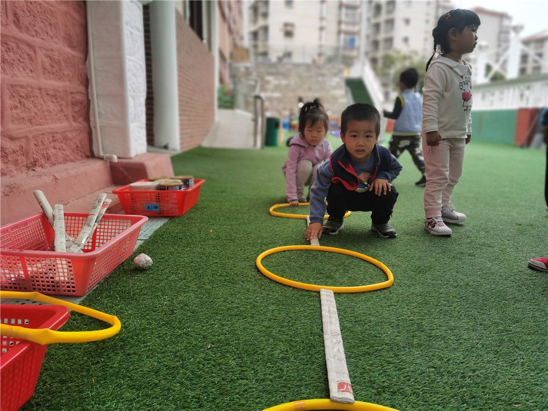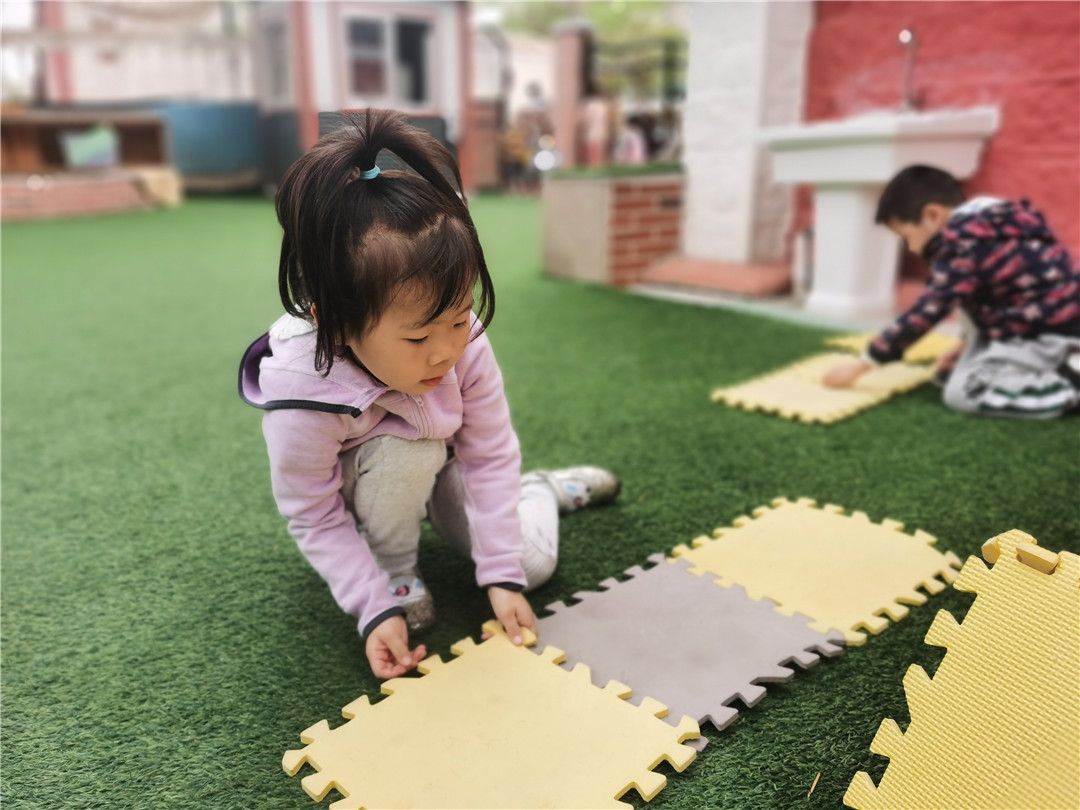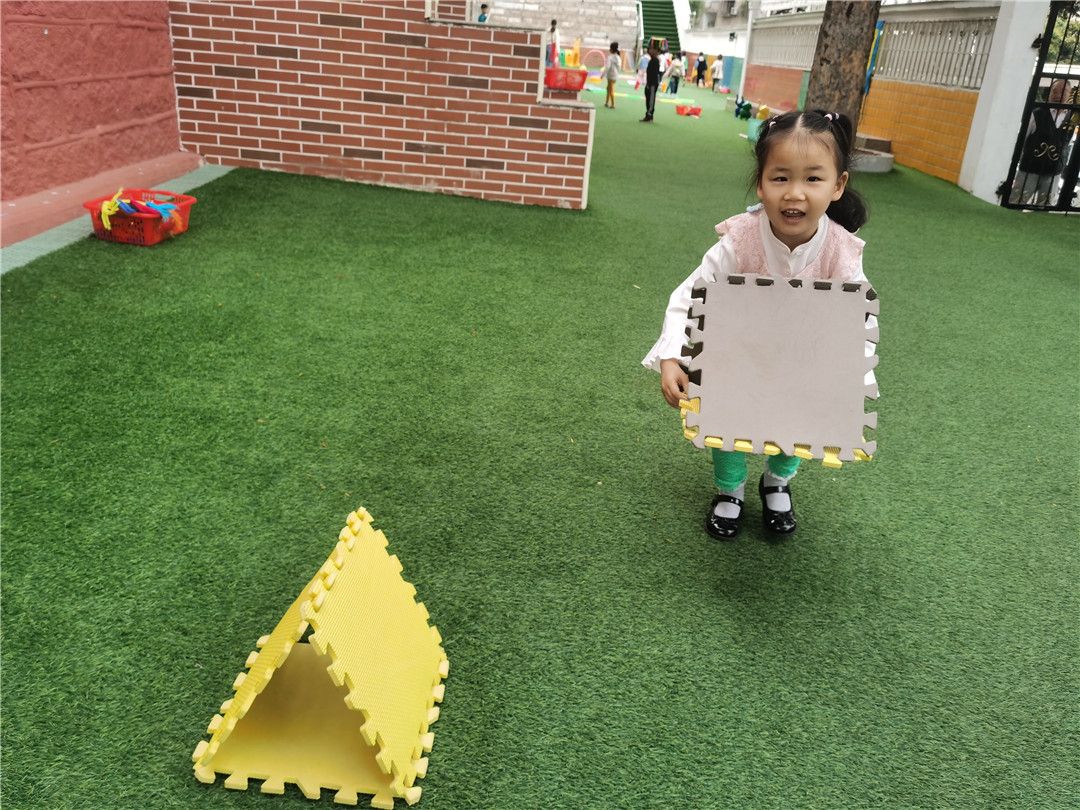 每天,我要早早来到幼儿园,变身忙碌的“小蜜蜂”, 泡沫块拼起三角形当小树,塑料圈、纸棍铺小路……大家一起布置好游戏场地,我们将在户外晨间运动中开启一天快乐的幼儿园生活。