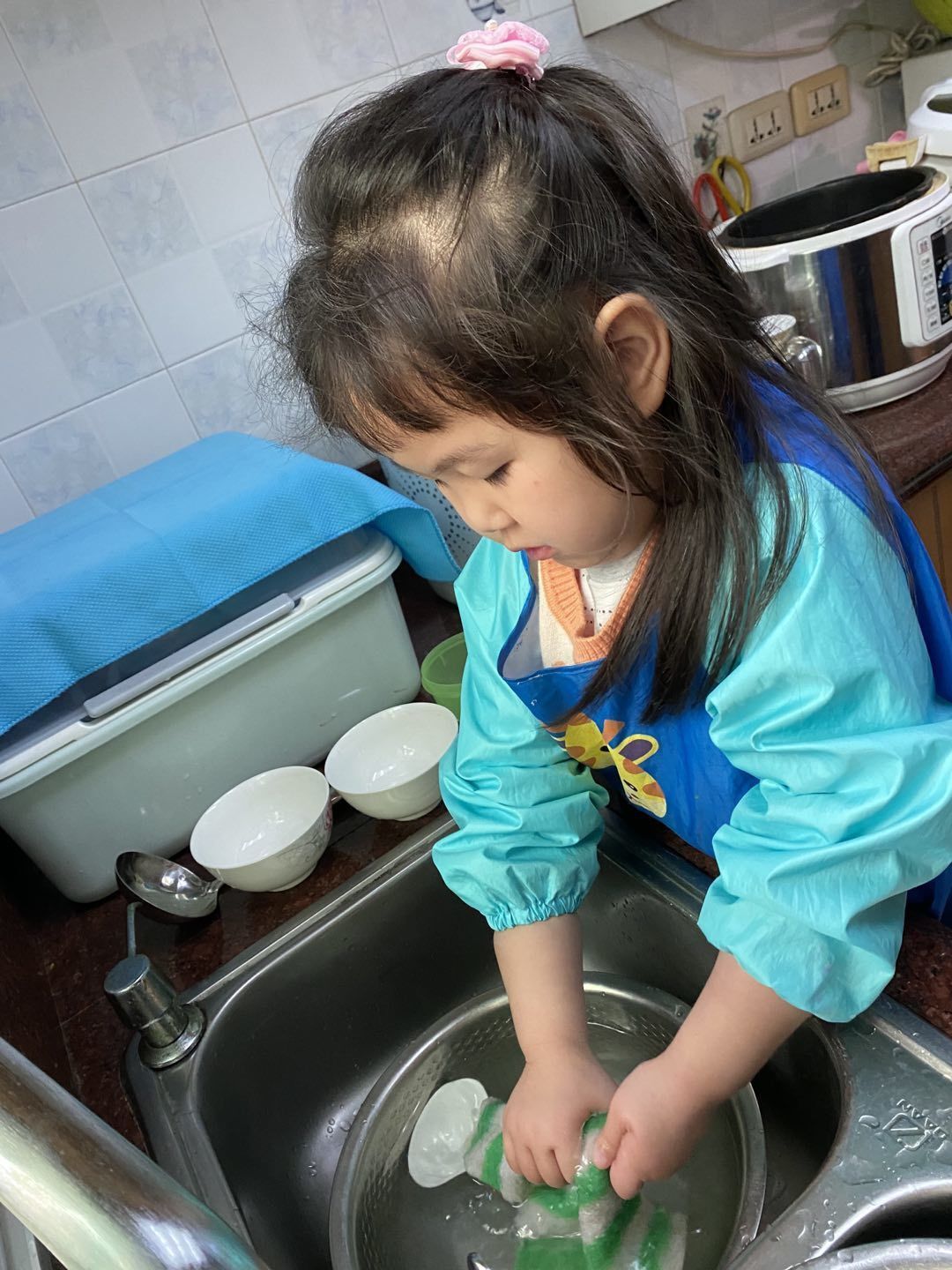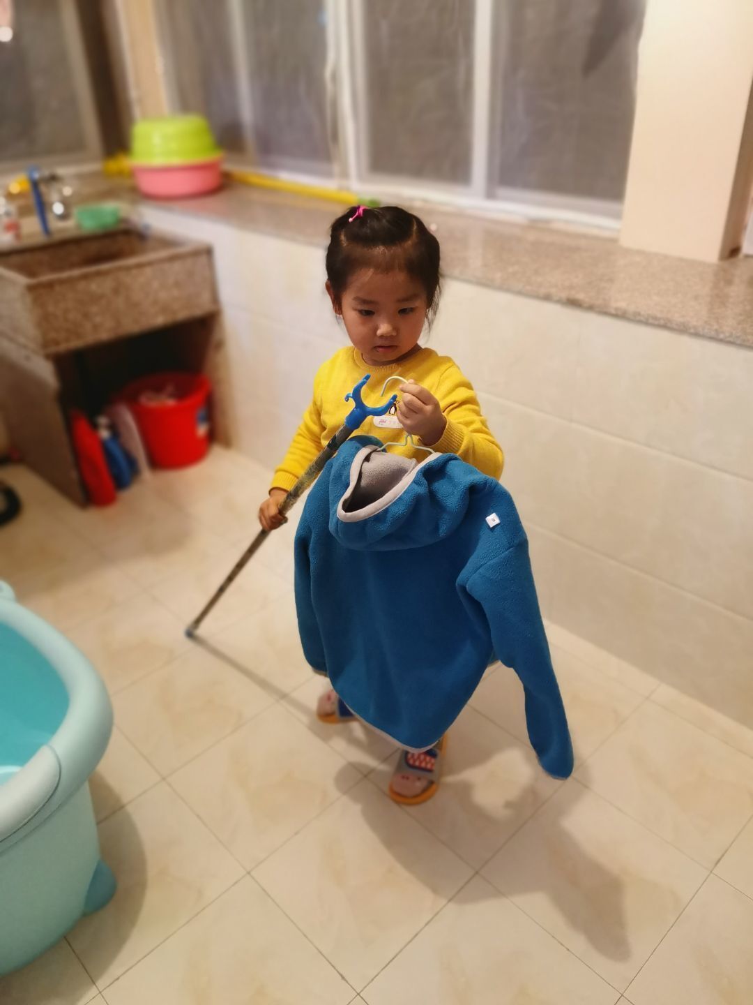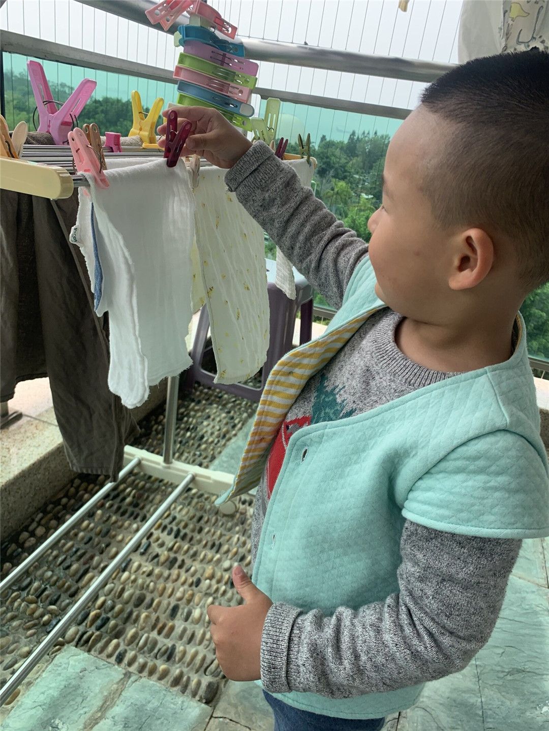 爸爸妈妈上班真辛苦,回到家里我也要帮妈妈做点事。擦桌子、洗碗、晾衣服、夹夹子……妈妈夸我好宝宝,我抱着妈妈笑了。