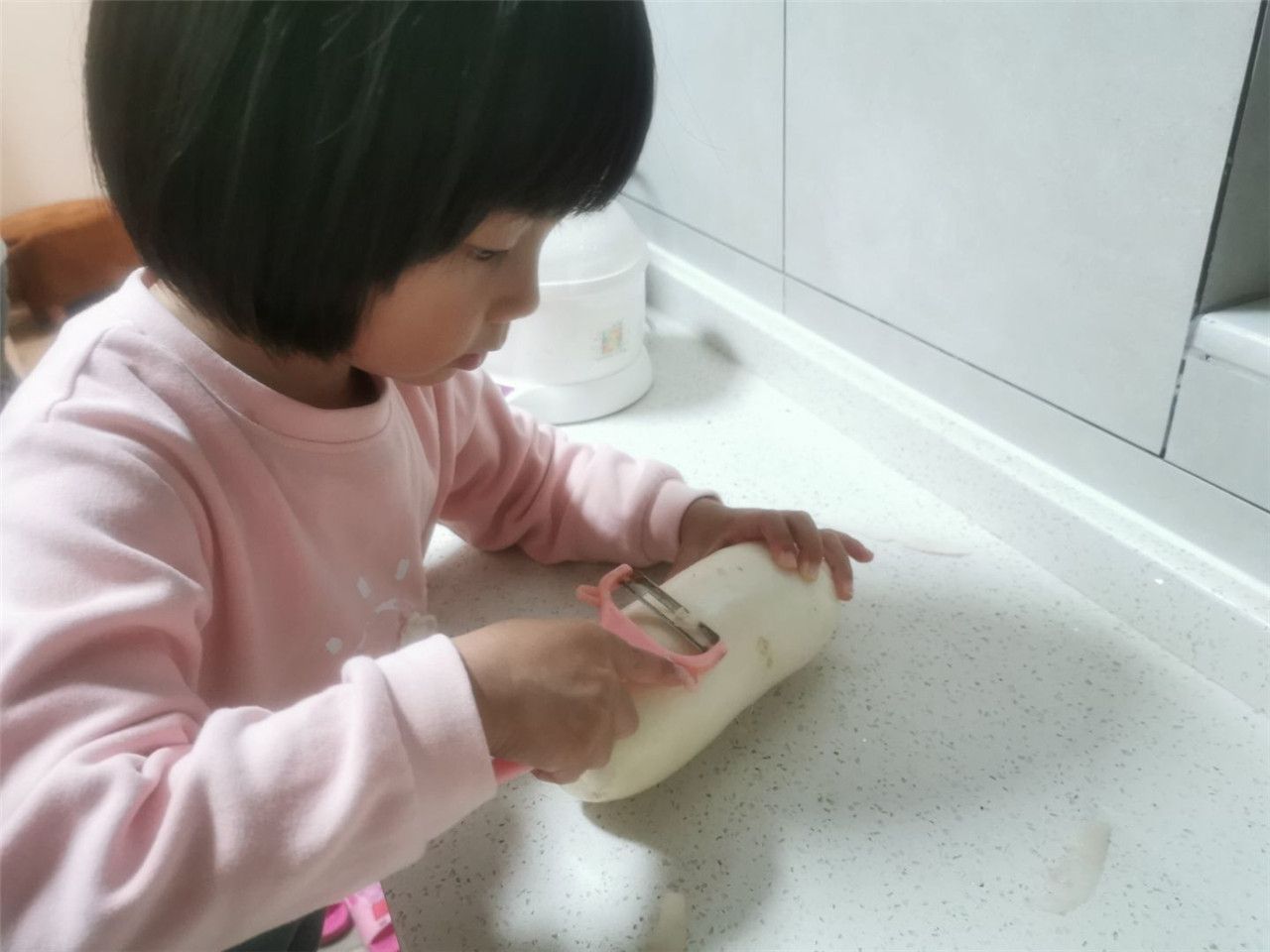 哲玺小朋友和柔柔小朋友周末都在家里的厨房帮忙,打算做一顿美味的午餐,他们说:“自己切的菜吃的更香呢!但是一定要特别小心,因为切到手就会流血!”