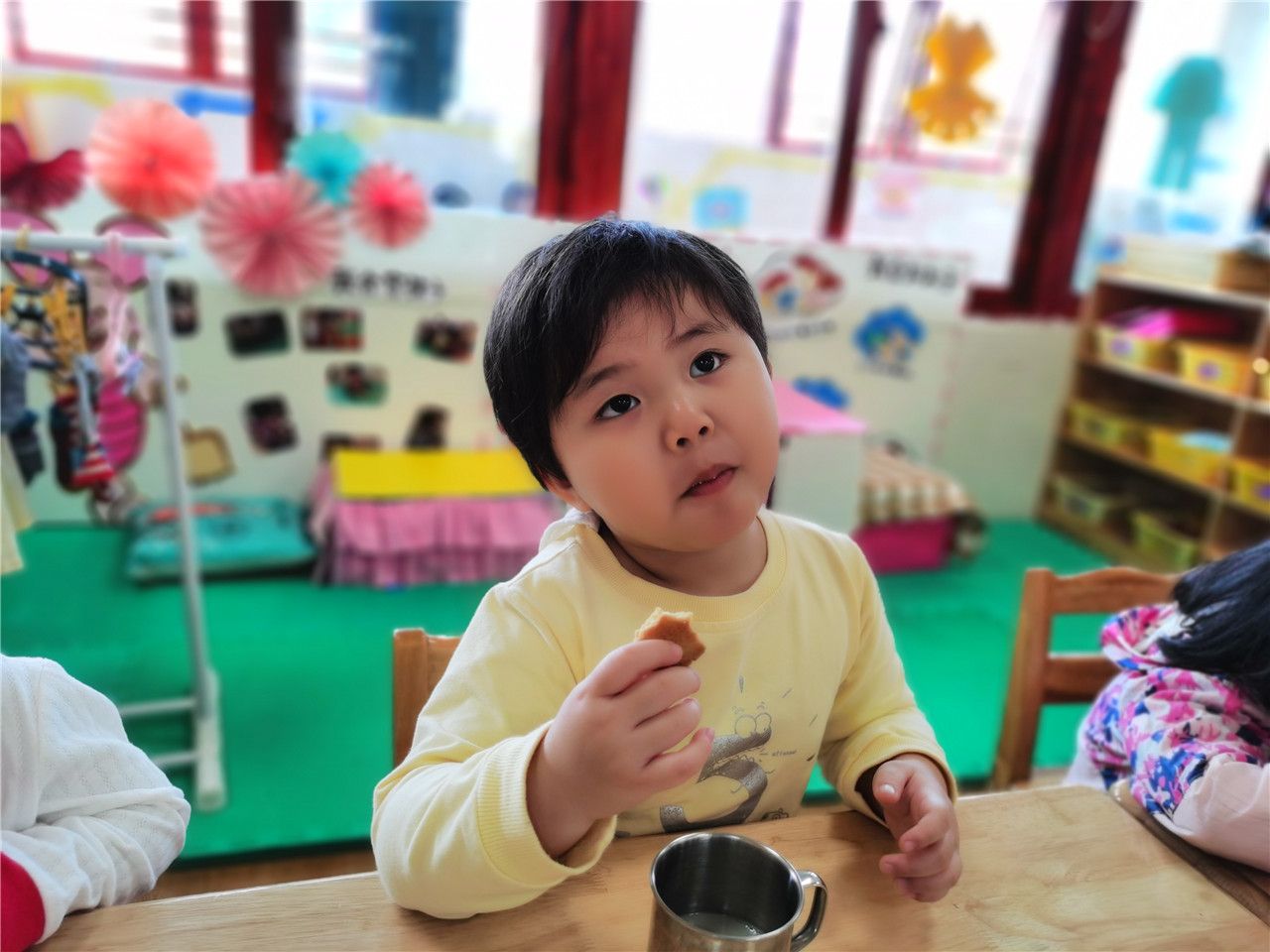 早晨起床要用小手吃早餐;
