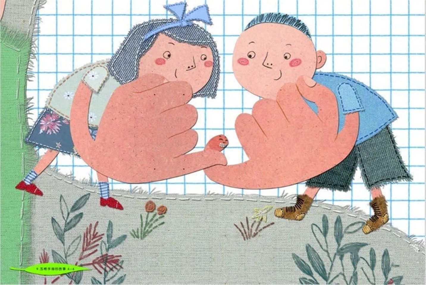 老小(小指)说:“我最了不起,小朋友拉钩钩的时候,只相信我!拉钩钩,说话算数。”