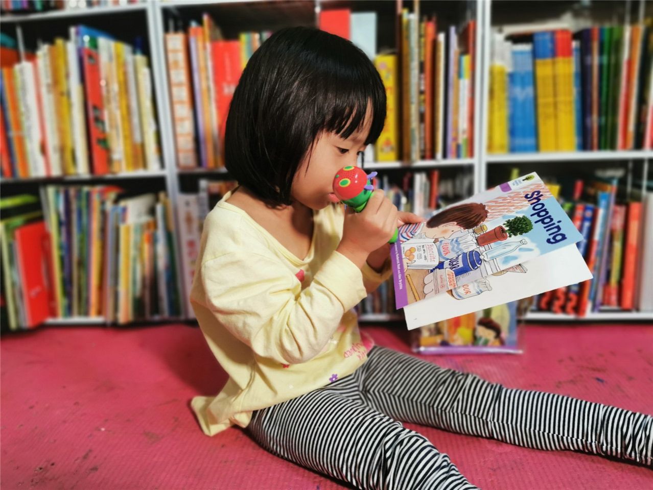 小薇小朋友说:“我会用点读笔,点读笔会读出很多英语,我喜欢学英语。”