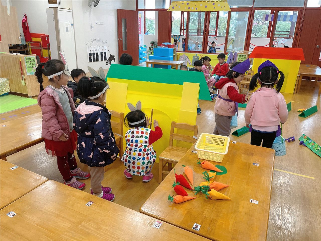 扮演小兔乖乖的宝贝们也可爱极了。不仅能把故事情境表演出来,还能模仿小兔犹豫的表情和动作,有的小朋友还会嘟嘴卖萌,拒绝开门,那可爱的样子实在让人忍俊不禁。