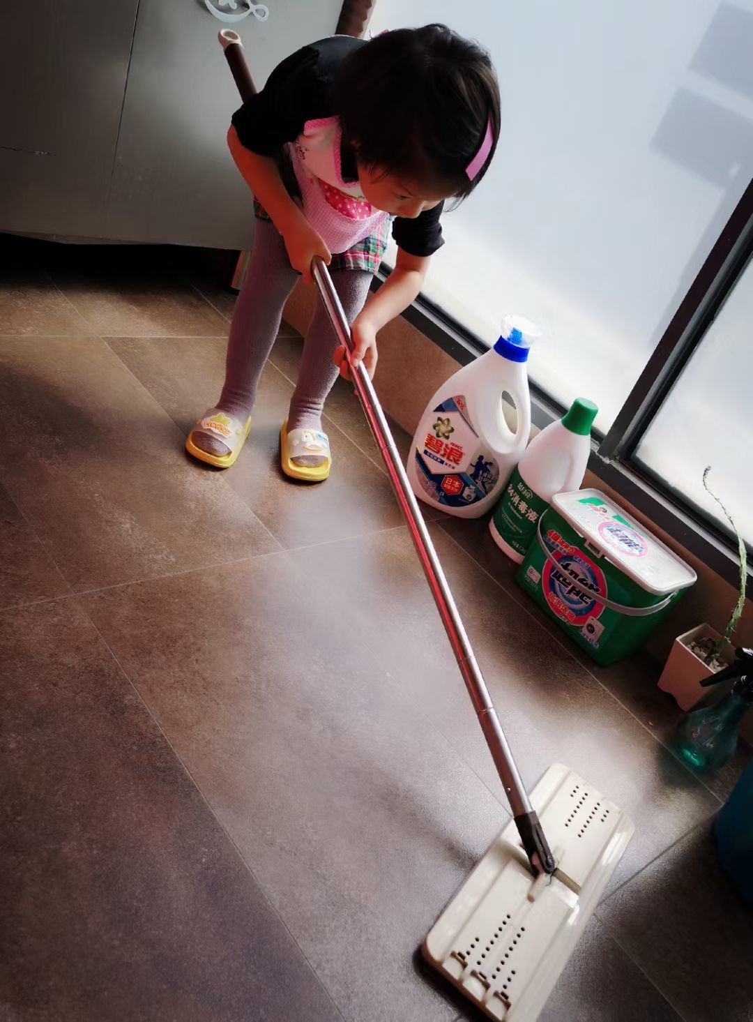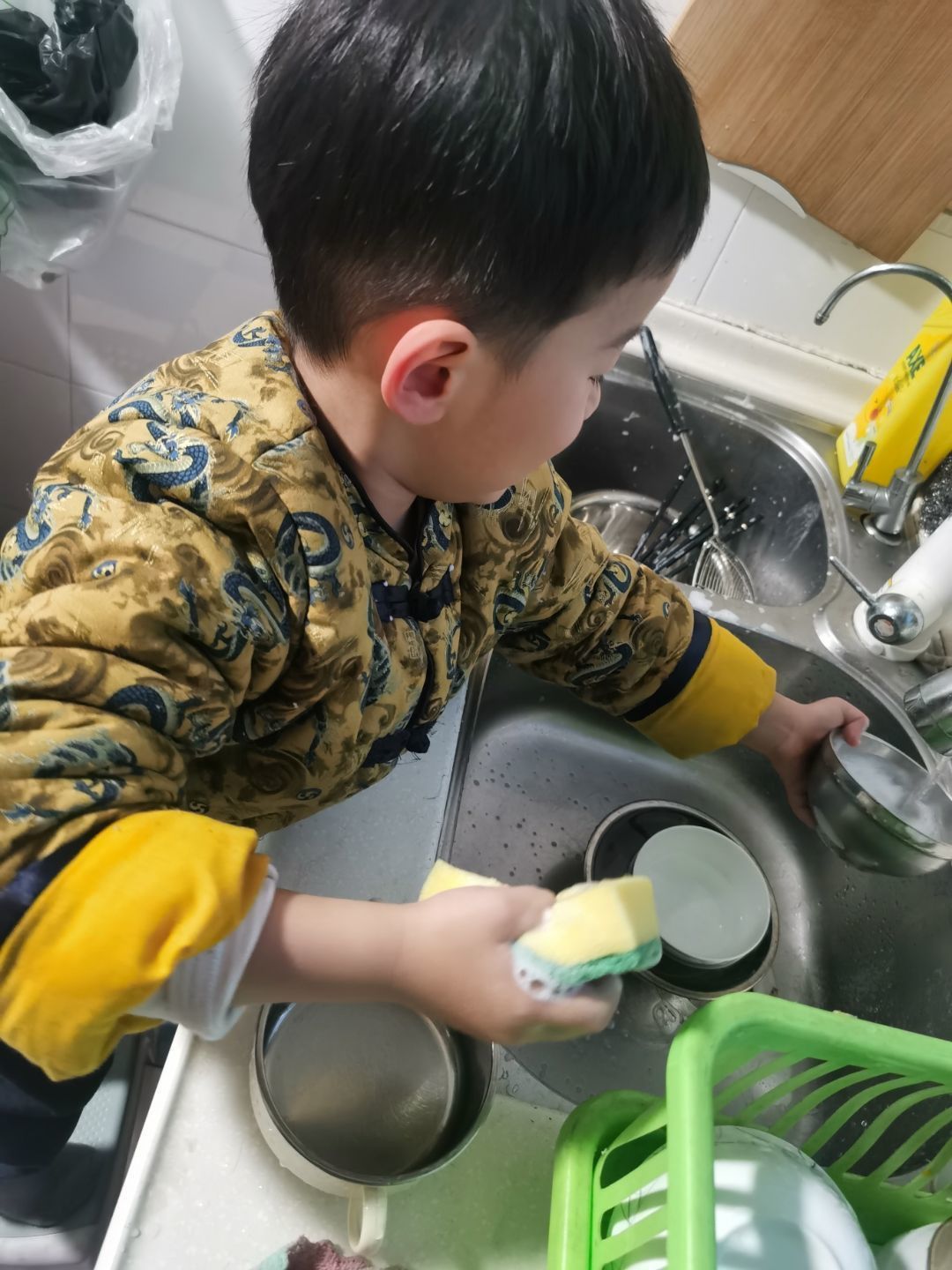 在家里撸起袖子,我们也是能干的小帮手,不仅能帮奶奶擦桌子,扫地板,我还能帮妈妈摘菜,吃完饭我能帮忙洗碗……
