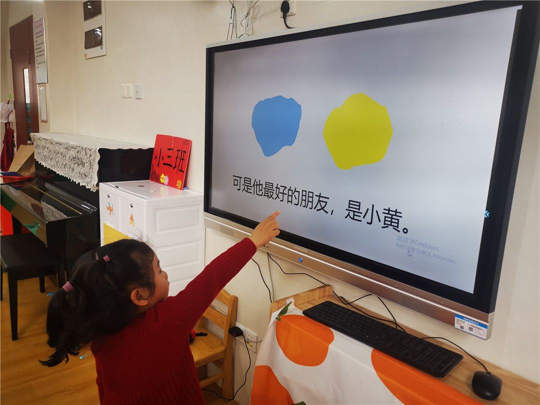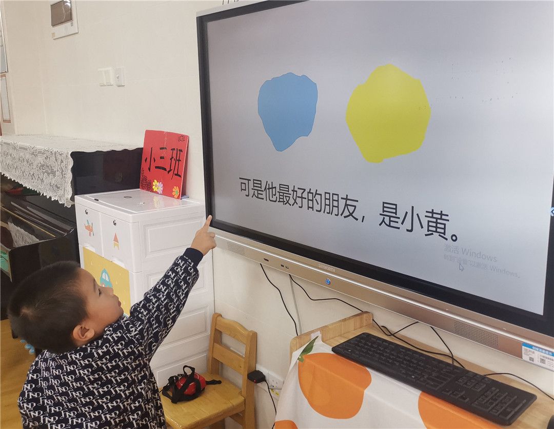 在一次绘本阅读活动中,《小蓝和小黄》这本书吸引了孩子们的注意力!孩子们聚精会神地看着绘本,寻找着自己喜欢的颜色。