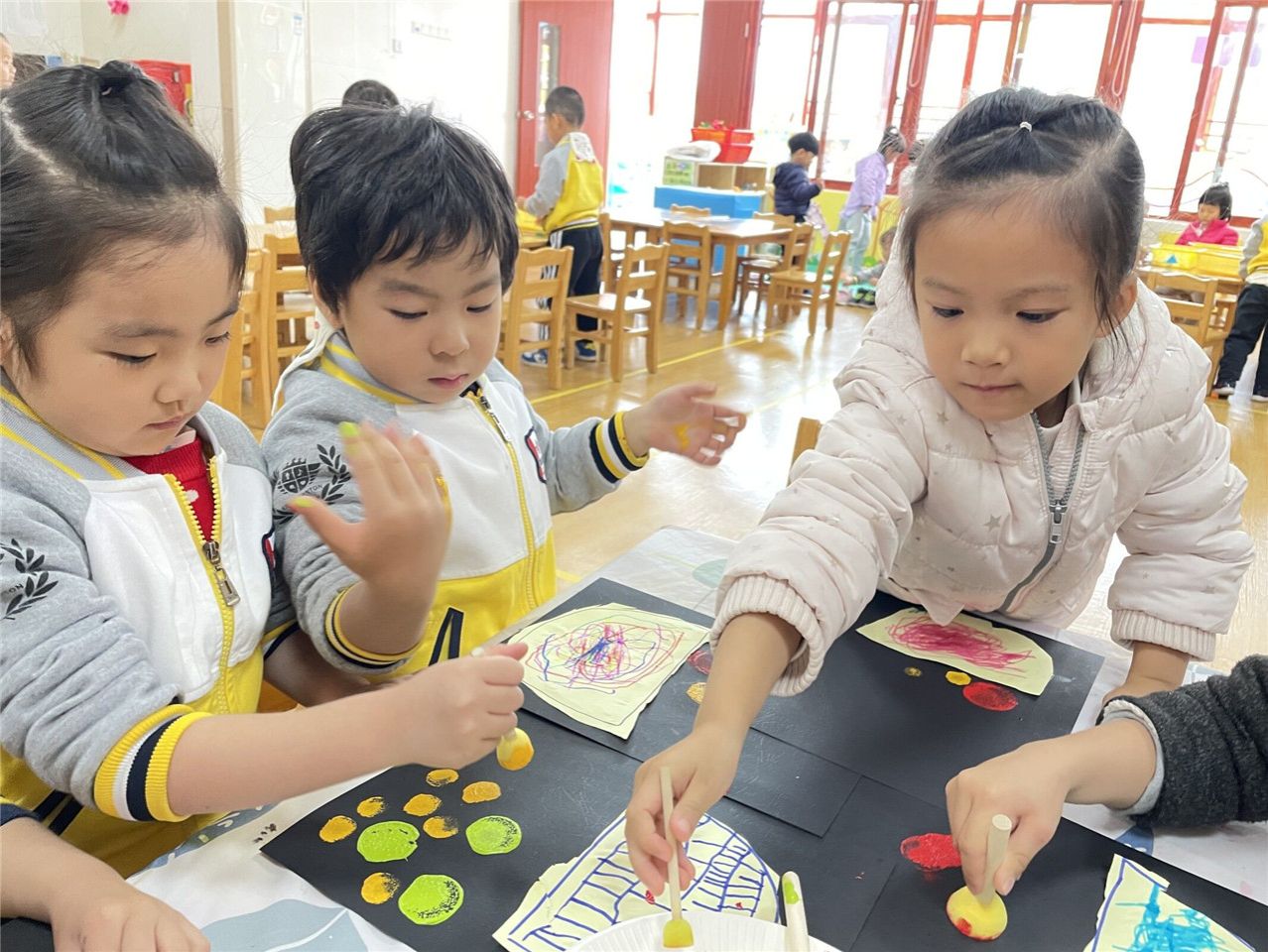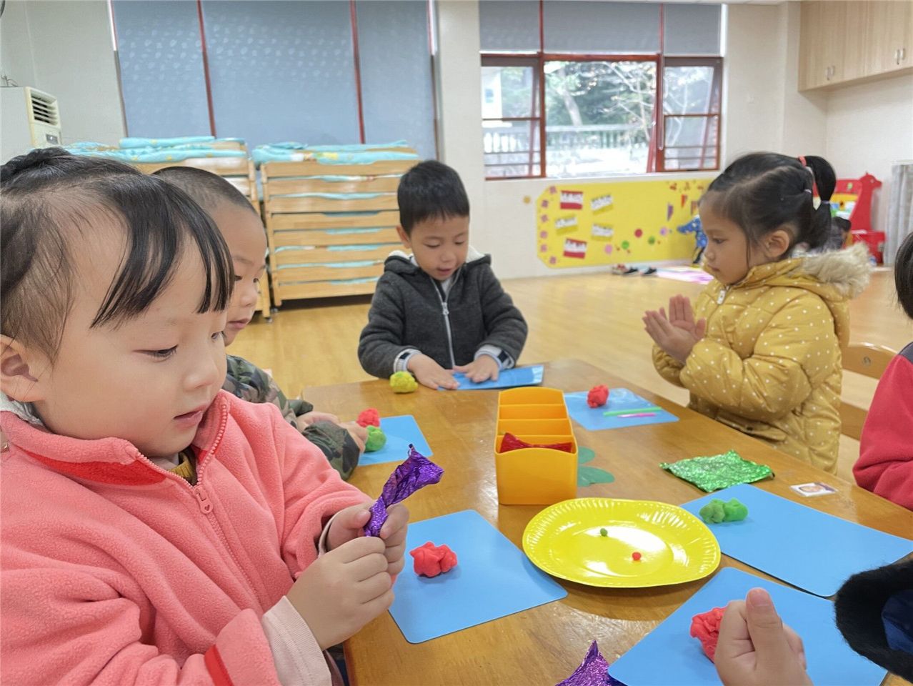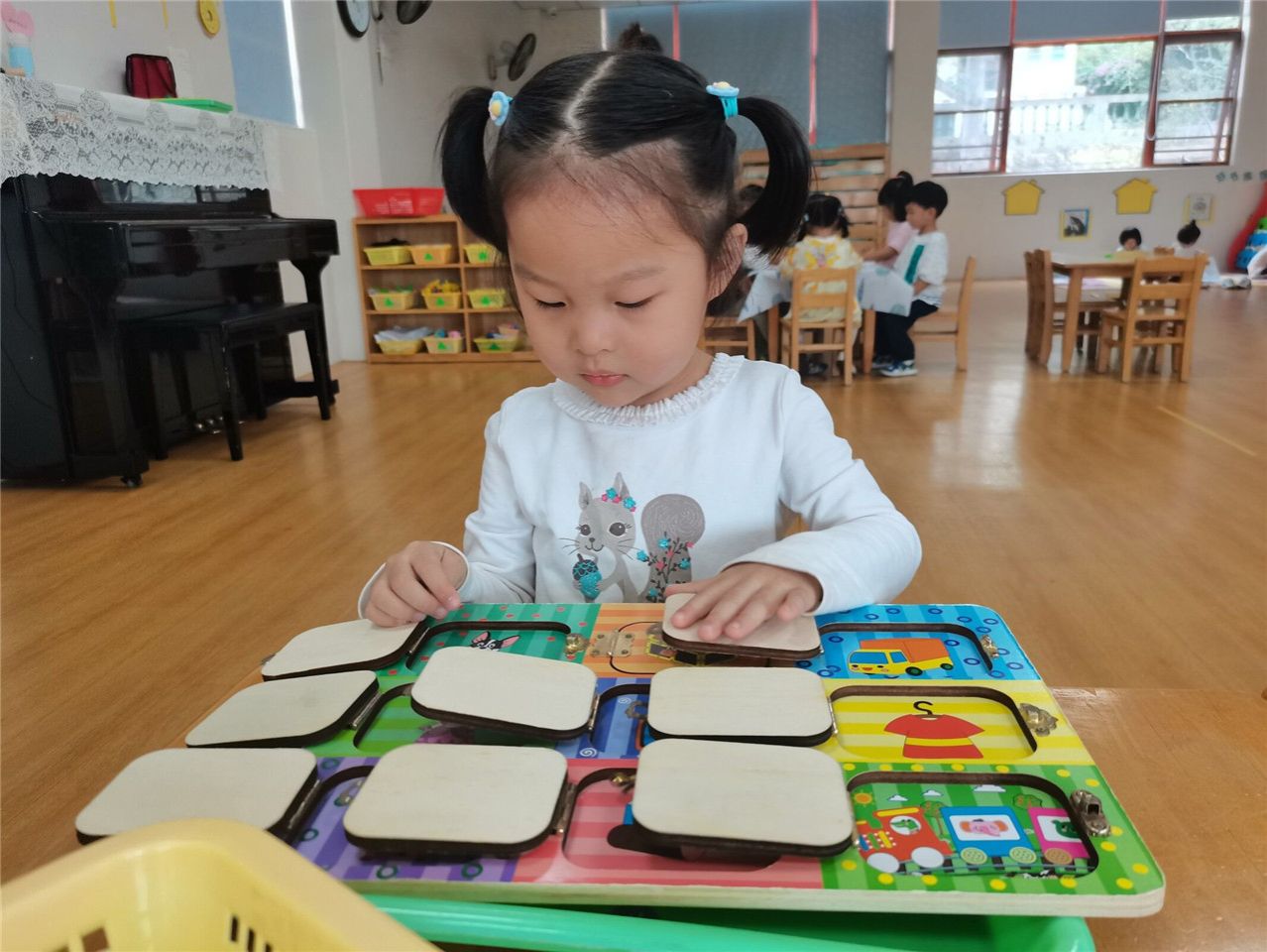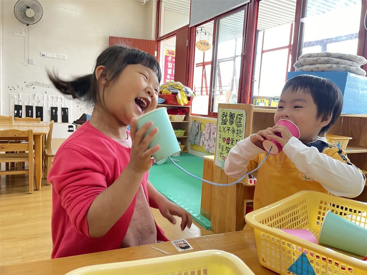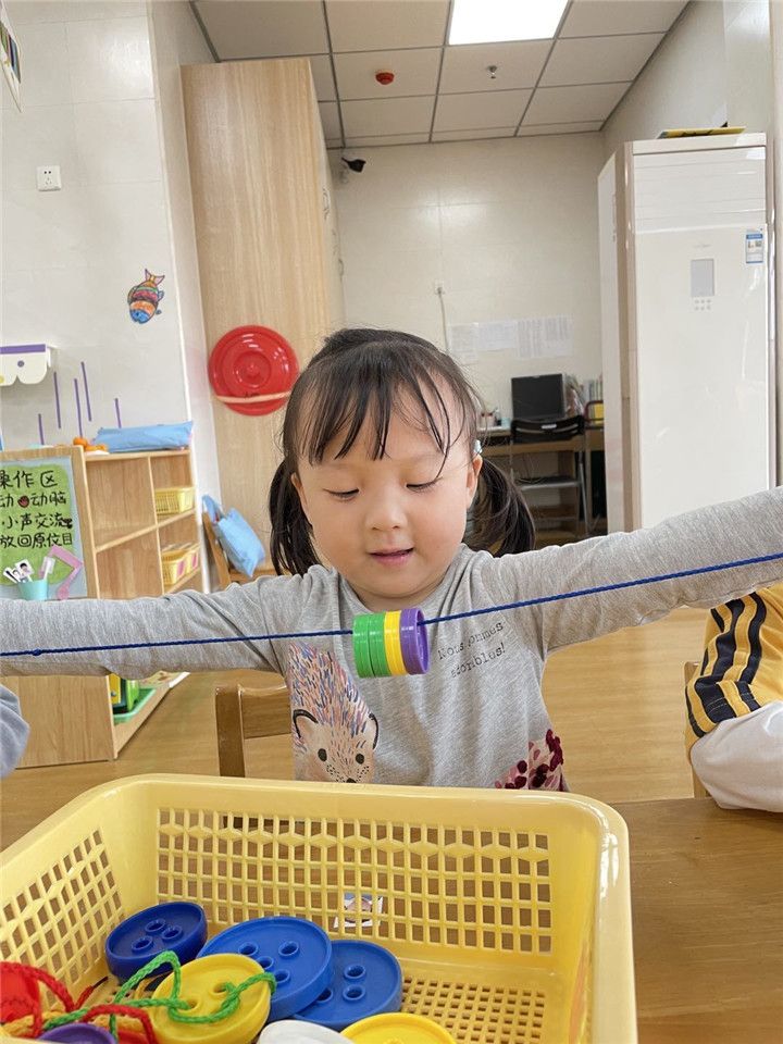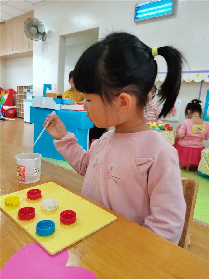 充满魔力的益智区给了宝贝们一把开启智慧之门的金钥匙,你们说水怎么会到瓶盖上呢?两个杯子怎么可以打电话呢?黄色纽扣多一些,还是橘色纽扣多一些呢?一起跟小四班小朋友探索吧!