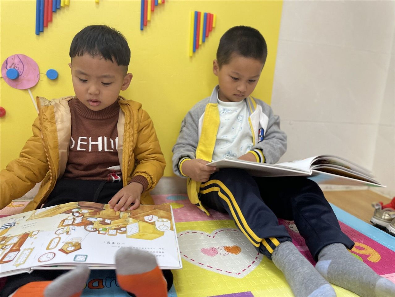 吵吵闹闹的小四班宝贝们也有安静的一面哦!你们瞧,正在看书的他们就像一位安静的小天使,遇到好看的内容还会和好朋友分享呢!