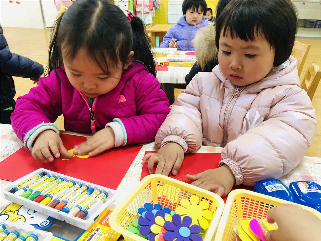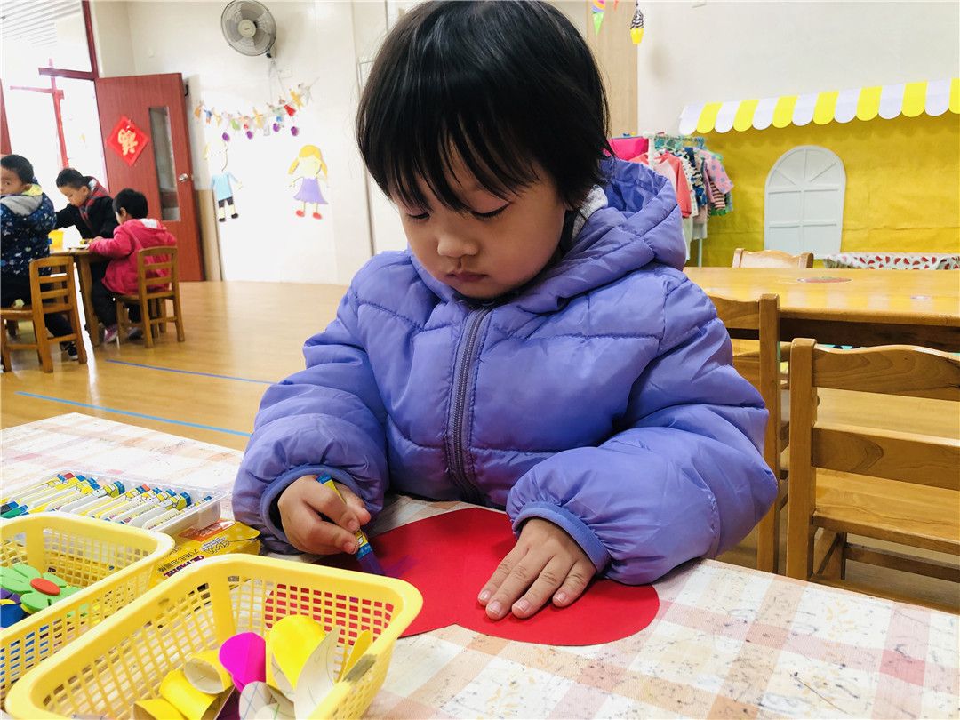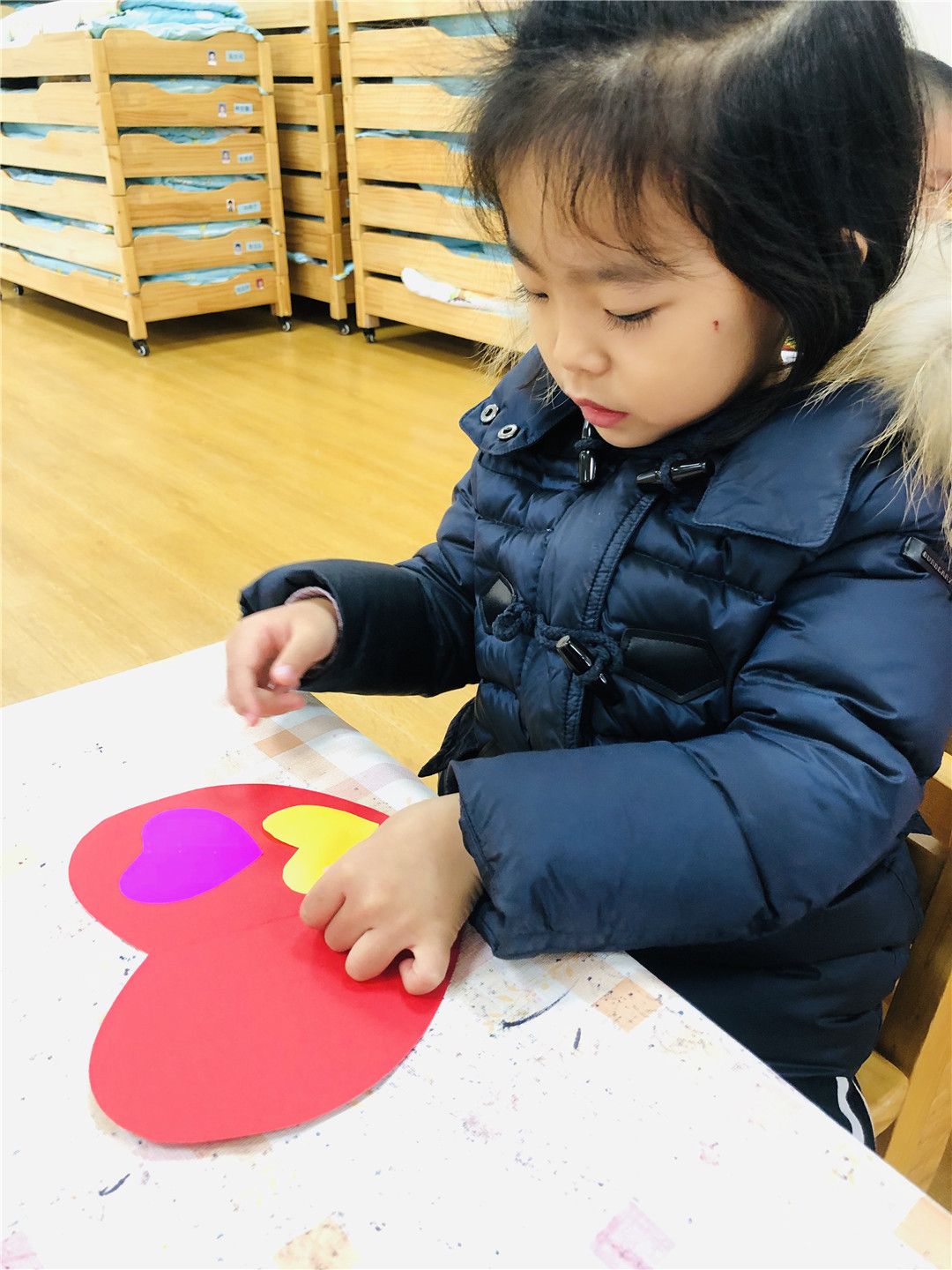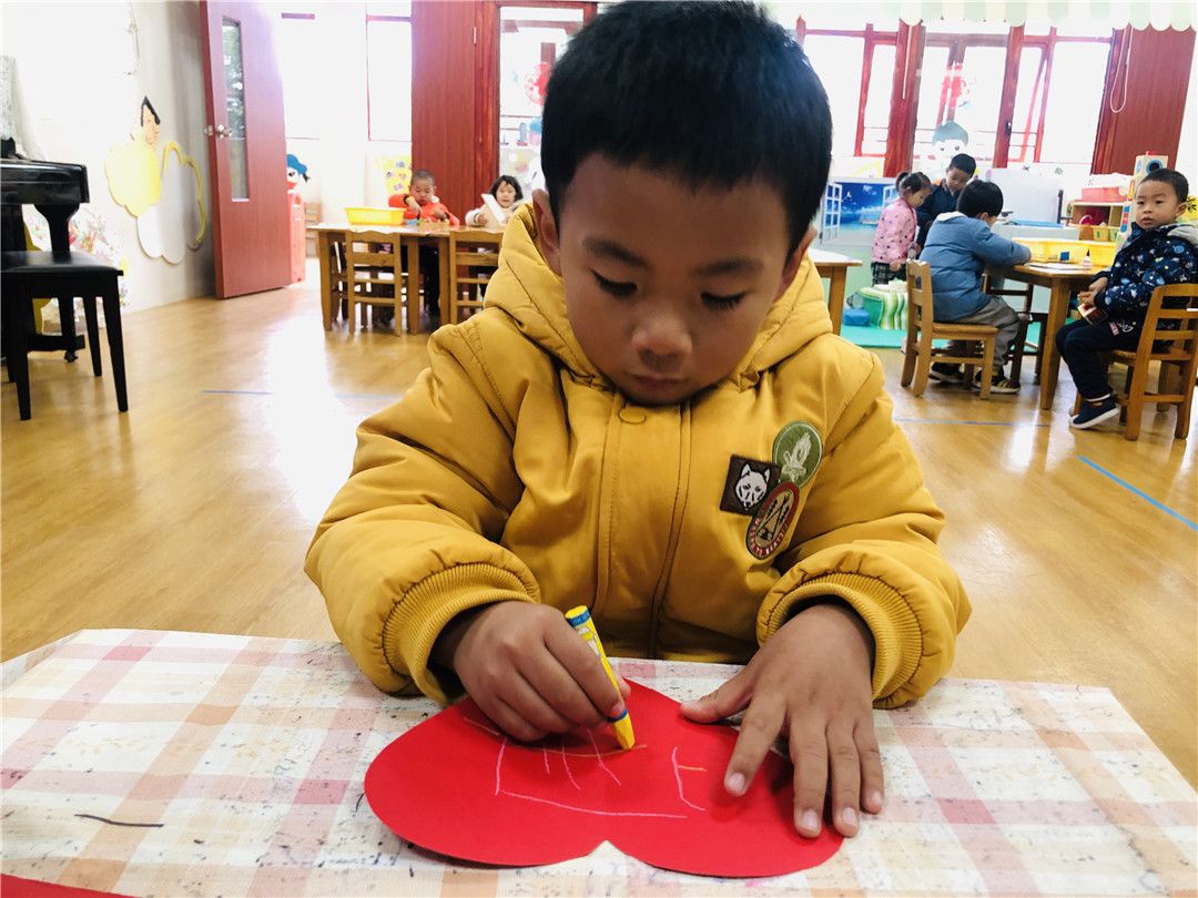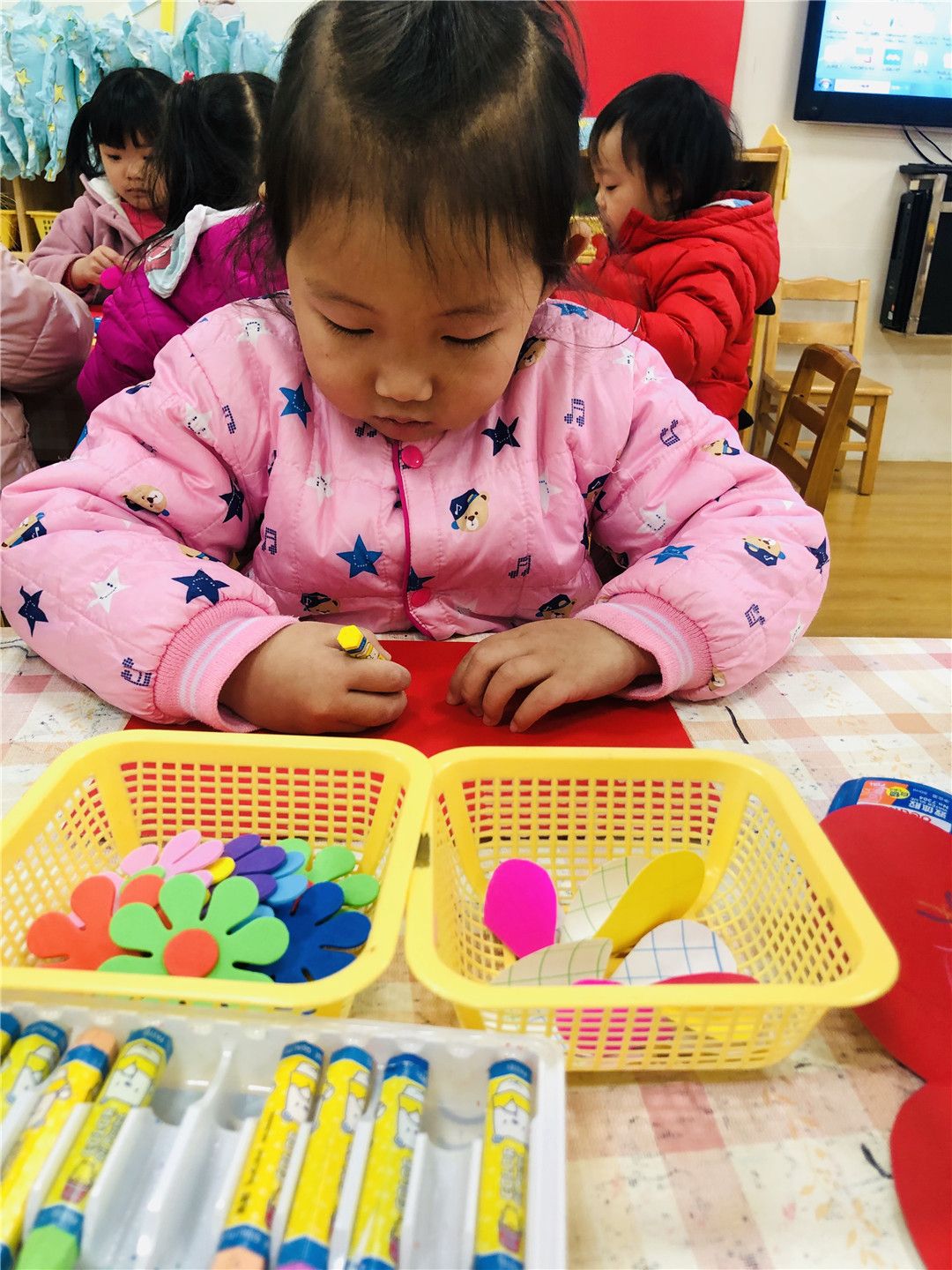 嘻嘻,孩子们的愿望真是可爱又童趣呢,说完了自己的愿望,孩子们动起了自己小手,将愿望与祝福寄托在贺卡上。“我的贺卡要送给我的好朋友,祝他新年快乐。”“我的贺卡要送给老师……”在欢声笑语中,孩子们用爱制作着满是祝福的贺卡。