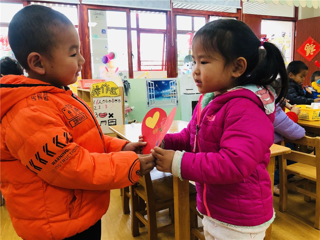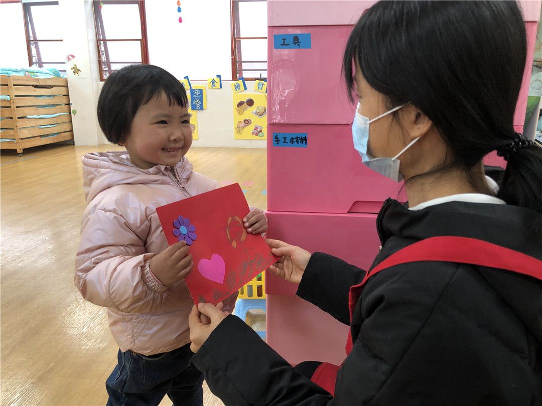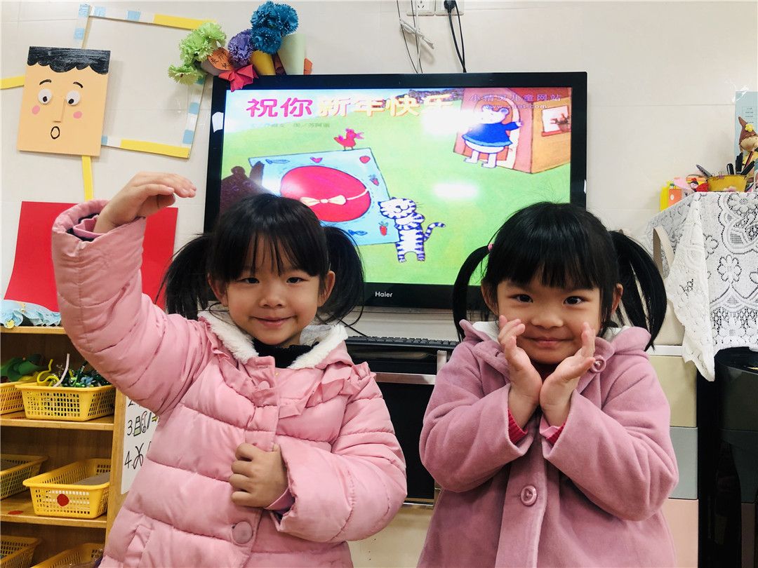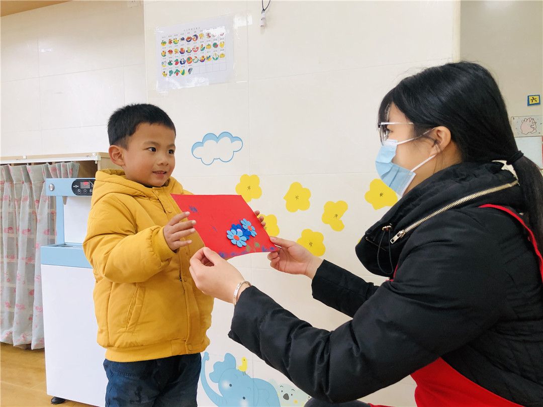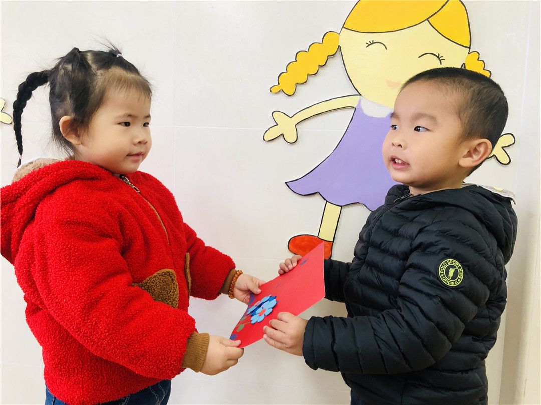 送祝福啦!萌娃们将自己亲手制作的贺卡送给了小伙伴、老师们,我们一起来听听看他们的新年祝福语。