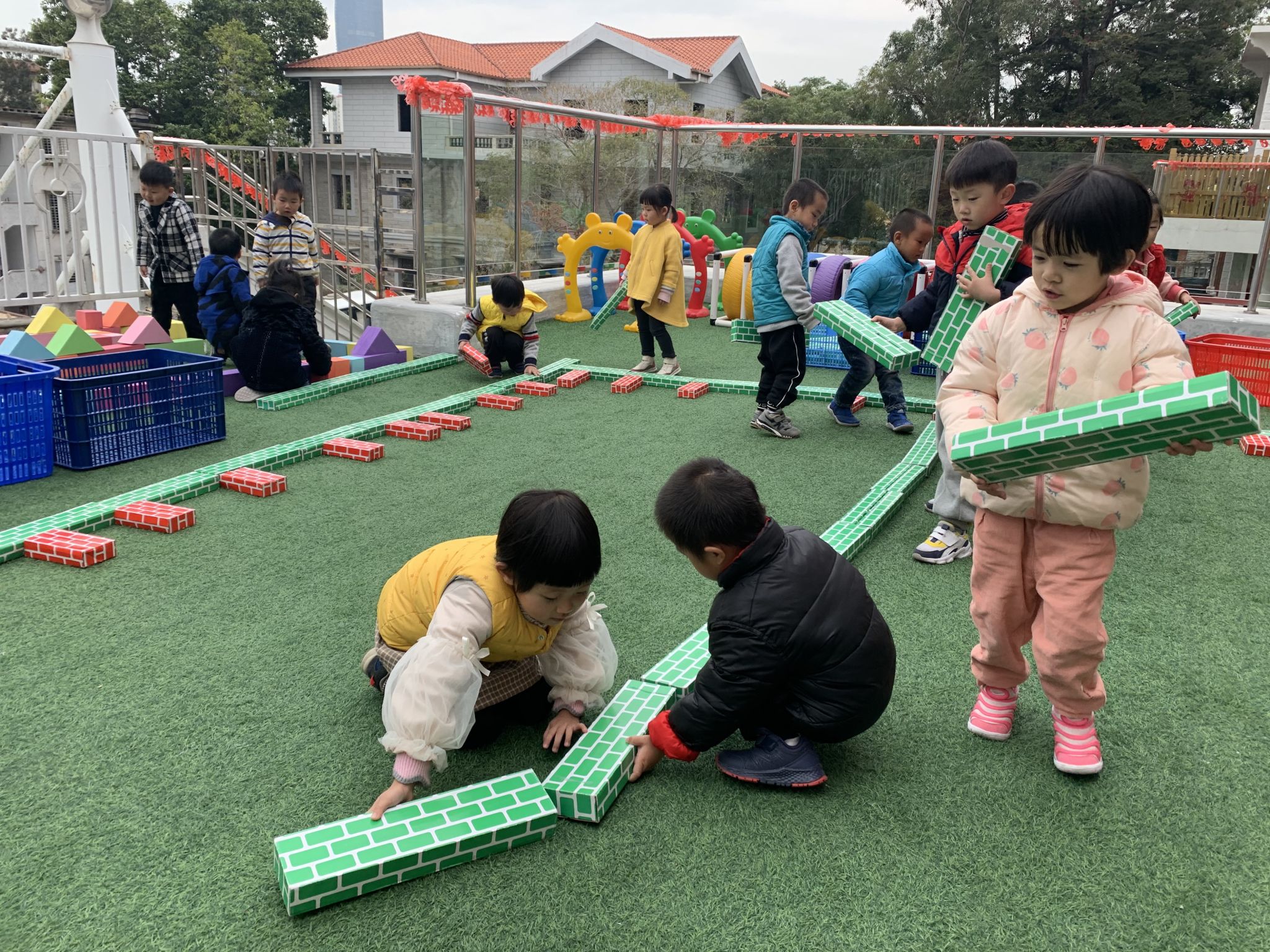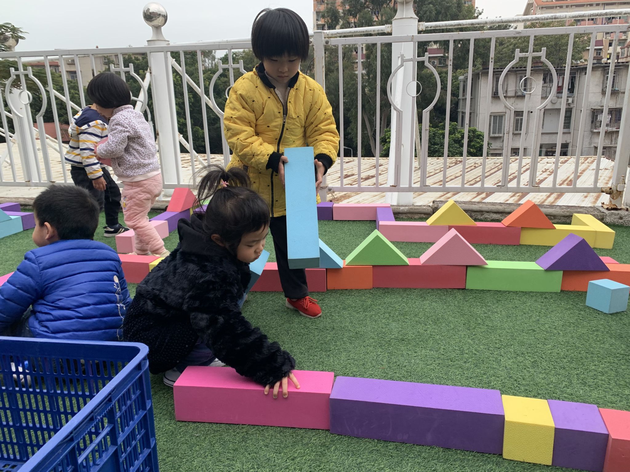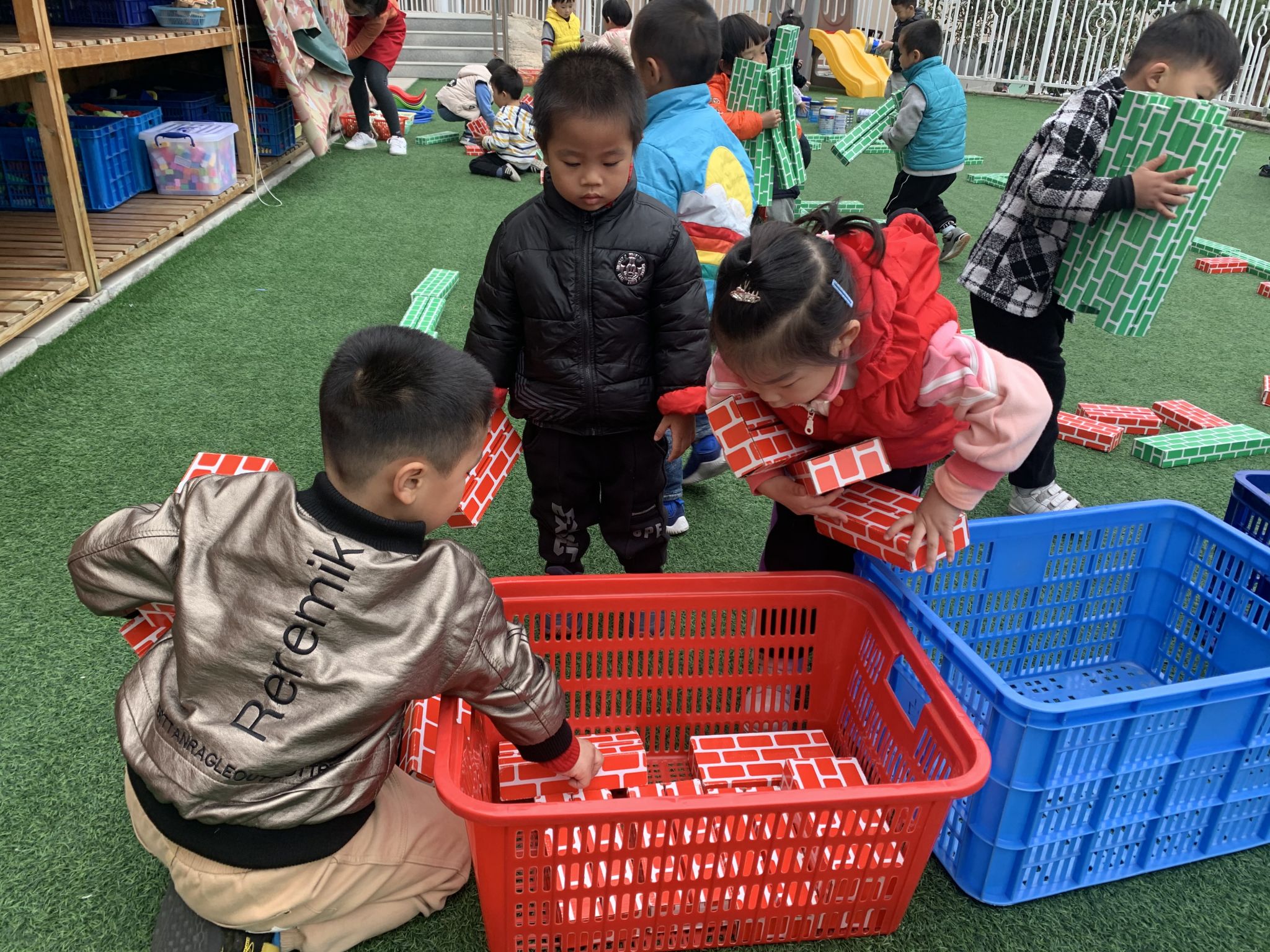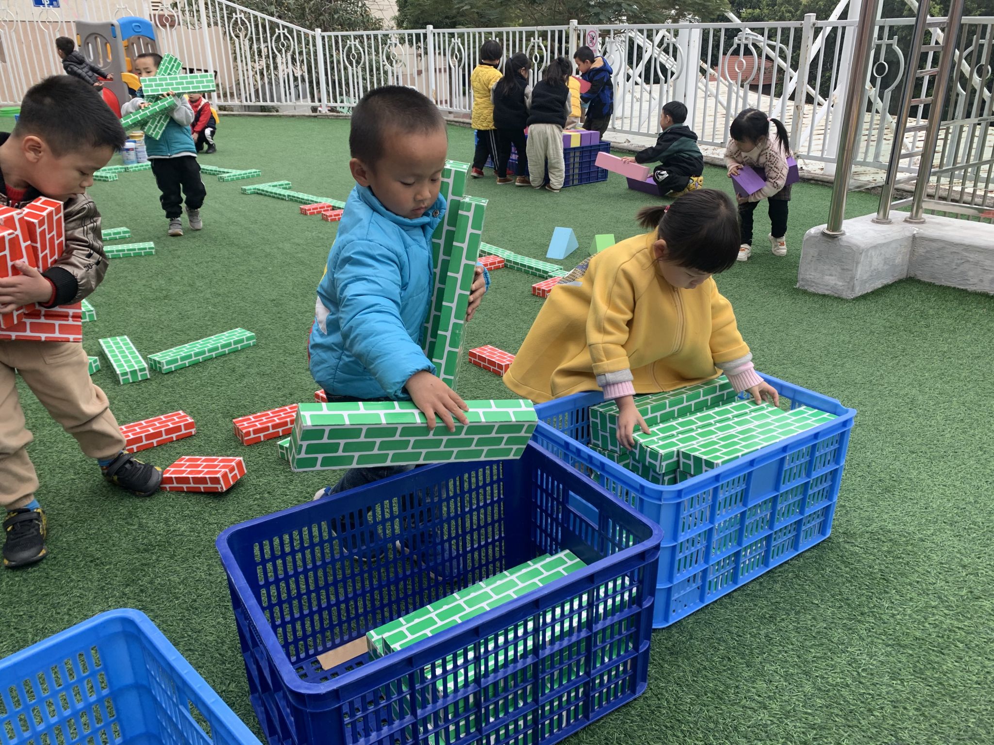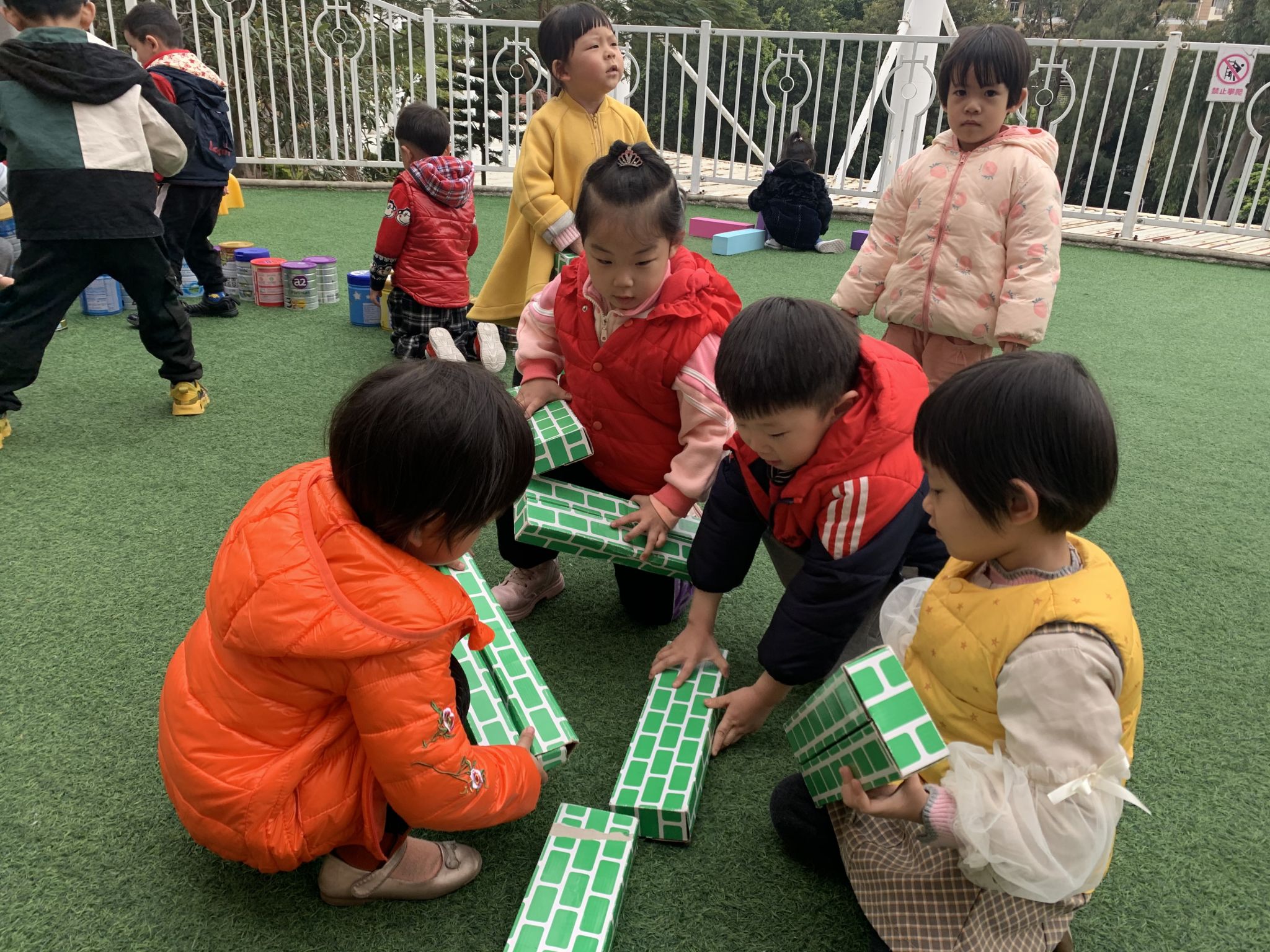 形状大小各不相同的纸砖头、奶粉罐因为小朋友千奇百怪的想法,而产生了不同的作用。搭建不仅让小朋友学会玩,还让小朋友学会了合作。通过开展建构游戏,孩子们的动手能力和想象力的发展有了新的飞跃,对建筑成果的审美能力也逐步提高了。他们在游戏中学会了做事有条理,养成了收拾游戏玩具材料的好习惯。